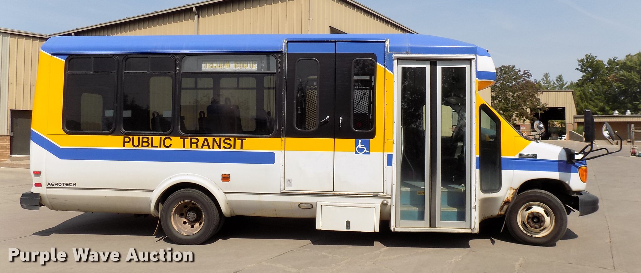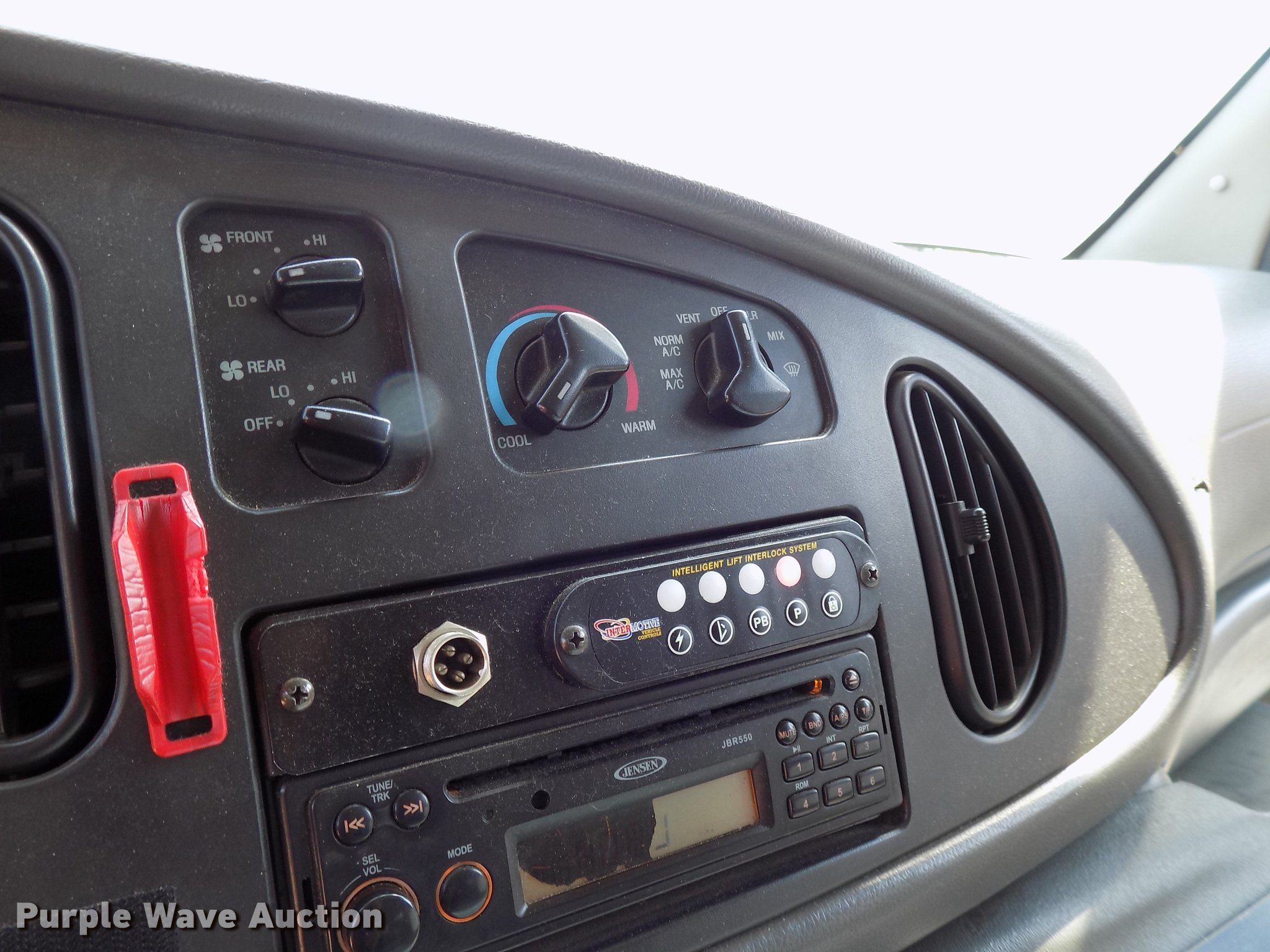 Purple Wave is selling a used Bus in Iowa. This item is a 2006 Ford E450 Super Duty shuttle bus with the following: 230,966 miles on odometer, 6.0L V8 OHV 32V turbo diesel engine, Automatic transmission, Single axle, AC and heat, Cruise, Suspension seat, Electric passenger sliding door, 16 passenger capacity, Seat belts, Braun NL919F1B wheel chair lift, Serial 04-01536, Rear and side emergency exits, Carrier passenger AC, 225/75R16 tires, GVWR 14,050 lbs, Possible radiator electric cooling fan issues