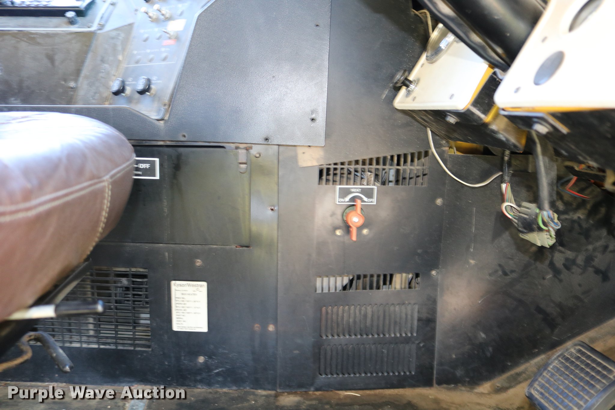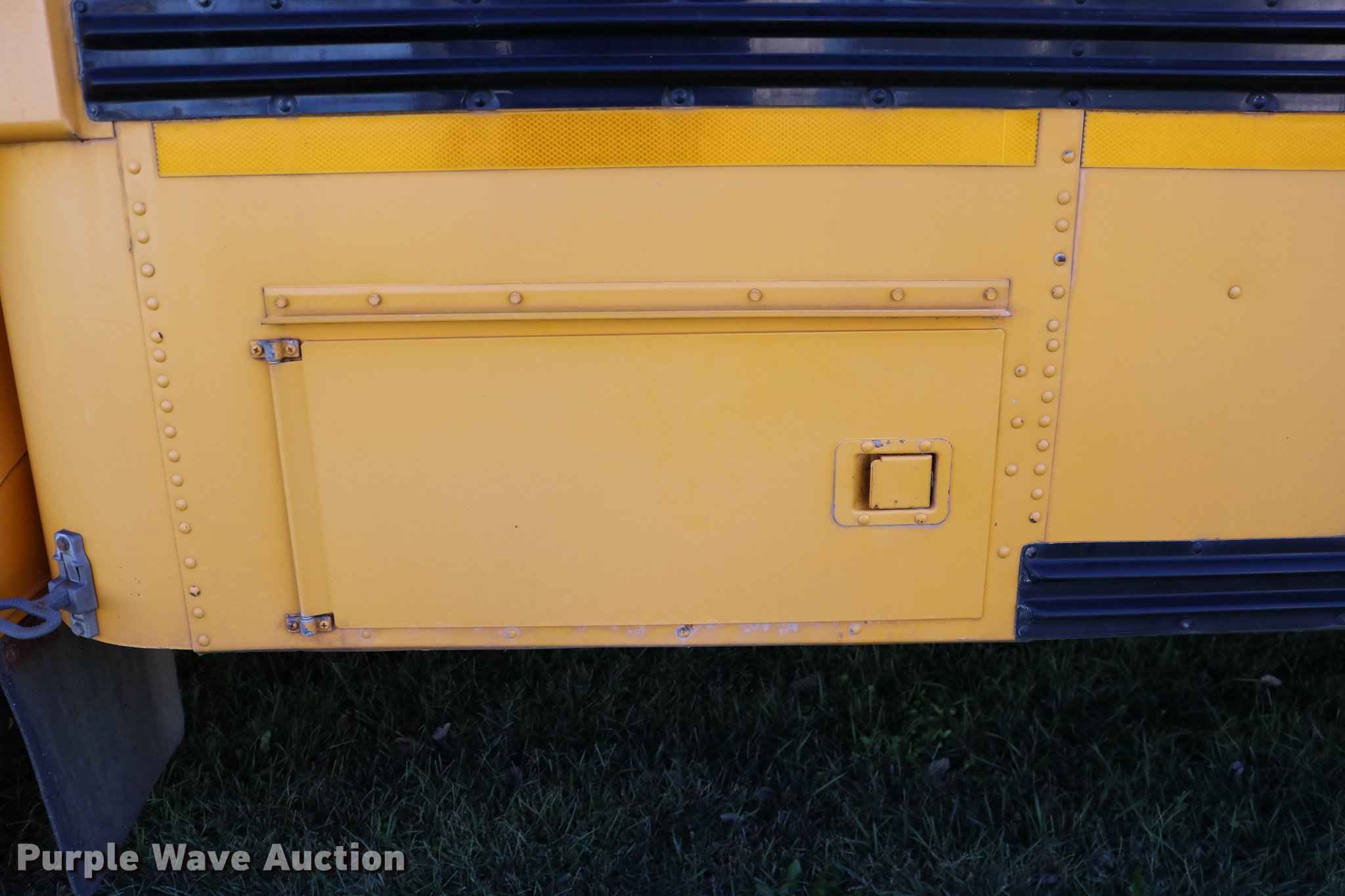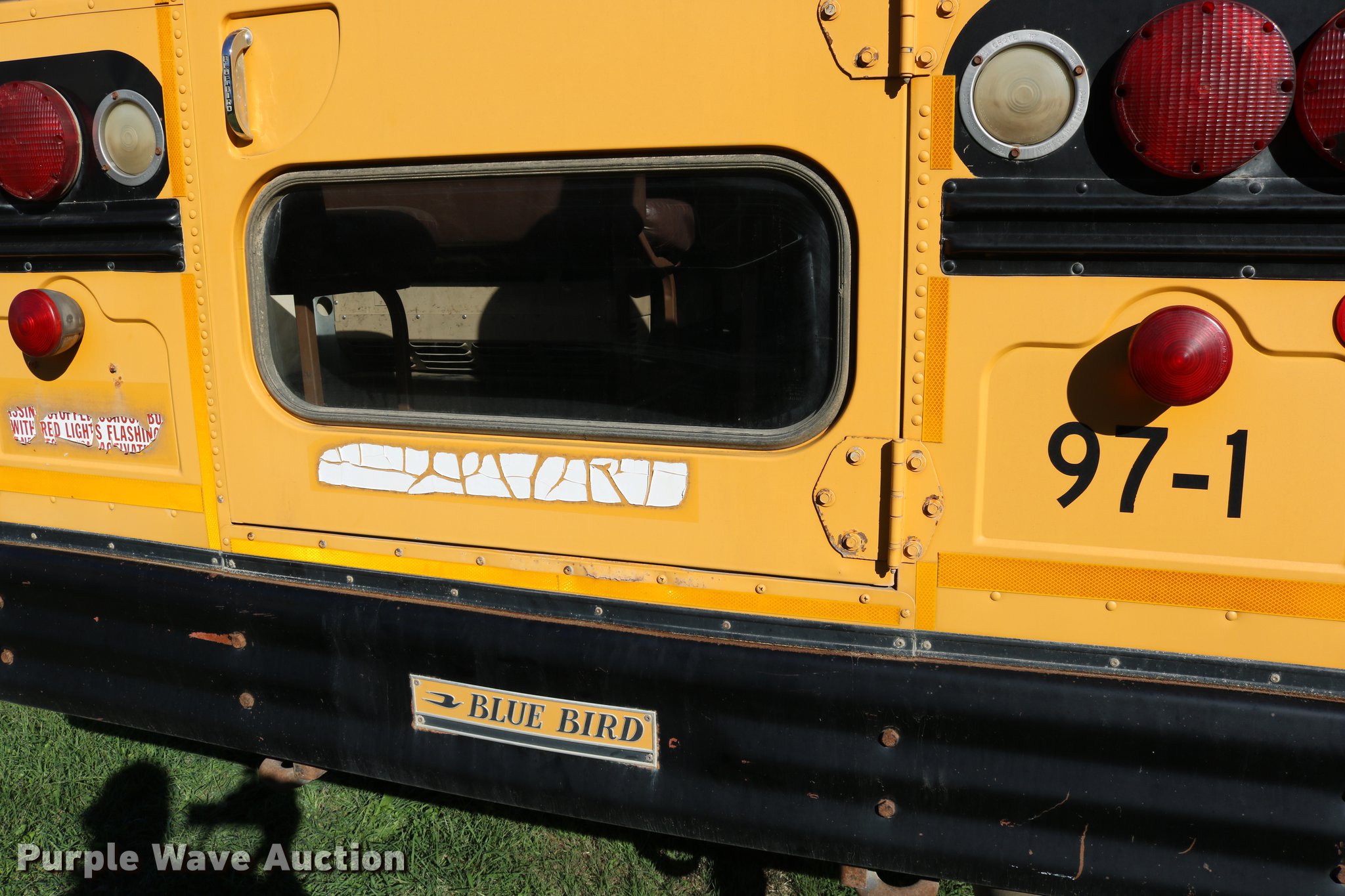 Purple Wave is selling a used Bus in Kansas. This item is a 1998 Ford B800 bus with the following: 199,382 miles on odometer, 5.9L L6 turbo diesel engine, Automatic transmission, Single axle, Heat, AM/FM/cassette, Heated mirrors, 47 passenger capacity, Ceiling, rear, and side emergency exits, Emergency door alarms, Lighted stop sign, Front and rear tow hooks, Block heater, Approximately 194" wheelbase, Spring suspension, Hydraulic brakes, Goodyear 10R22.5 tires, GVWR 26,000 lbs, Tachometer inoperable, Batteries weak