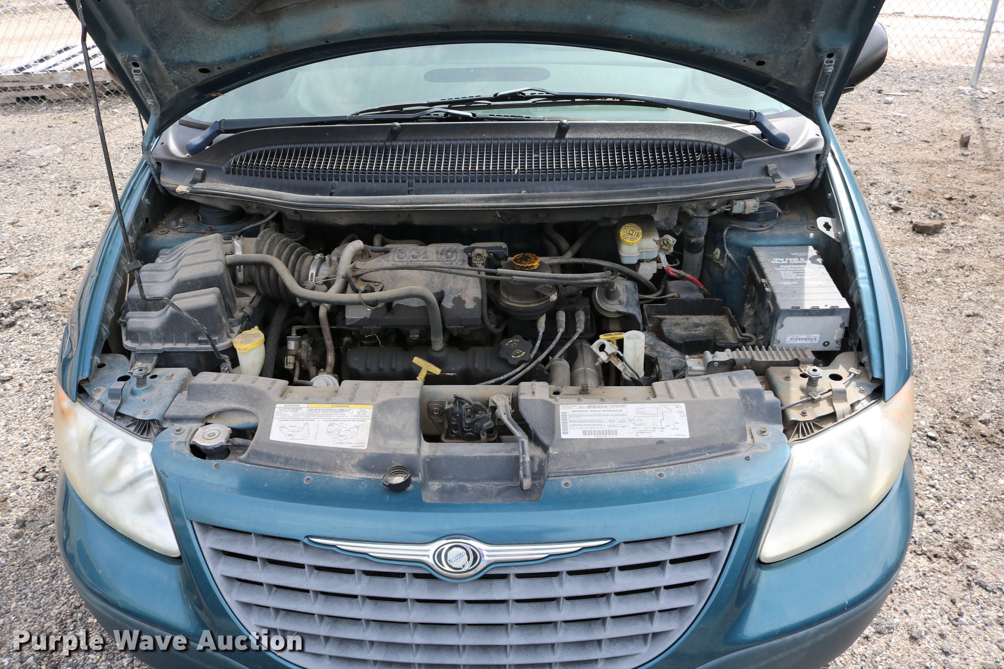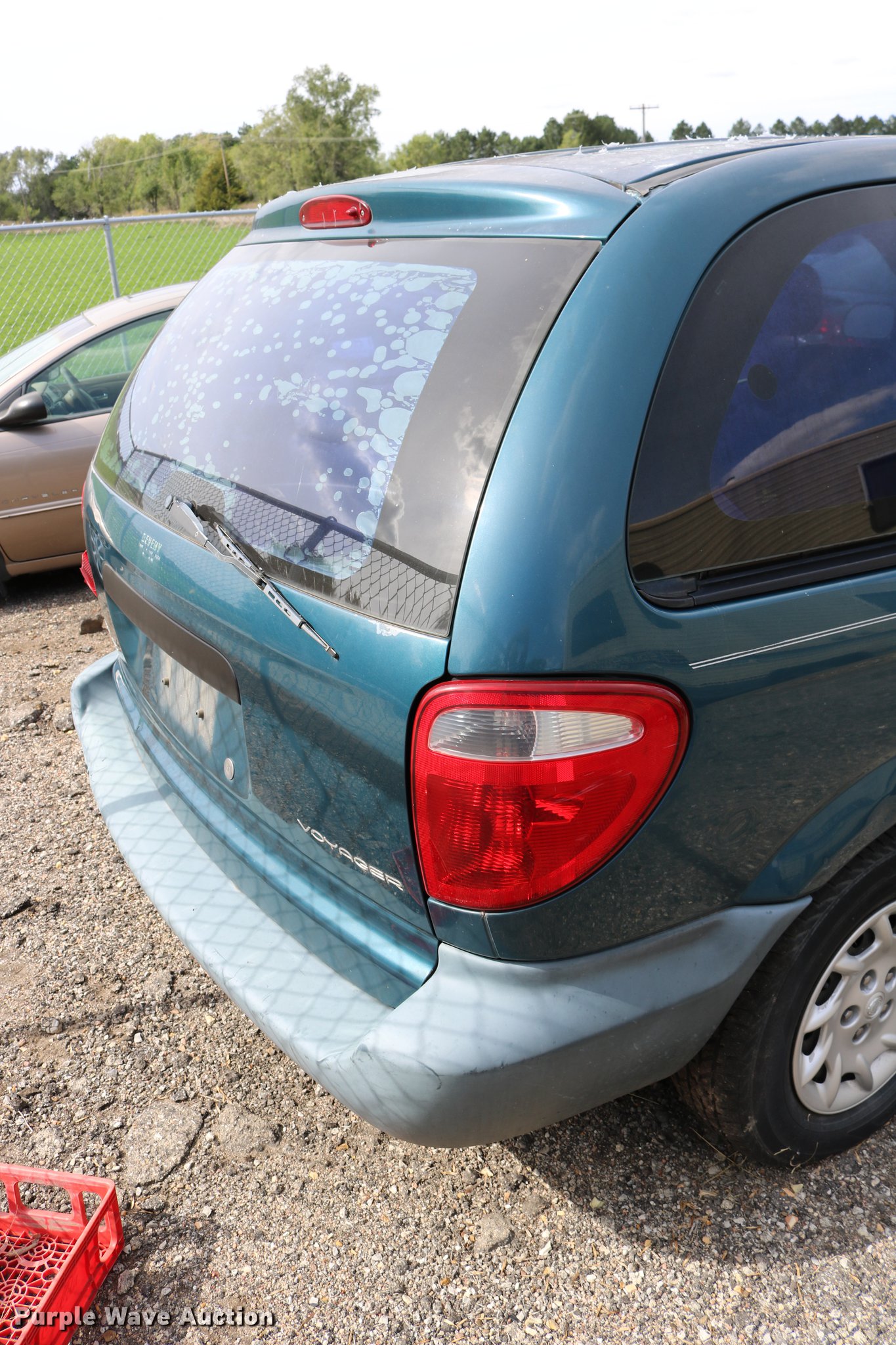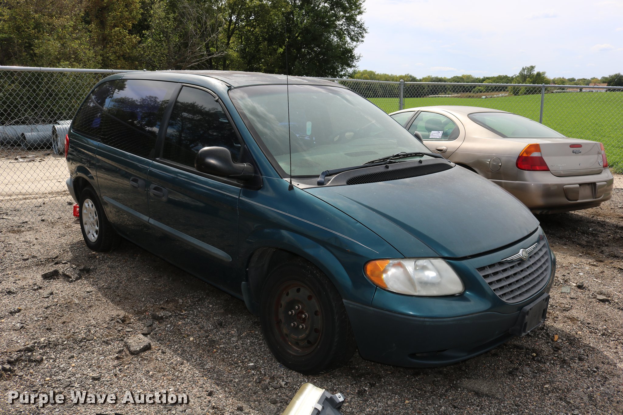 Purple Wave is selling a used Passenger Vehicle in Kansas. This item is a 2002 Chrysler Voyager van with the following: Unknown miles on odometer, 3.0L V6 OHV 12V gas engine, Automatic transmission, AC and heat, Tilt, Cruise, AM/FM, Power windows, locks, and mirrors, Cloth interior, 215/70R15 tires, No keys, No battery, Passenger front axle and wheel broken, Hail damage, Broken taillight, Unknown operating condition, Unit must be towed or hauled