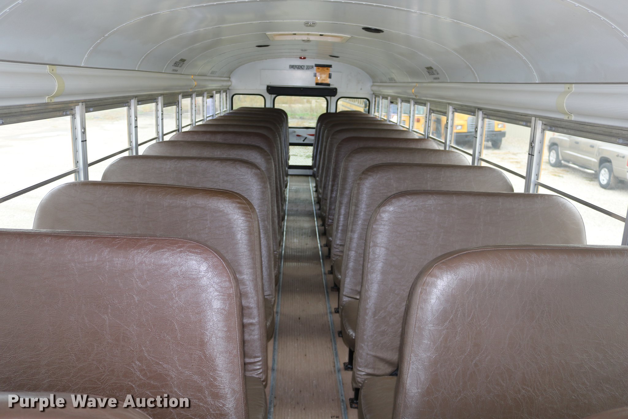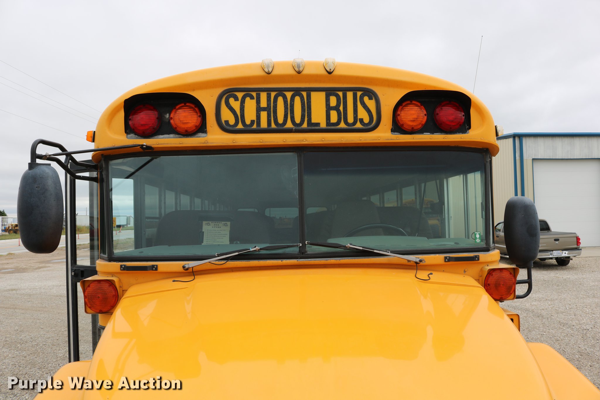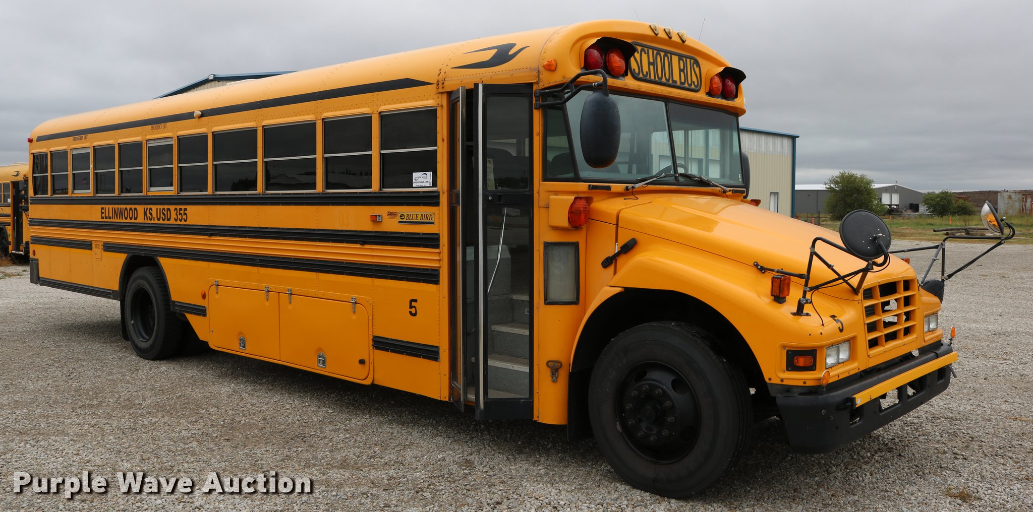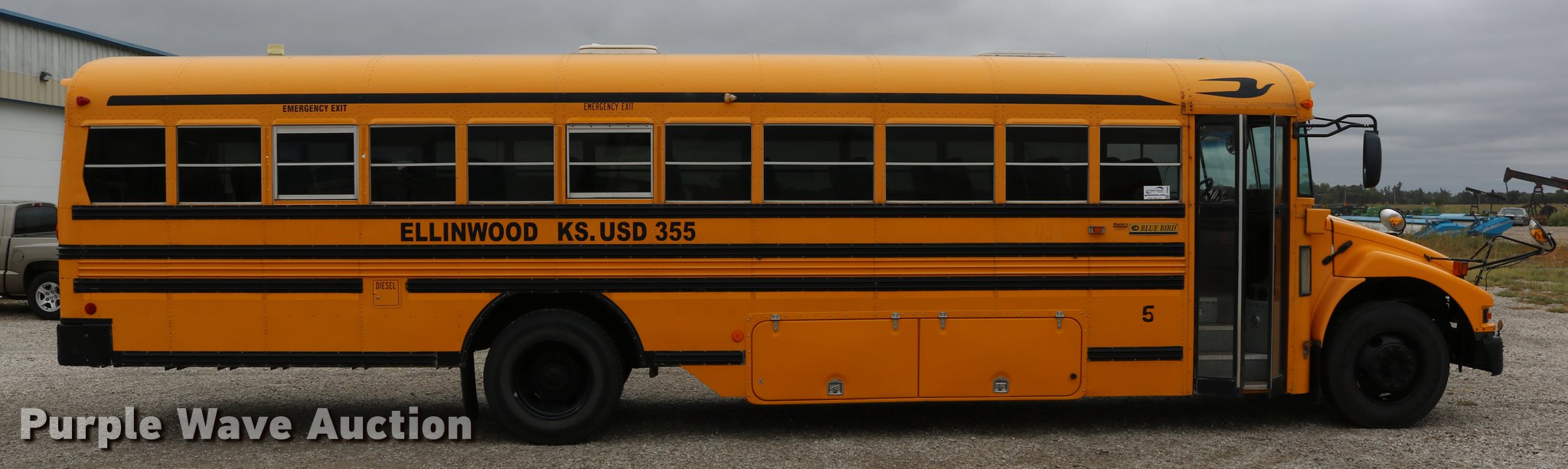 Purple Wave is selling a used Bus in Kansas. This item is a 2004 Blue Bird Vision school bus with the following: 161,418 miles on odometer, 8,210 hours on meter, Caterpillar 3126 7.2L L6 turbo diesel engine, Serial HEP35858, Automatic transmission, Single axle, Heat, Cruise, AM/FM/CD, Heated mirrors, 65 passenger capacity, (65) adult seats, Seat belts, Ceiling, rear, and side emergency exits, Emergency doors alarms, Beacon light, Lighted stop sign, Backup alarm, Block heater, Underside luggage storage, Spring suspension, Hydraulic brakes, Approx. 252" wheelbase, 10R22.5 tires, Unit# 5