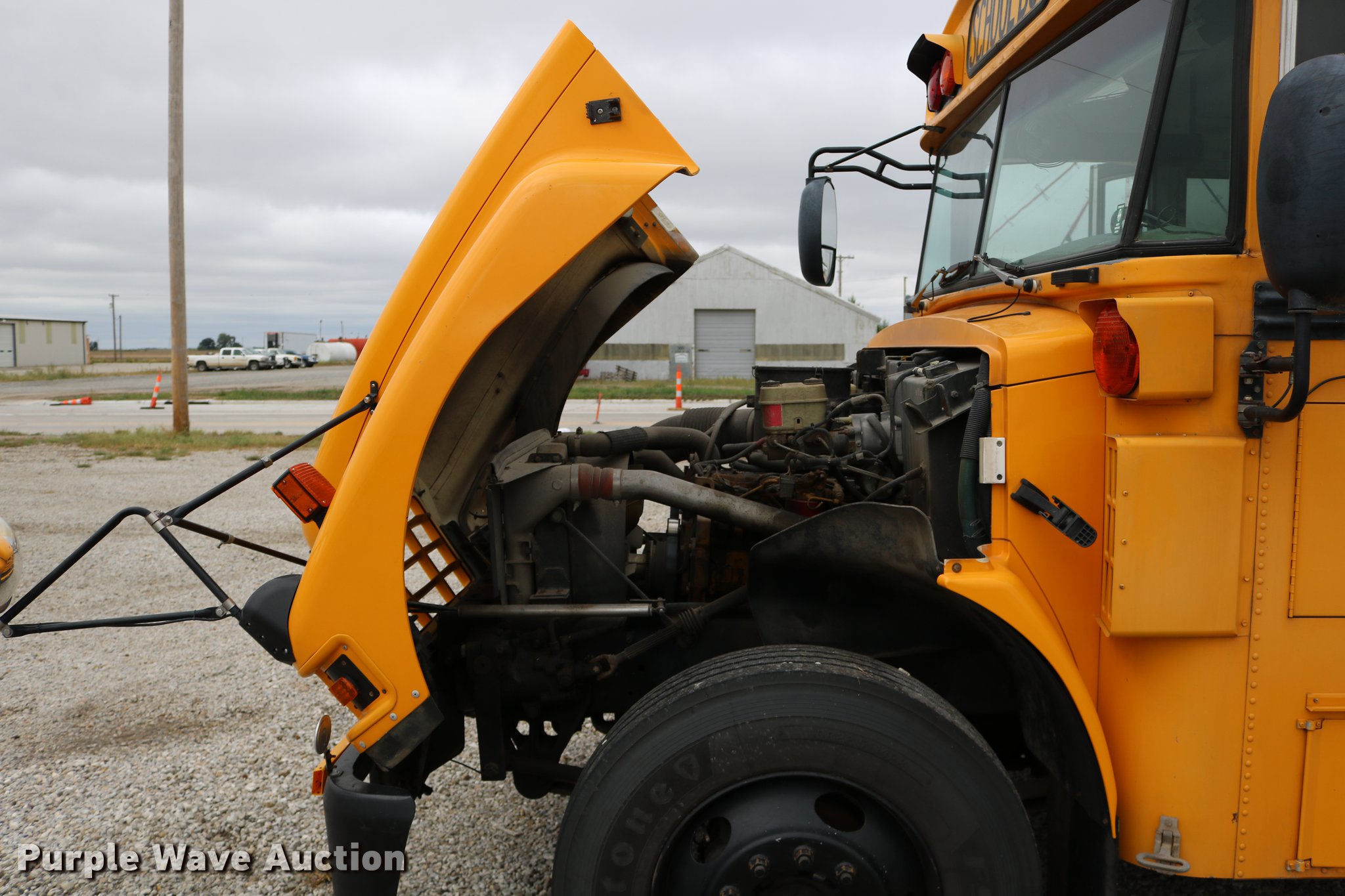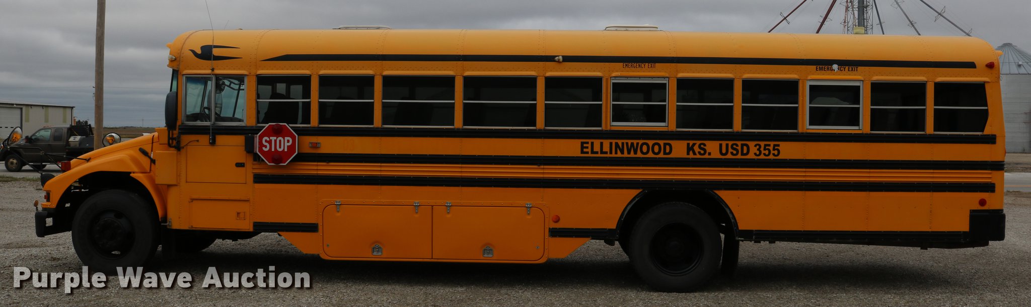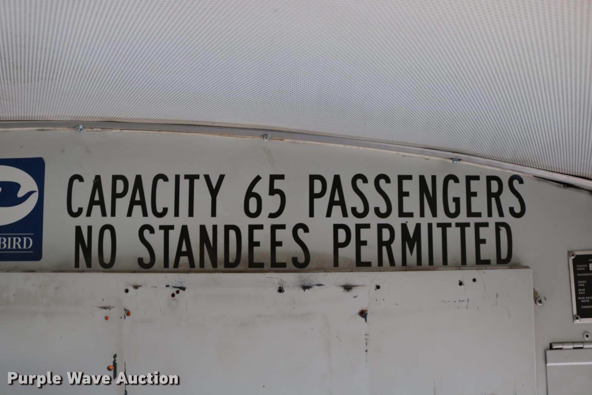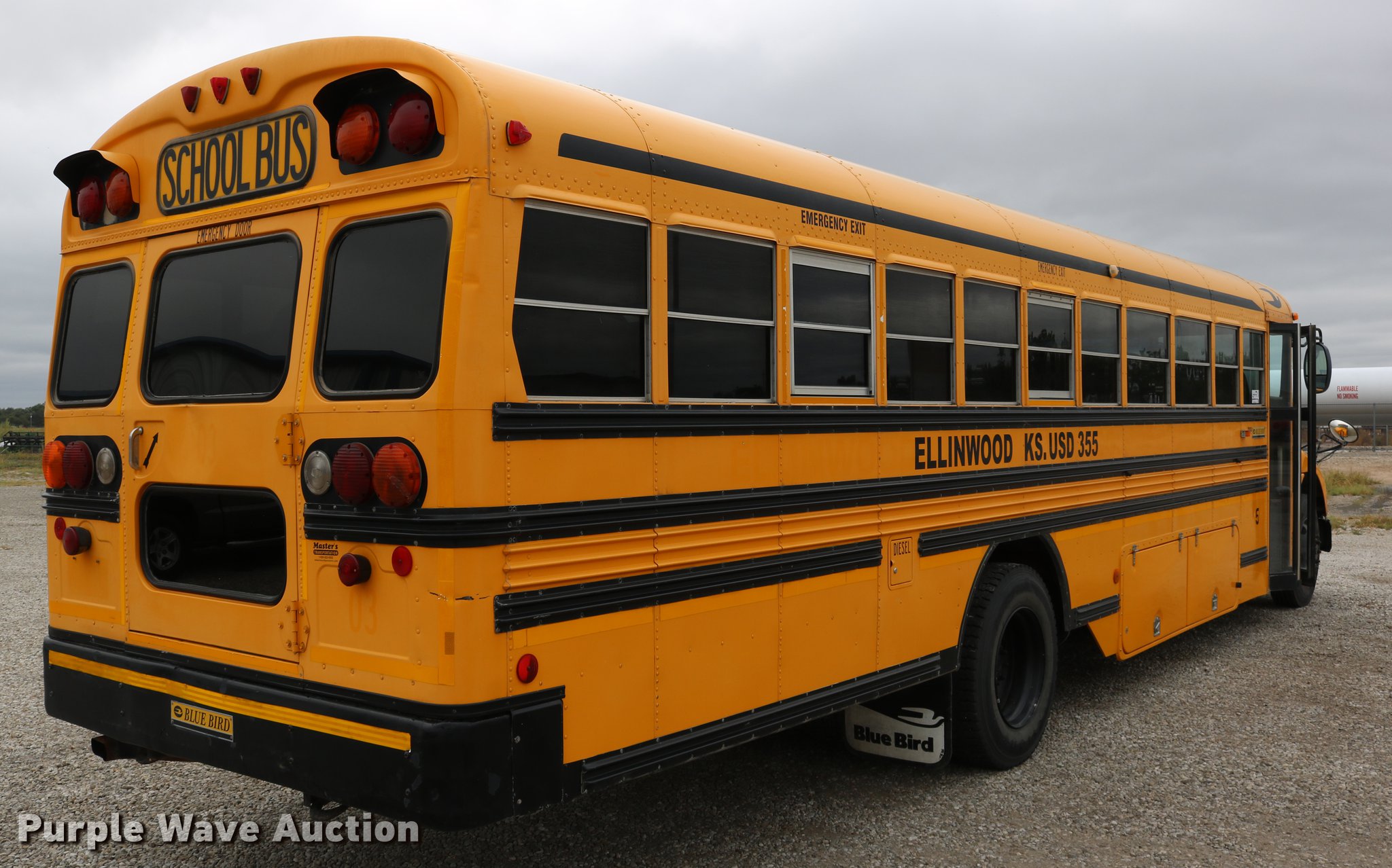 Purple Wave is selling a used Bus in Kansas. This item is a 2004 Blue Bird Vision school bus with the following: 161,418 miles on odometer, 8,210 hours on meter, Caterpillar 3126 7.2L L6 turbo diesel engine, Serial HEP35858, Automatic transmission, Single axle, Heat, Cruise, AM/FM/CD, Heated mirrors, 65 passenger capacity, (65) adult seats, Seat belts, Ceiling, rear, and side emergency exits, Emergency doors alarms, Beacon light, Lighted stop sign, Backup alarm, Block heater, Underside luggage storage, Spring suspension, Hydraulic brakes, Approx. 252" wheelbase, 10R22.5 tires, Unit# 5