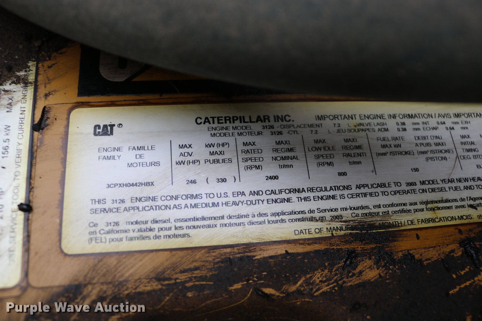 - Caterpillar 3126 7.2L L6 turbo diesel engine