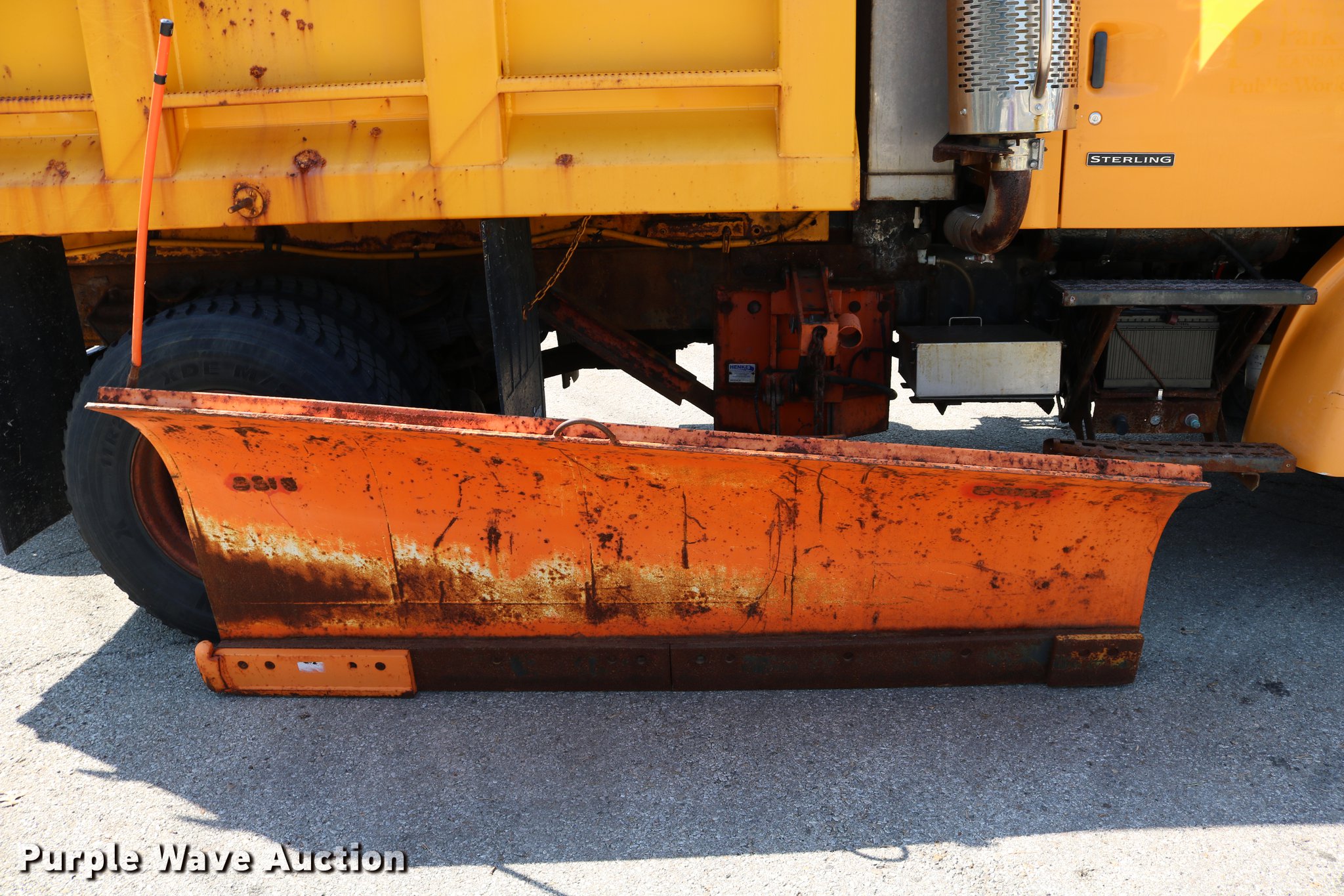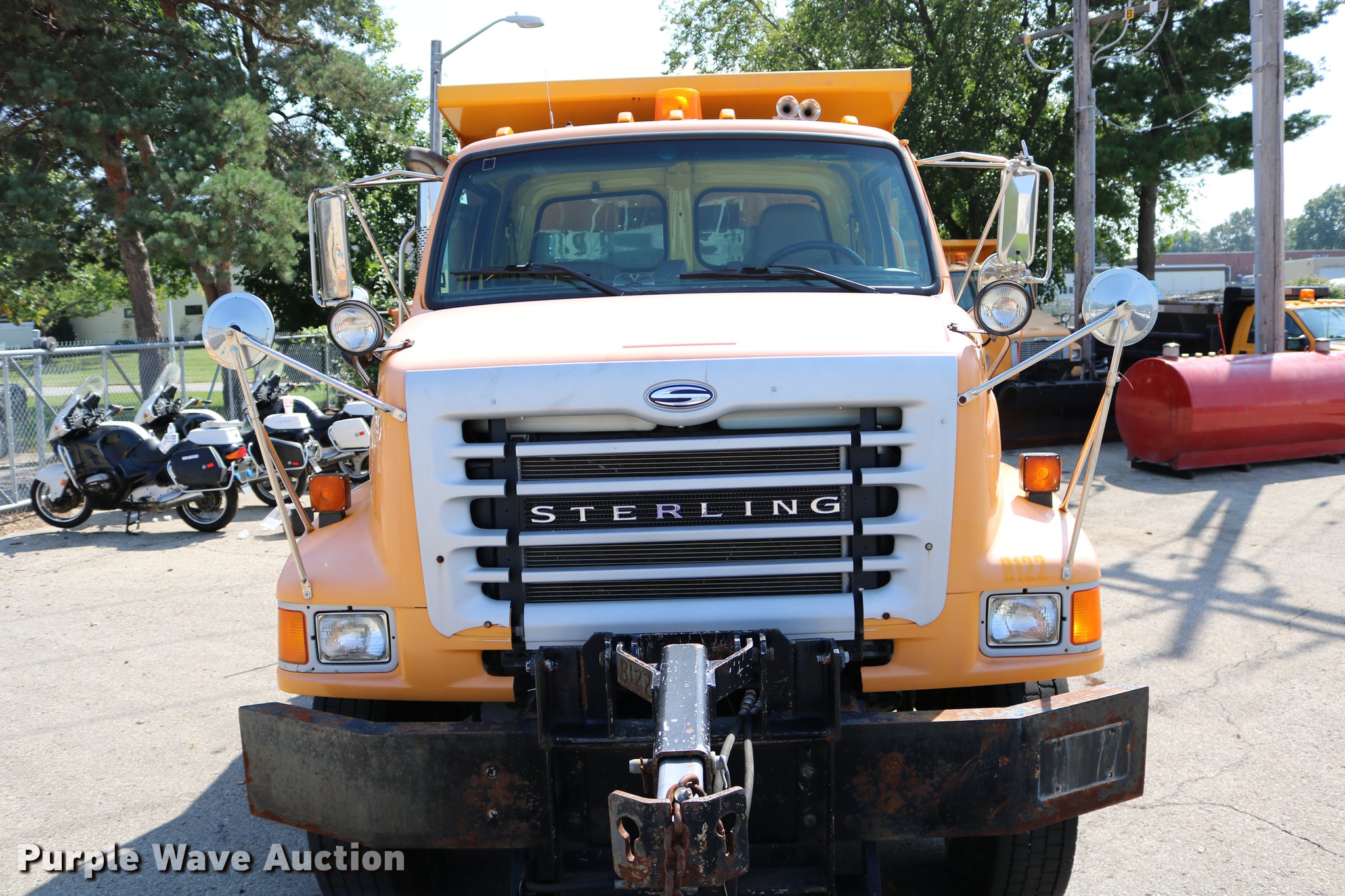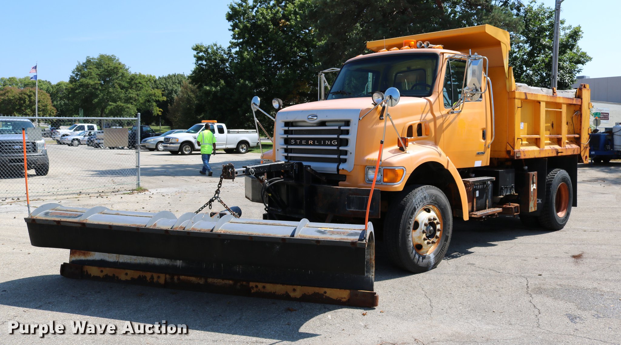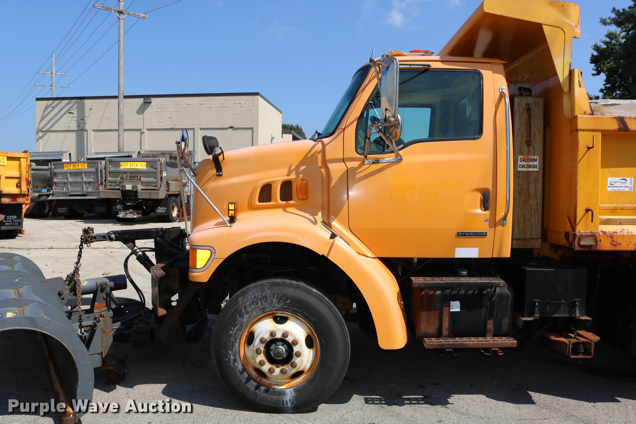 Purple Wave is selling a used Construction Dump Truck in Kansas. This item is a 2004 Sterling L7500 dump truck with the following: 50,947 miles on odometer, 2,156 hours on meter, Caterpillar 3126 7.2L L6 turbo diesel engine, Serial 3CPXHB442HBX, Automatic transmission, Single axle, AC and heat, Tilt, Cruise, AM/FM, Air suspension seat, Beacon light, PTO, Air-Flo Mfg. FND-10 steel dump bed, 10'L x 95"W, 34" side height, Approx. 5" side board height, Air operated end gate, Single ram hoist, Henke 11'W plow, Serial 6898, Henke 8'W side plow, Serial 6901, Spreader, 24"W steel conveyor, Spring suspension, Air brakes, Approx. 152.5" wheelbase, 11R22.5 tires, GVWR 36,220 lbs, FAWR 13,220 lbs, RAWR 23,000 lbs, Unit# 8122