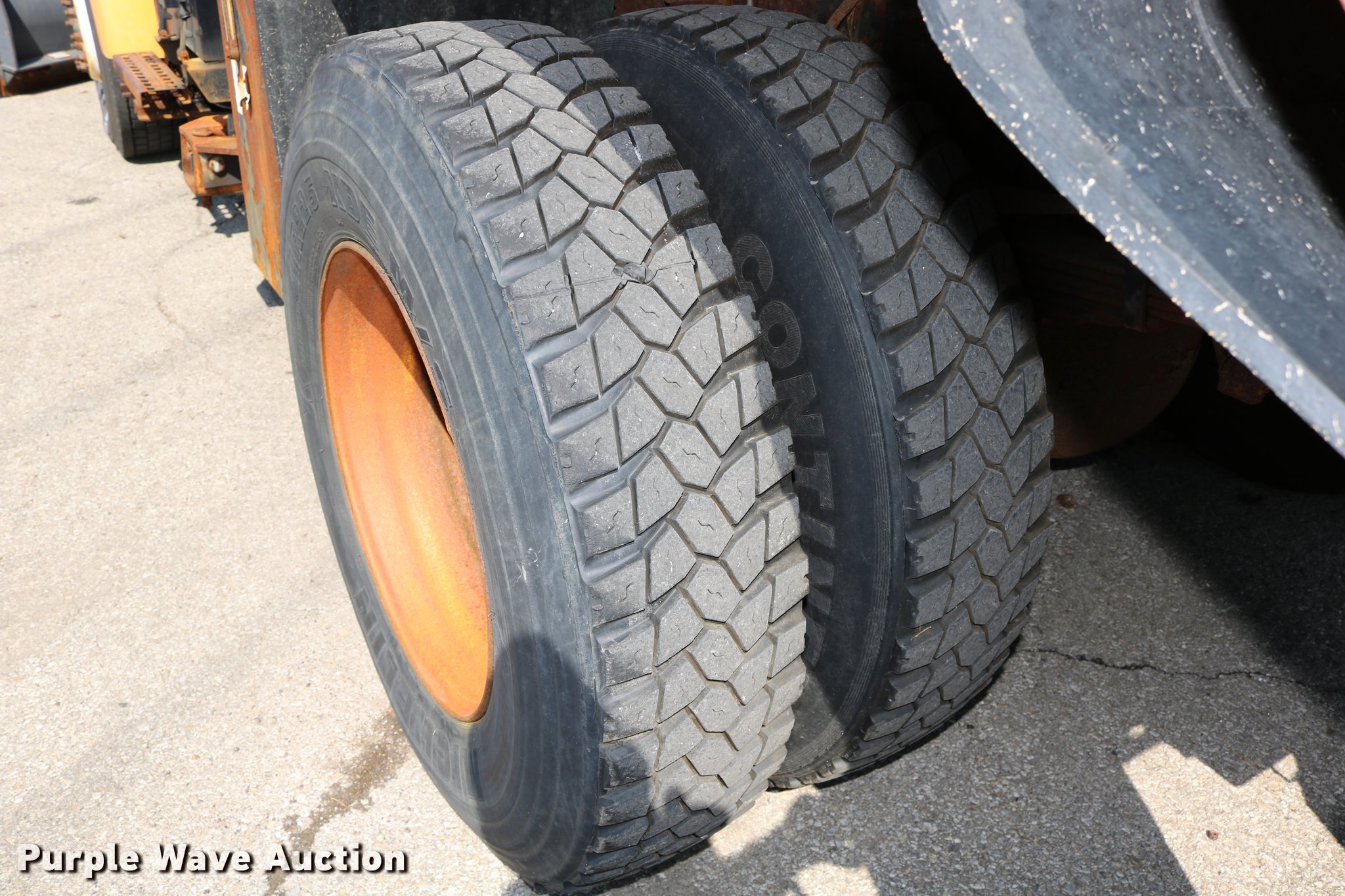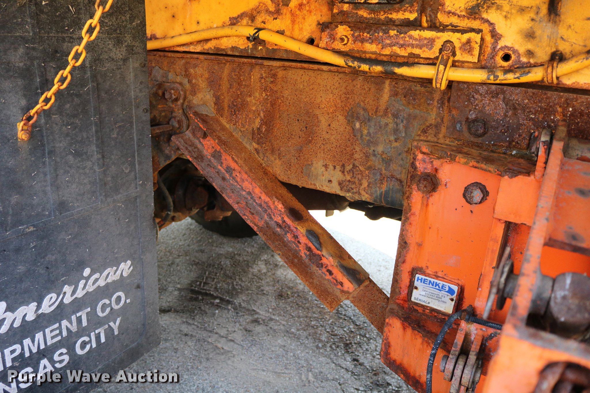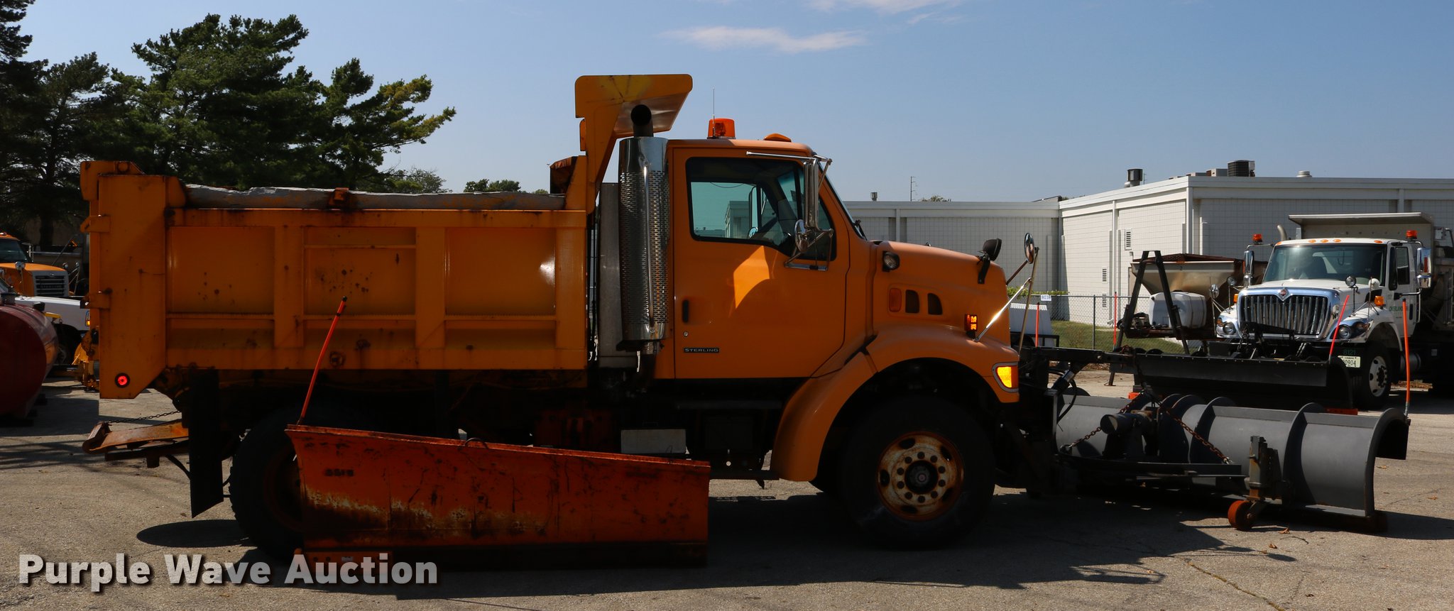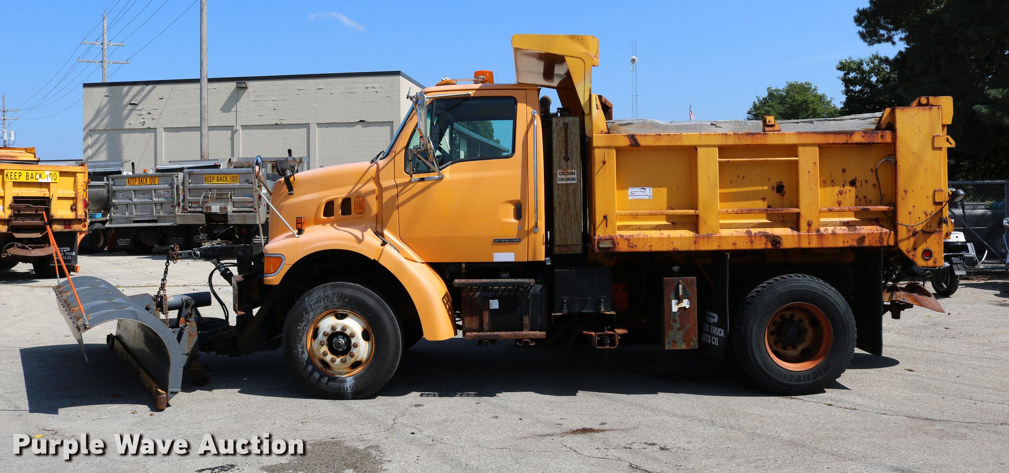 Purple Wave is selling a used Construction Dump Truck in Kansas. This item is a 2004 Sterling L7500 dump truck with the following: 50,947 miles on odometer, 2,156 hours on meter, Caterpillar 3126 7.2L L6 turbo diesel engine, Serial 3CPXHB442HBX, Automatic transmission, Single axle, AC and heat, Tilt, Cruise, AM/FM, Air suspension seat, Beacon light, PTO, Air-Flo Mfg. FND-10 steel dump bed, 10'L x 95"W, 34" side height, Approx. 5" side board height, Air operated end gate, Single ram hoist, Henke 11'W plow, Serial 6898, Henke 8'W side plow, Serial 6901, Spreader, 24"W steel conveyor, Spring suspension, Air brakes, Approx. 152.5" wheelbase, 11R22.5 tires, GVWR 36,220 lbs, FAWR 13,220 lbs, RAWR 23,000 lbs, Unit# 8122