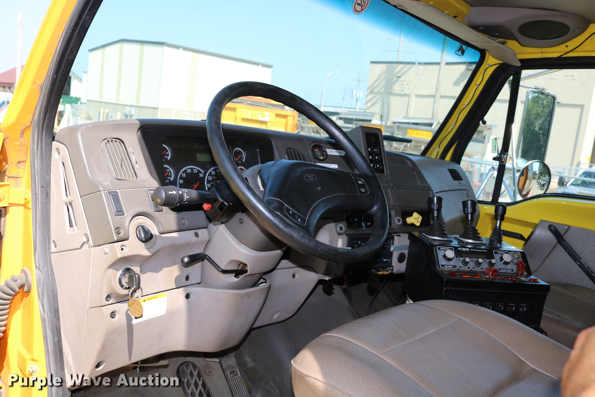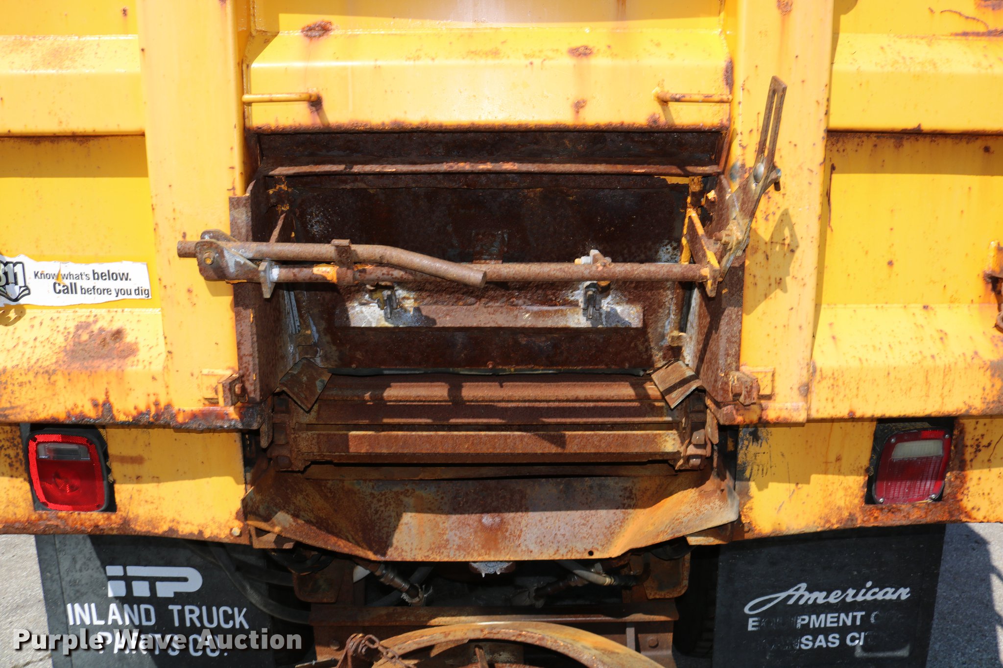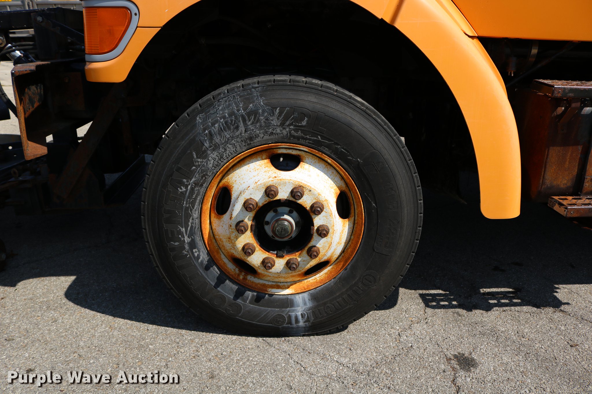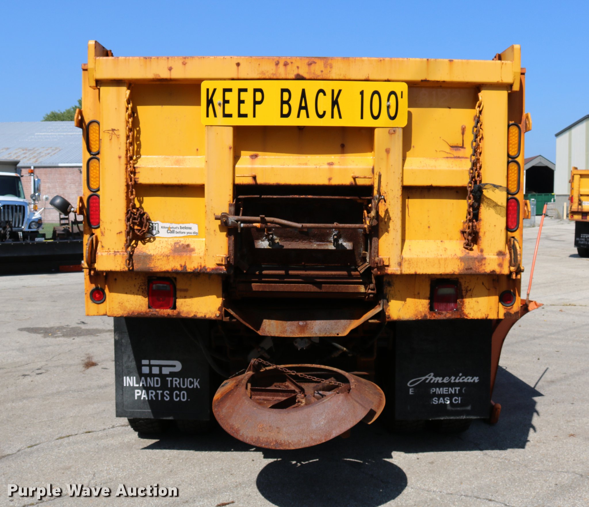 2004 Sterling L7500 dump truck. 50,947 miles on odometer, 2,156 hours on meter, Caterpillar 3126 7.2L L6 turbo diesel engine Serial 3CPXHB442HBX, Automatic transmission, Single axle, AC and heat, Tilt, Cruise, AM/FM, Air suspension seat, Beacon light, PTO, Air-Flo Mfg. FND-10 steel dump bed 10'L x 95"W, 34" side height, Approx. 5" side board height, Air operated end gate, Single ram hoist, Henke 11'W plow Serial 6898, Henke 8'W side plow Serial 6901, Spreader 24"W steel conveyor, Spring suspension, Air brakes, Approx. 152.5" wheelbase, 11R22.5 tires, GVWR 36,220 lbs, FAWR 13,220 lbs, RAWR 23,000 lbs, Unit# 8122. Kansas title. Seller is a government entity who will be assigning and distributing the title. Please contact the seller for distribution questions. 2FZAATAK34AM24014. City of Overland Park. 11300 W 91st St. Overland Park, KS 66214