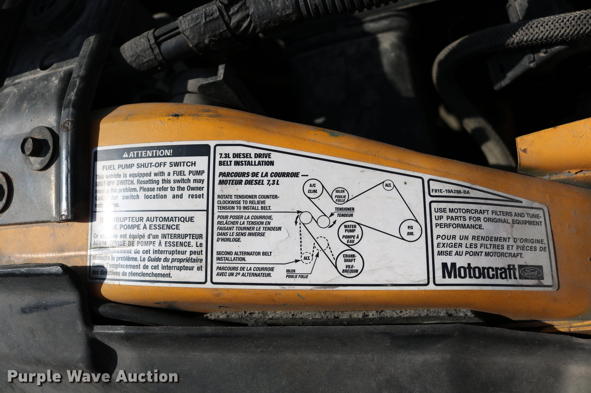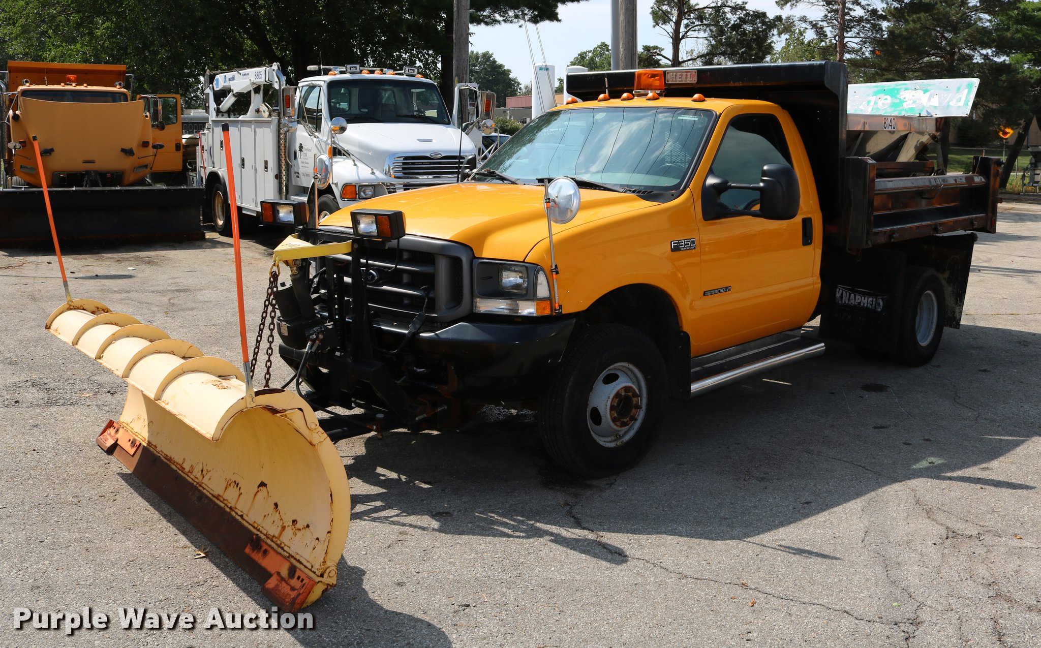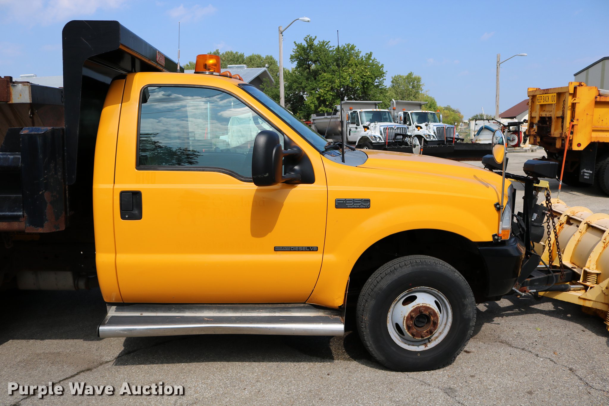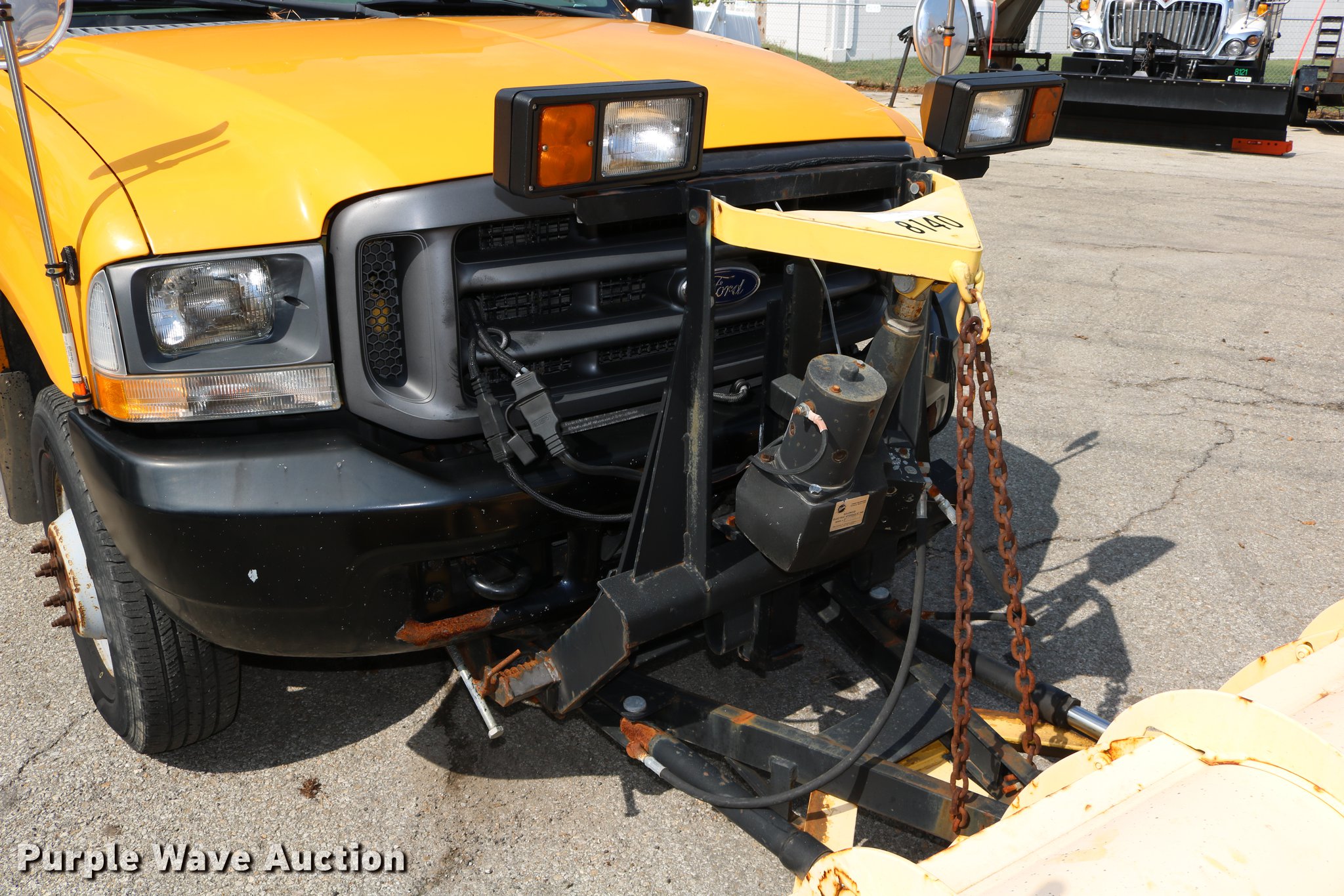 Purple Wave is selling a used 3/4 or 1 Ton Pickup or Van in Kansas. This item is a 2002 Ford F350 Super Duty dump bed pickup truck with the following: 64,735 miles on odometer, 7.3L V8 OHV 16V turbo diesel engine, Automatic transmission, Four wheel drive, AC and heat, AM/FM/cassette, Brake controller, Heil steel dump bed, 9'L x 95 1/4"W, 14" side height, D-ring tie downs, Electric over hydraulic dump, Single ram hoist, Manual end gate, Minute Mount plow, 8'W, 2" bolt-on extension, Air-Flo PSV-8E-SS spreader, Serial 16462, Unit# 025348, Single fuel tank, Pintle hitch, Trailer wiring, Spring suspension, Hydraulic brakes, 141" wheelbase, 235/85R16 tires, GVWR 12,500 lbs, FAWR 5,200 lbs, RAWR 9,750 lbs, Unit# 8140
