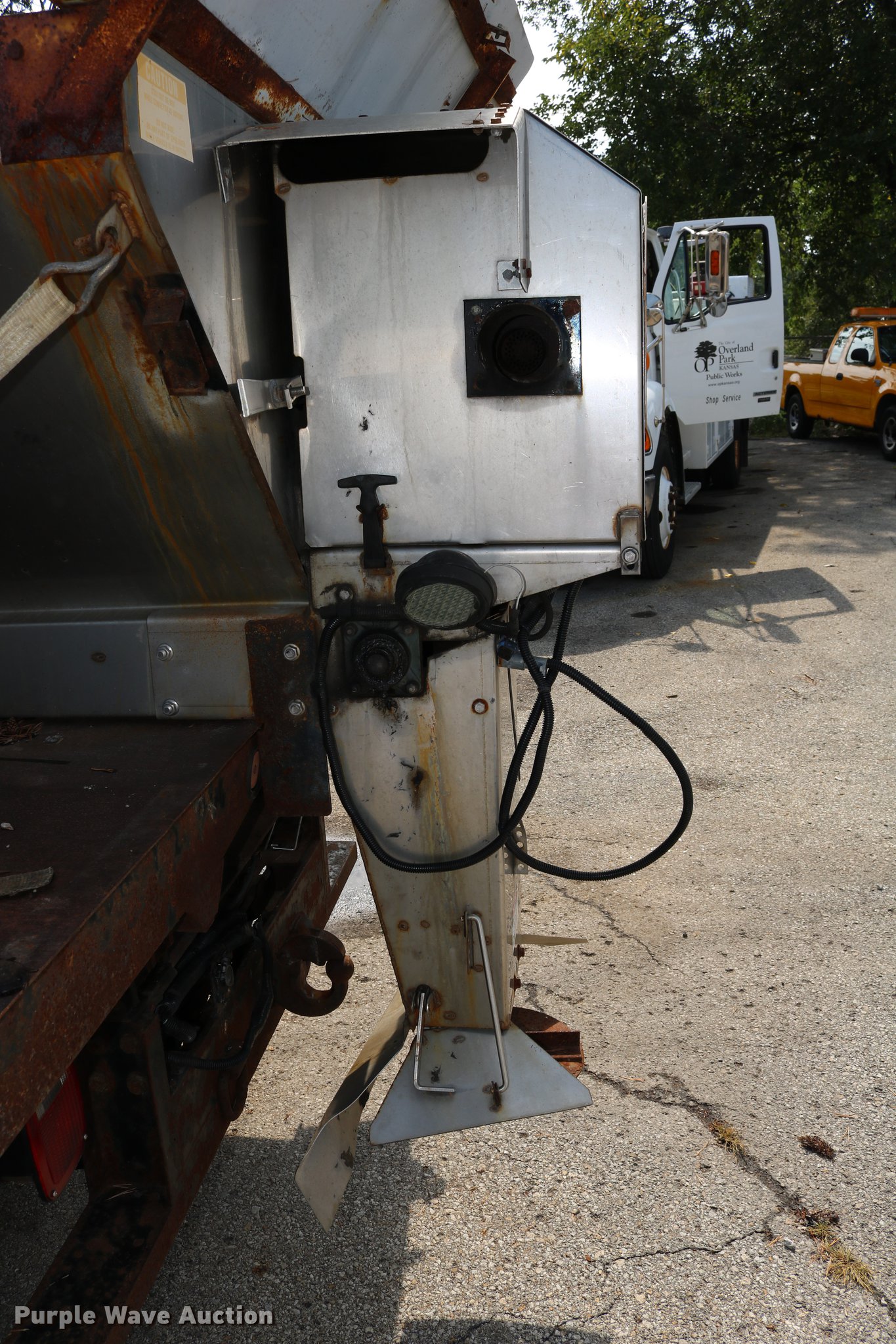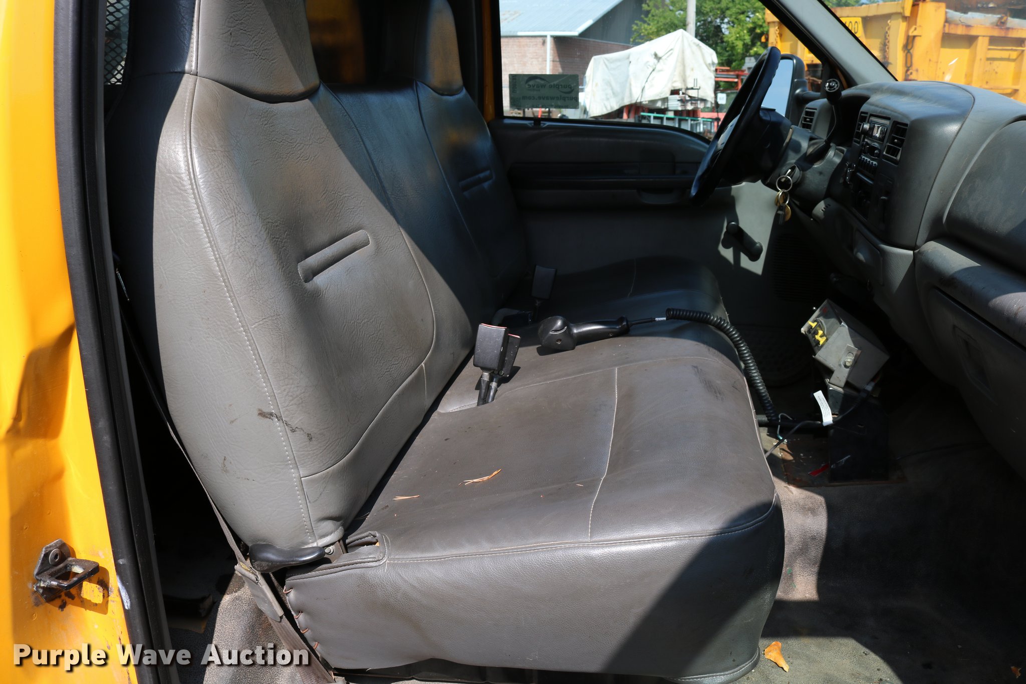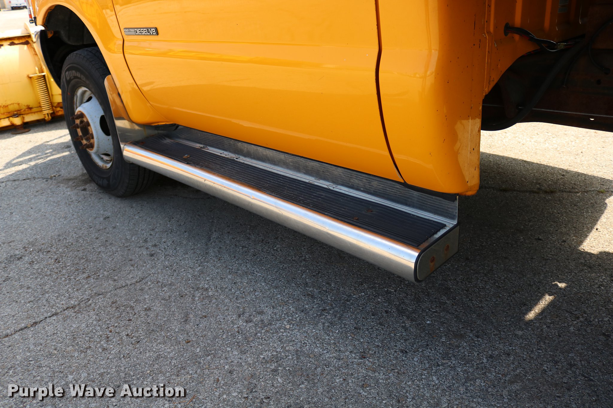 2002 Ford F350 Super Duty dump bed pickup truck. 64,735 miles on odometer, 7.3L V8 OHV 16V turbo diesel engine, Automatic transmission, Four wheel drive, AC and heat, AM/FM/cassette, Brake controller, Heil steel dump bed 9'L x 95 1/4"W, 14" side height, D-ring tie downs, Electric over hydraulic dump, Single ram hoist, Manual end gate, Minute Mount plow 8'W, 2" bolt-on extension, Air-Flo PSV-8E-SS spreader Serial 16462, Unit# 025348, Single fuel tank, Pintle hitch, Trailer wiring, Spring suspension, Hydraulic brakes, 141" wheelbase, 235/85R16 tires, GVWR 12,500 lbs, FAWR 5,200 lbs, RAWR 9,750 lbs, Unit# 8140. Kansas title. Seller is a government entity who will be assigning and distributing the title. Please contact the seller for distribution questions. 1FDWF37FX2EC15231. City of Overland Park. 11300 W 91st St. Overland Park, KS 66214