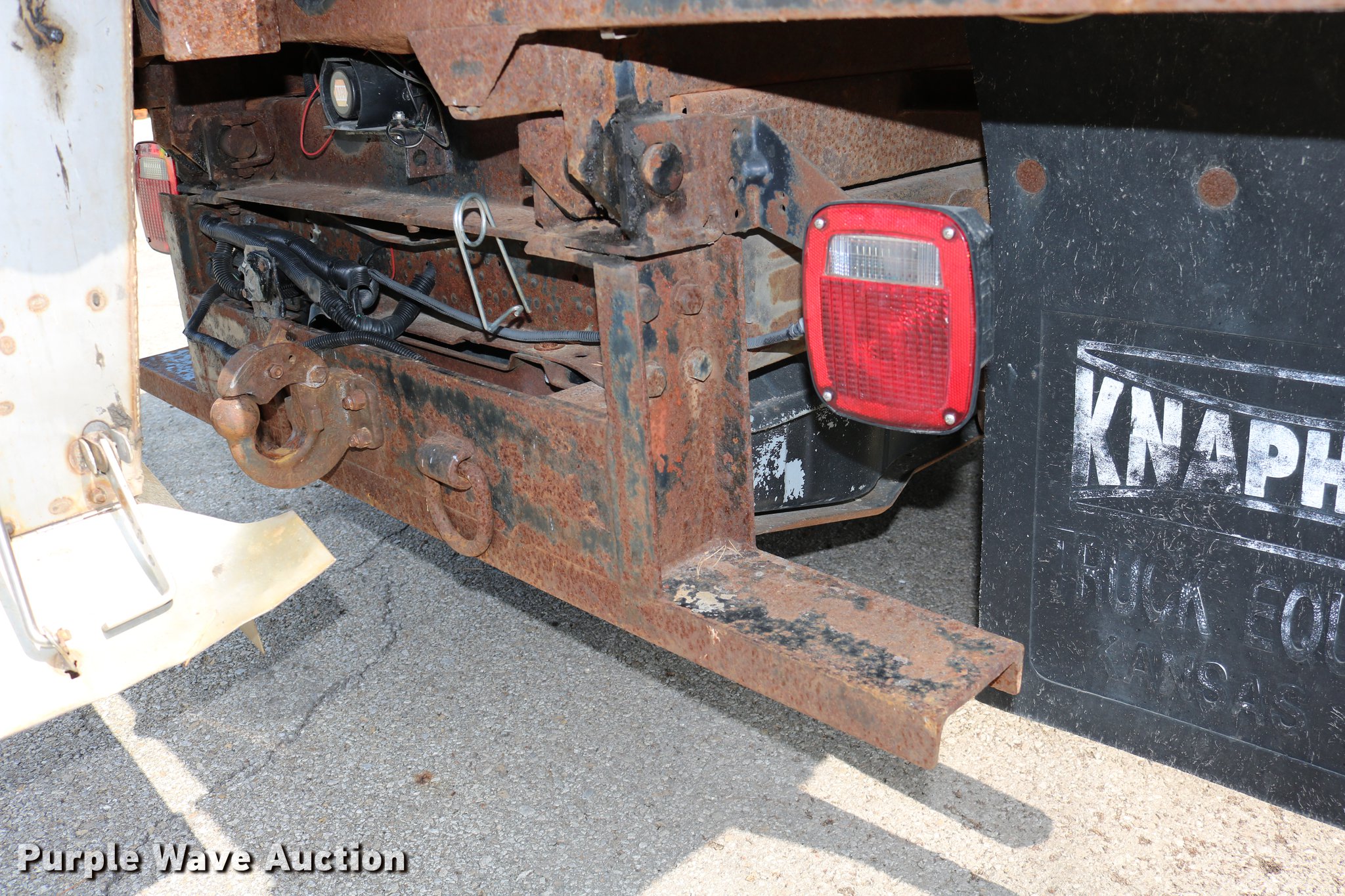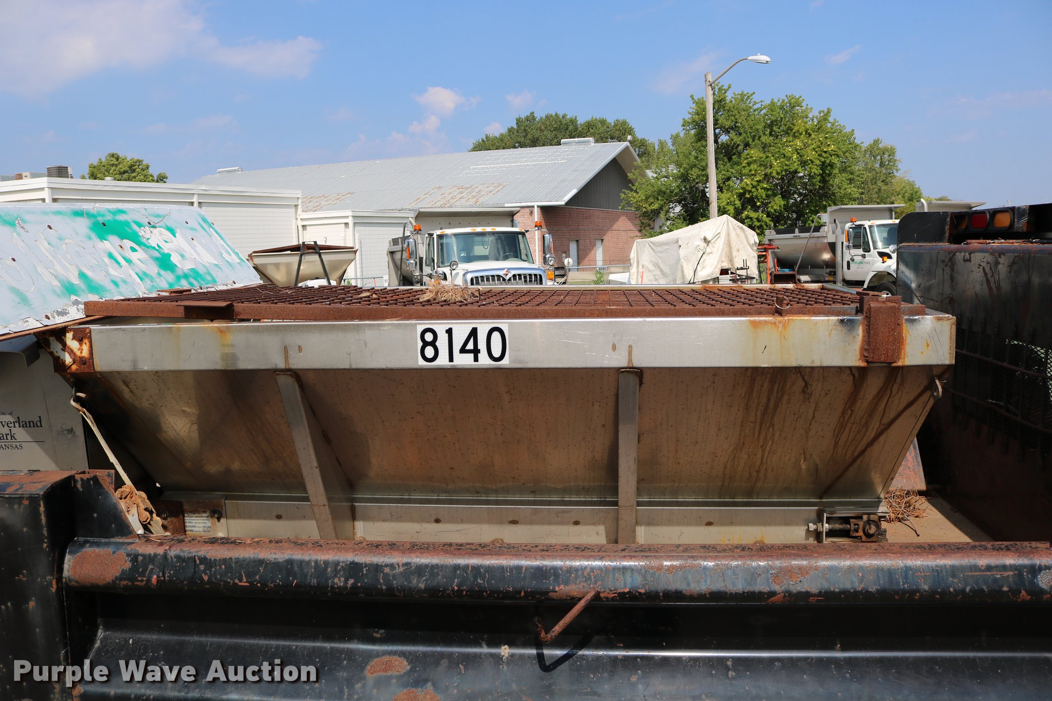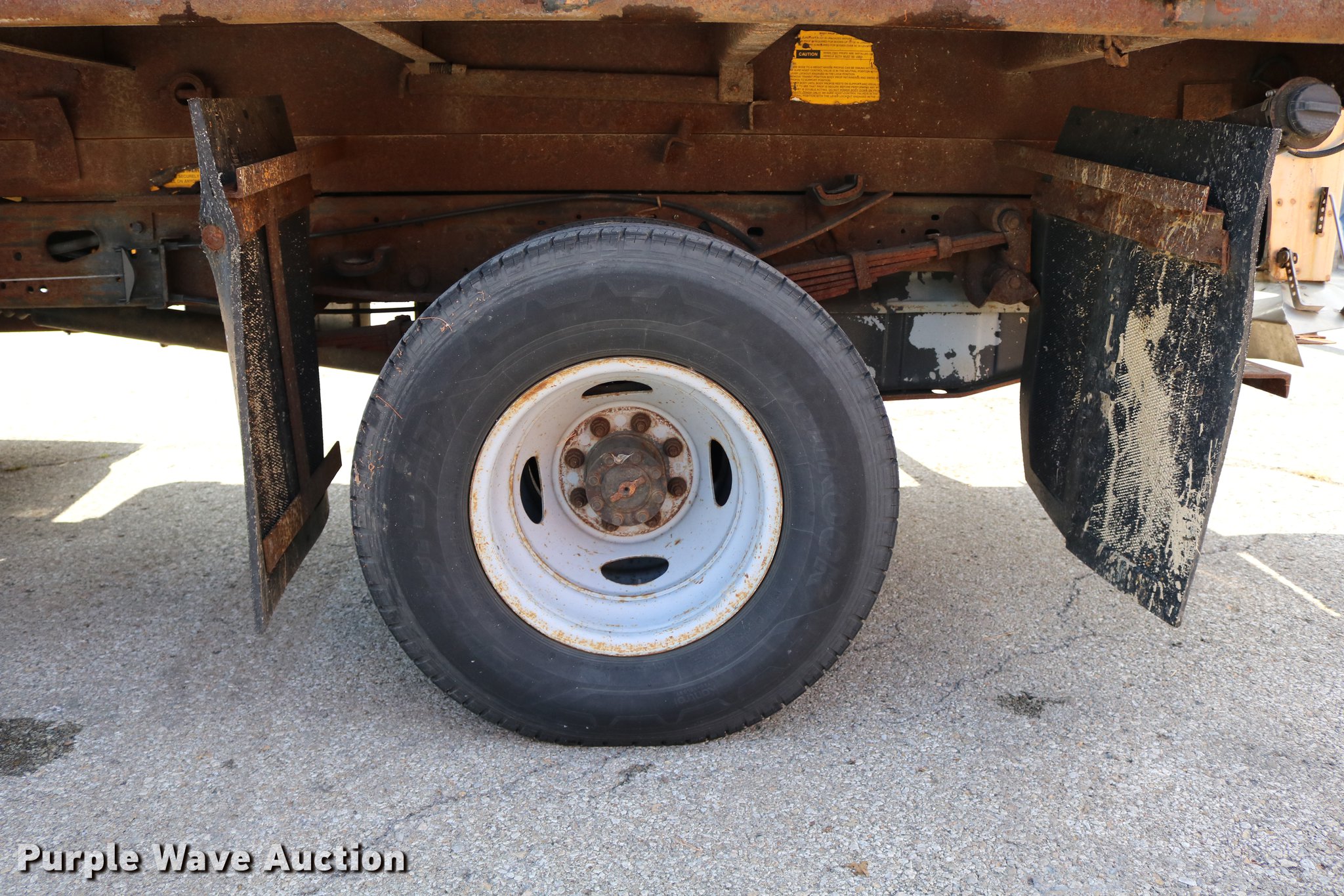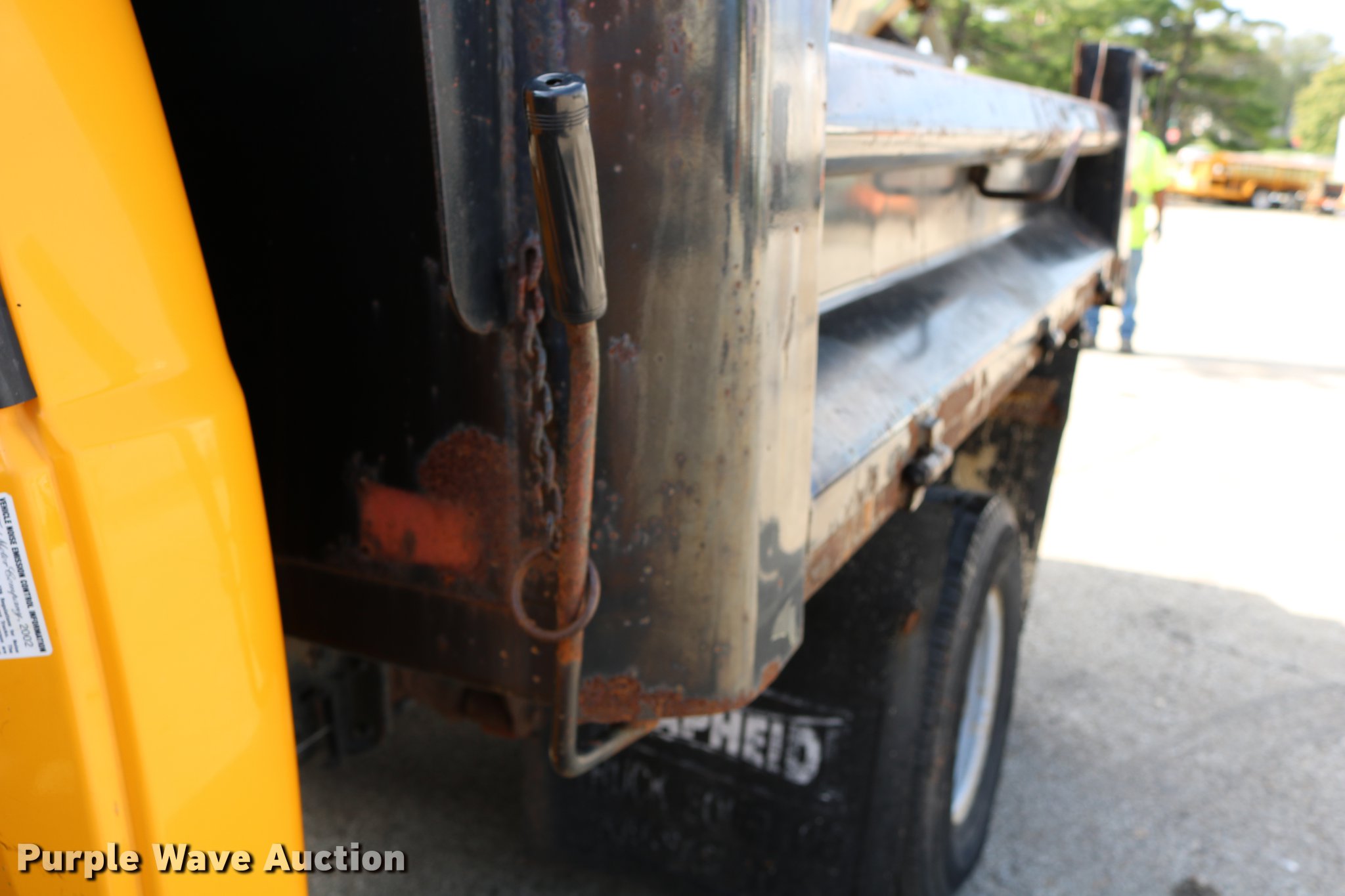2002 Ford F350 Super Duty dump bed pickup truck. 64,735 miles on odometer, 7.3L V8 OHV 16V turbo diesel engine, Automatic transmission, Four wheel drive, AC and heat, AM/FM/cassette, Brake controller, Heil steel dump bed 9'L x 95 1/4"W, 14" side height, D-ring tie downs, Electric over hydraulic dump, Single ram hoist, Manual end gate, Minute Mount plow 8'W, 2" bolt-on extension, Air-Flo PSV-8E-SS spreader Serial 16462, Unit# 025348, Single fuel tank, Pintle hitch, Trailer wiring, Spring suspension, Hydraulic brakes, 141" wheelbase, 235/85R16 tires, GVWR 12,500 lbs, FAWR 5,200 lbs, RAWR 9,750 lbs, Unit# 8140. Kansas title. Seller is a government entity who will be assigning and distributing the title. Please contact the seller for distribution questions. 1FDWF37FX2EC15231. City of Overland Park. 11300 W 91st St. Overland Park, KS 66214