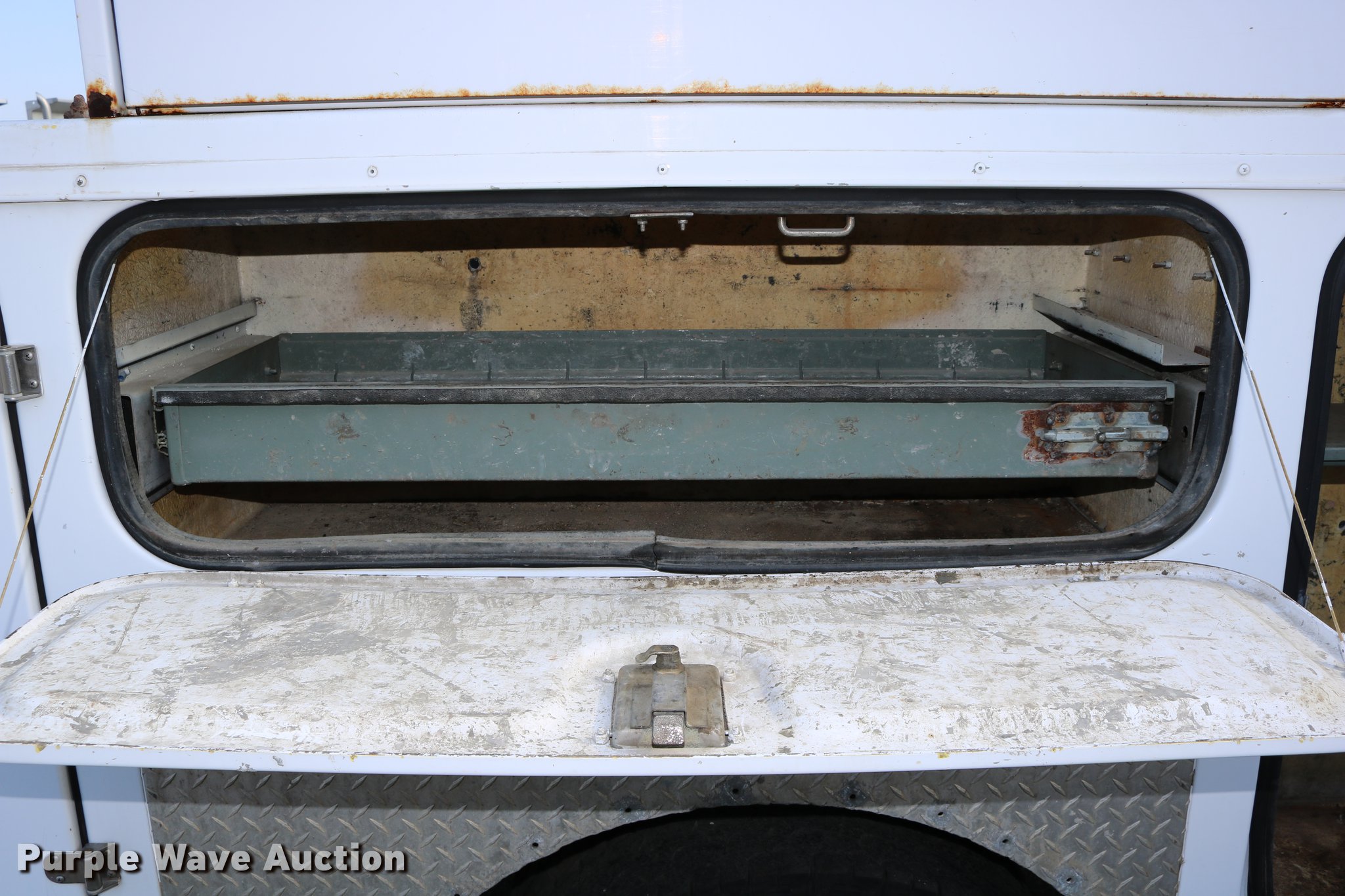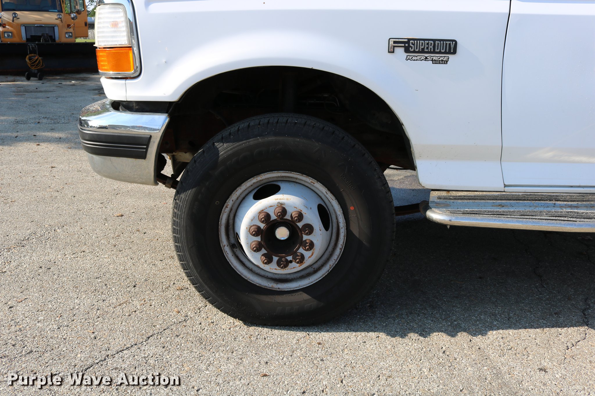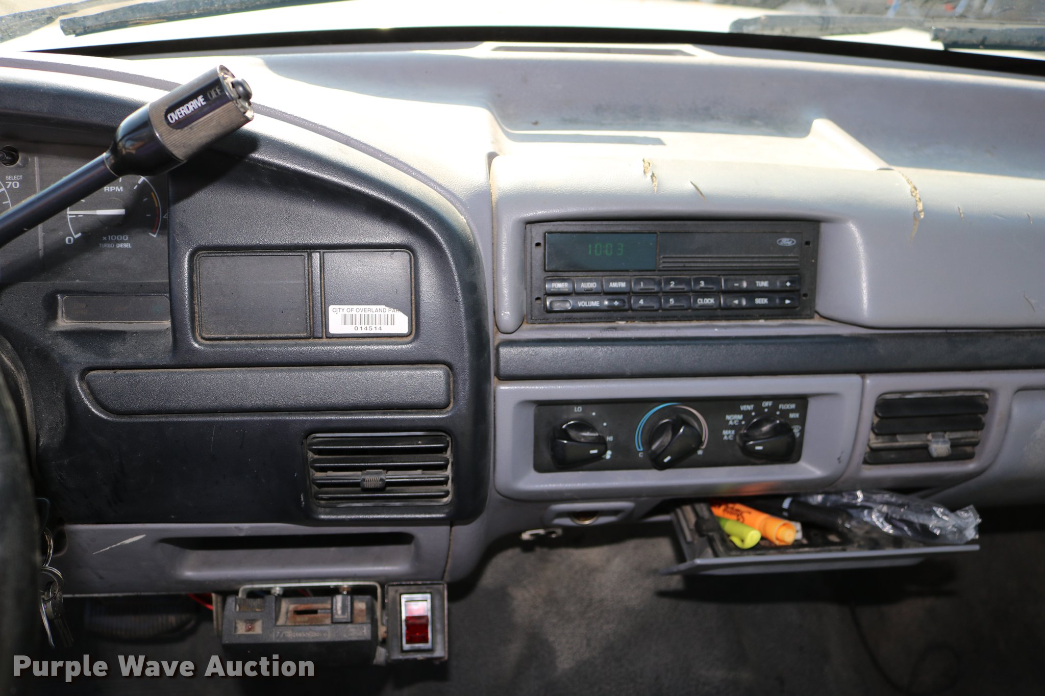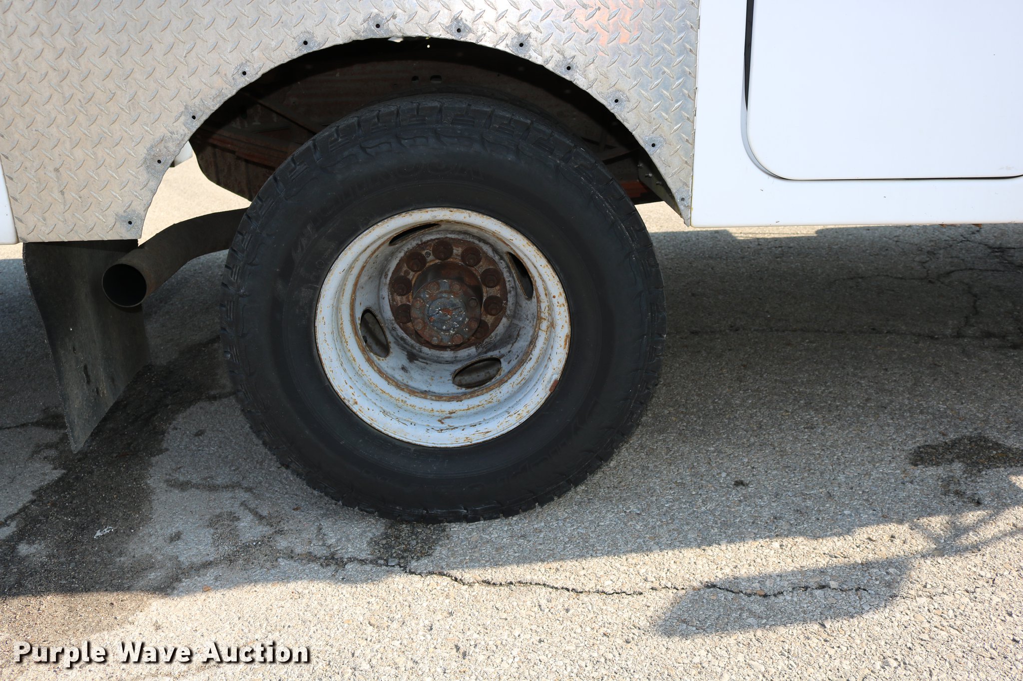 Purple Wave is selling a used Service Truck in Kansas. This item is a 1996 Ford F450 Super Duty utility truck with the following: 73,495 miles on odometer, 7.3L V8 OHV 16V turbo diesel engine, Automatic transmission, Single axle, AC and heat, AM/FM, Brake controller, Backup alarm, Light bar, Block heater, Fibre Body utility bed, Shelving, Slide-out drawers, Dual fuel tanks, Pintle hitch, Trailer wiring, Spring suspension, Hydraulic brakes, 161" wheelbase, 235/85R16 tires, GVWR 15,000 lbs, Unit# 8131