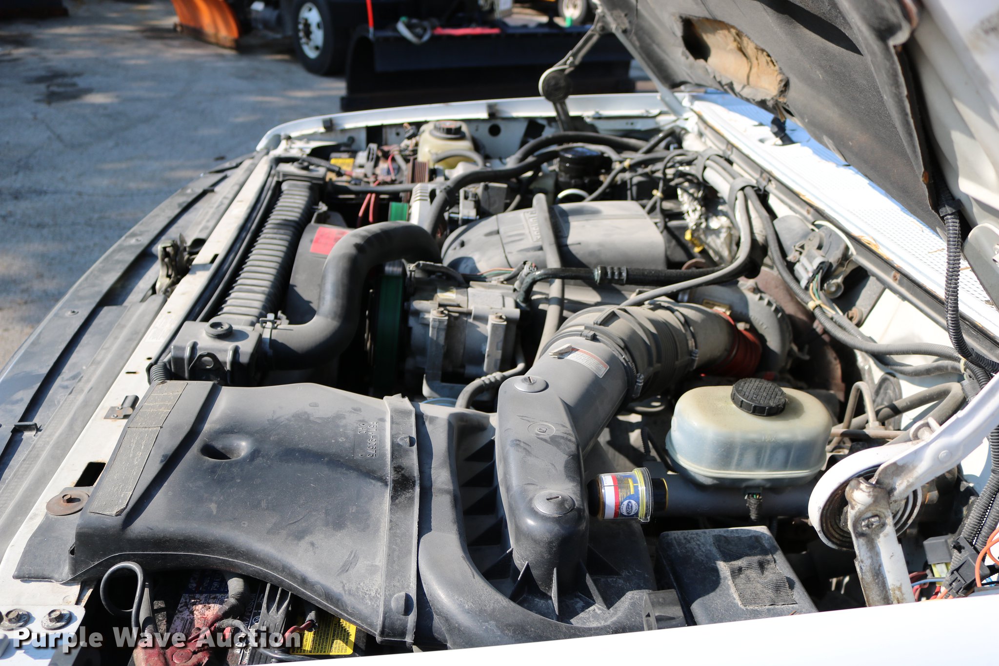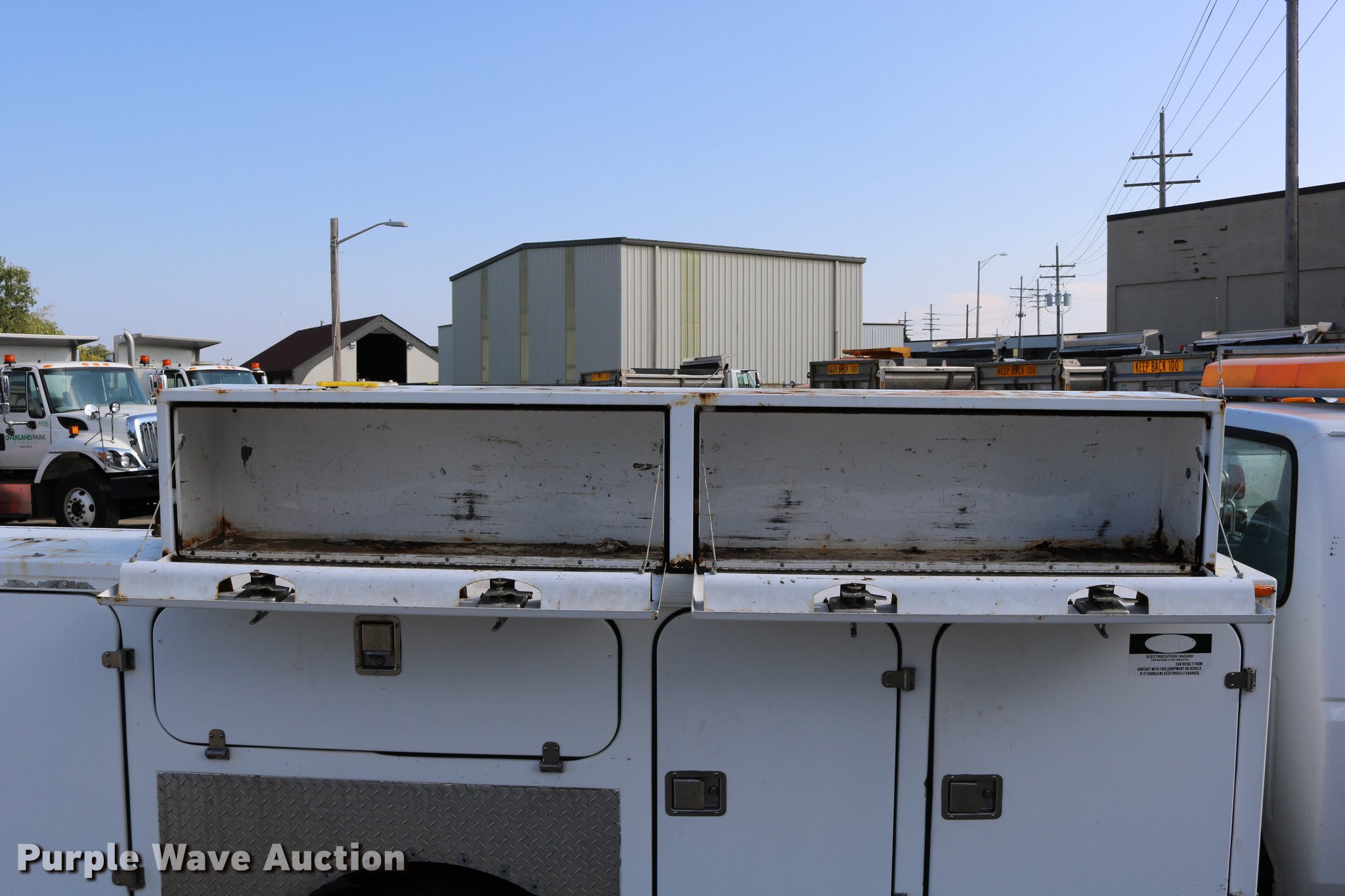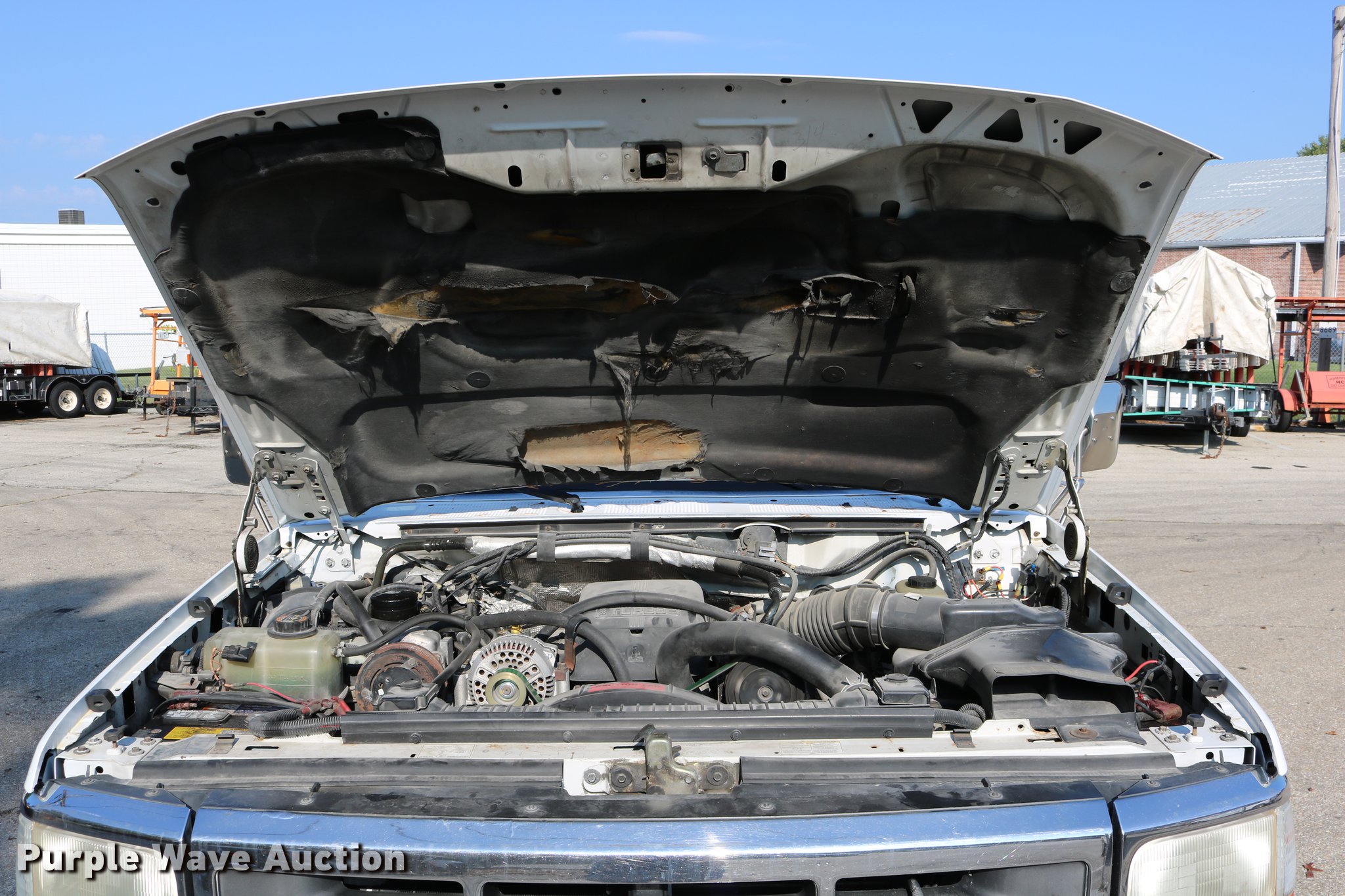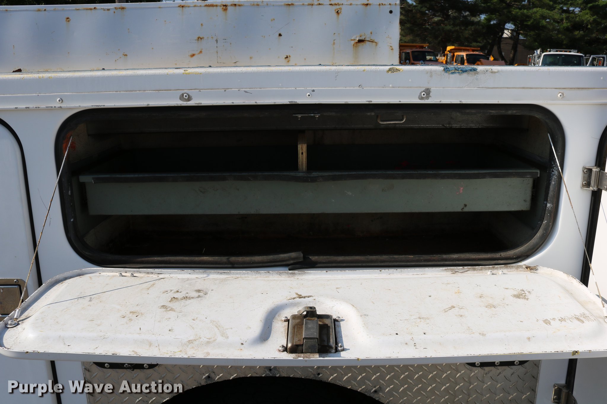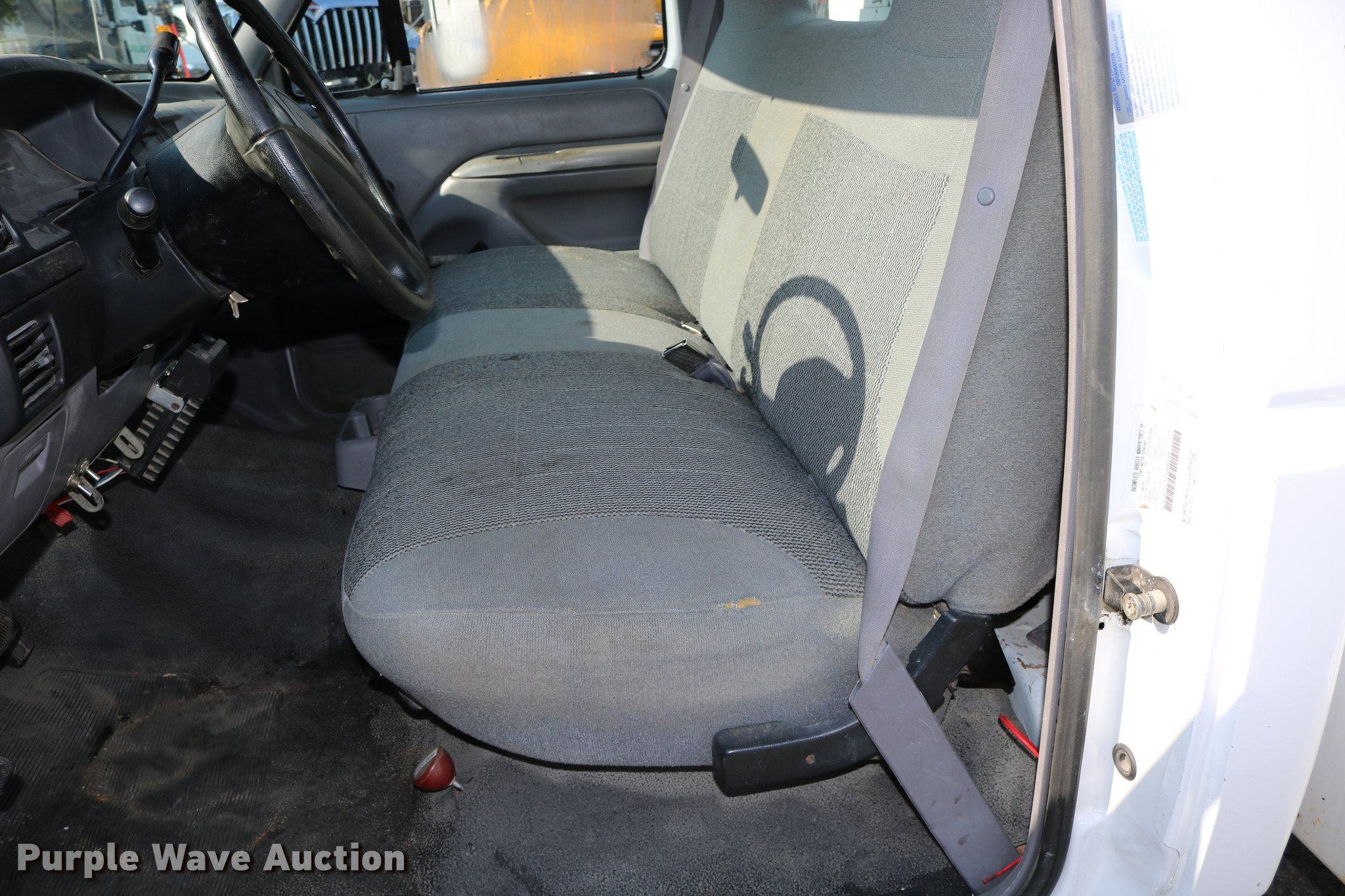 Purple Wave is selling a used Service Truck in Kansas. This item is a 1996 Ford F450 Super Duty utility truck with the following: 73,495 miles on odometer, 7.3L V8 OHV 16V turbo diesel engine, Automatic transmission, Single axle, AC and heat, AM/FM, Brake controller, Backup alarm, Light bar, Block heater, Fibre Body utility bed, Shelving, Slide-out drawers, Dual fuel tanks, Pintle hitch, Trailer wiring, Spring suspension, Hydraulic brakes, 161" wheelbase, 235/85R16 tires, GVWR 15,000 lbs, Unit# 8131