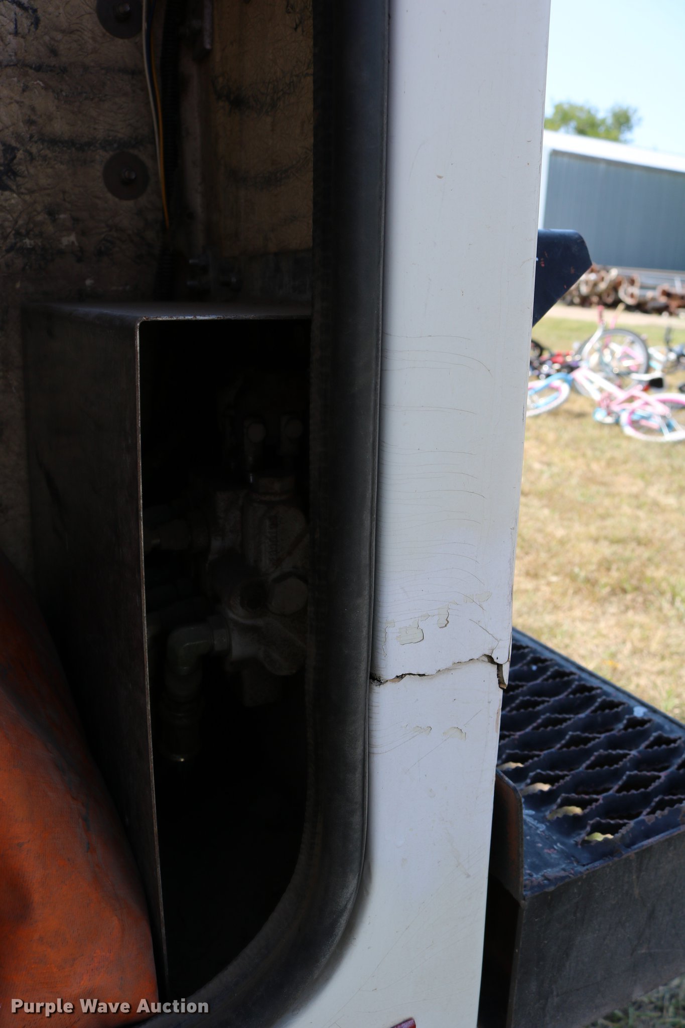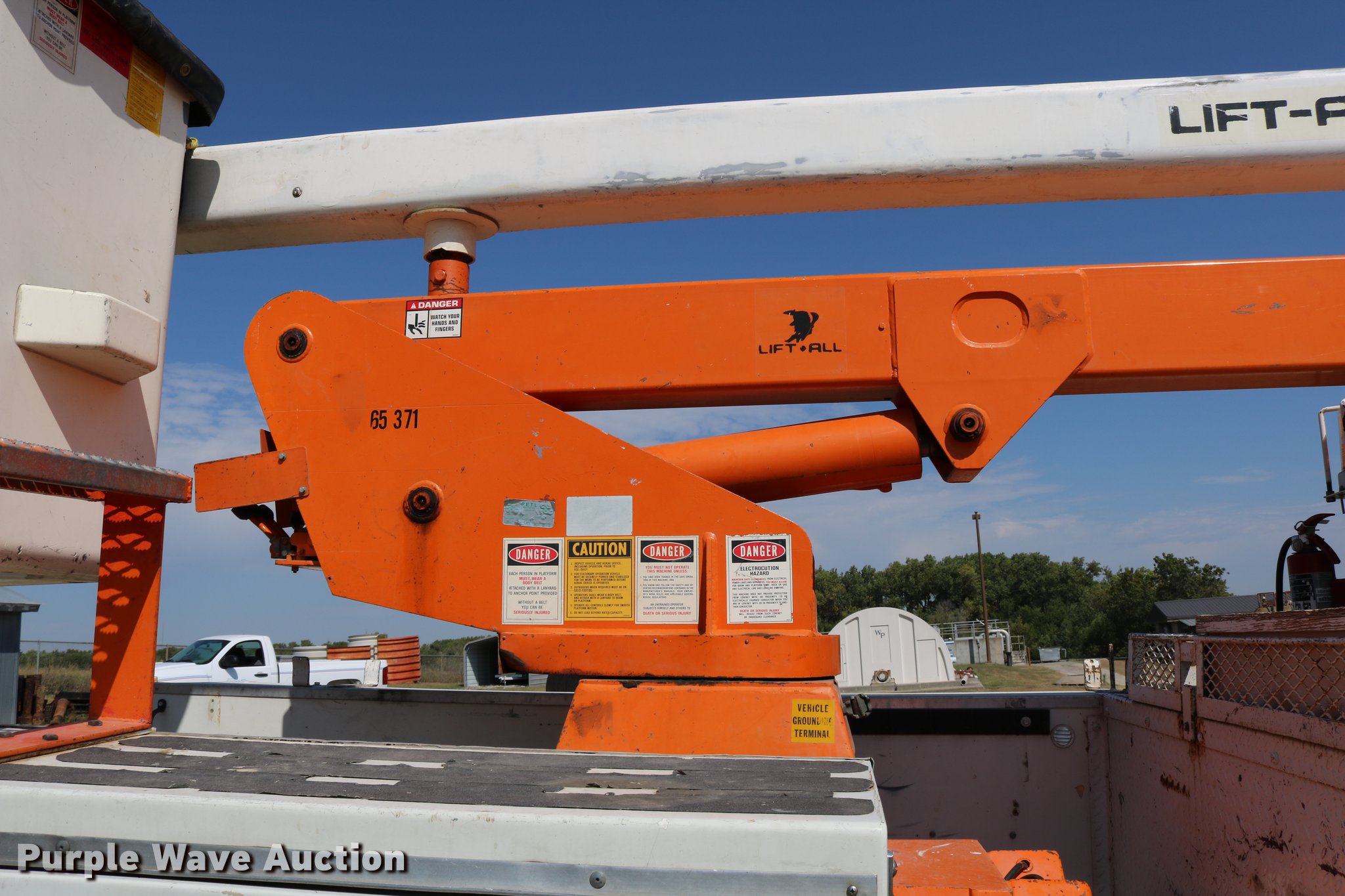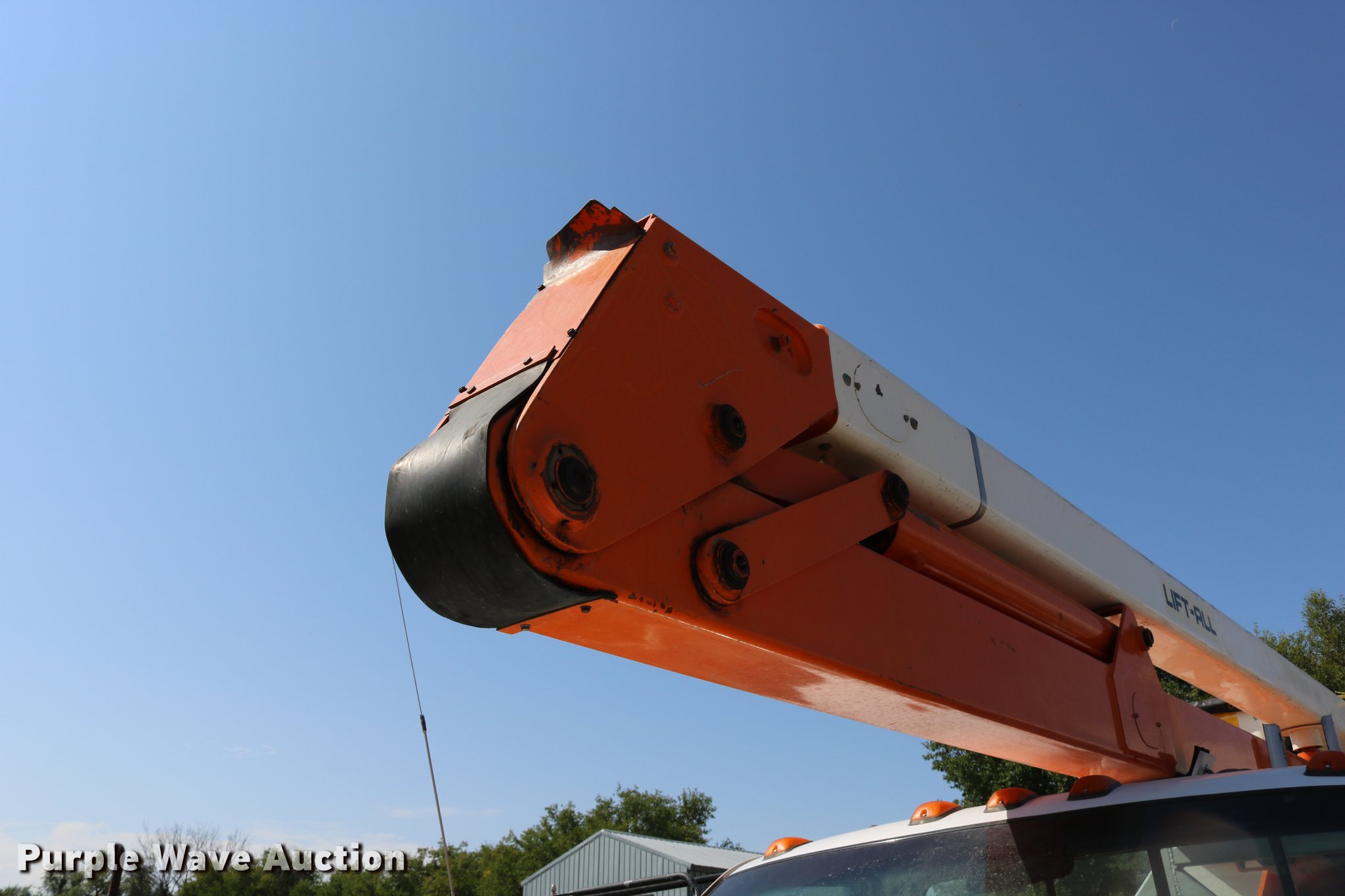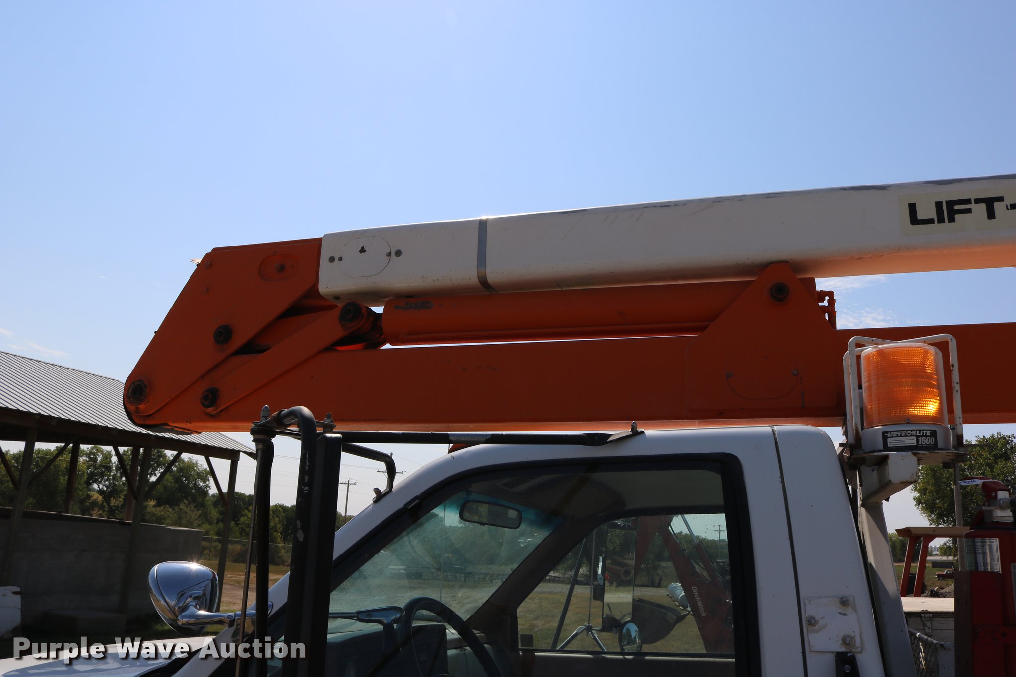 1992 GMC TopKick bucket truck. 159,354 miles on odometer, 1,995 engine hours on meter, 2,927 hydraulic hours on meter, Caterpillar 3116 6.6L L6 turbo diesel engine, Five speed manual transmission, Two speed rear end, Heat, AM, Front tow hooks, Beacon light, PTO, Fibre Body Ind. service bed 11'L, Shelving, Work lights, Serial 4712, Lift-all LAH-37-15 boom 37' boom length, 350 lbs max lift capacity, Man basket, 43' max lift height, Ground and platform controls, Boom rotation, Insulated boom, (2) hydraulic remotes in basket, (2) outriggers, Serial 3851089237FB, Single fuel tank, Pintle hitch, Receiver hitch, Trailer wiring, Spring suspension, Hydraulic brakes, Approx. 155" wheelbase, Dynatrac 9.00-20 tires, GVWR 27,080 lbs, Cracked windshield, Fire extinguisher not included. Kansas title. 1GDL7H1J0NJ523465. Sewer Treatment. 1268 180 Rd. Belleville, KS 66935