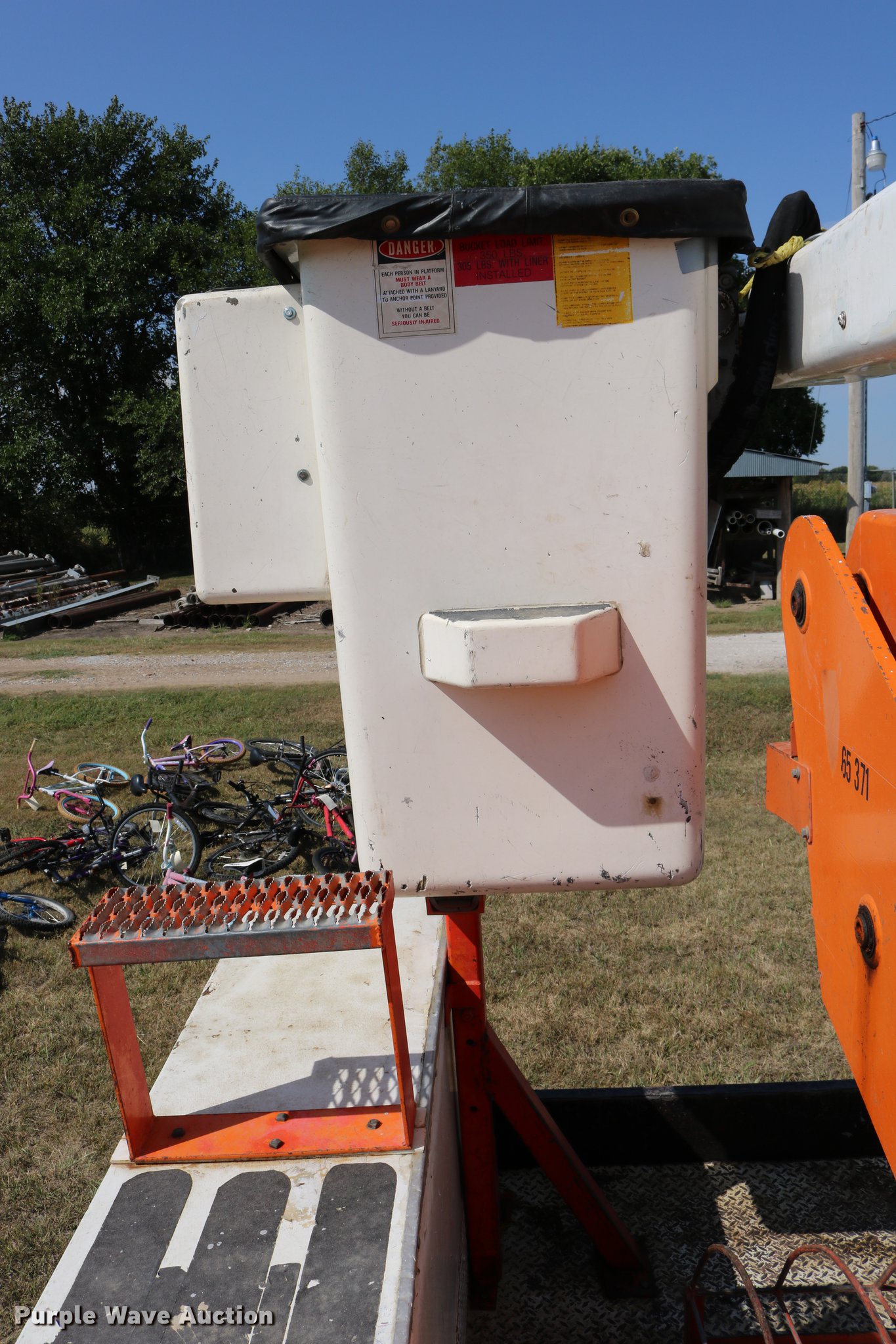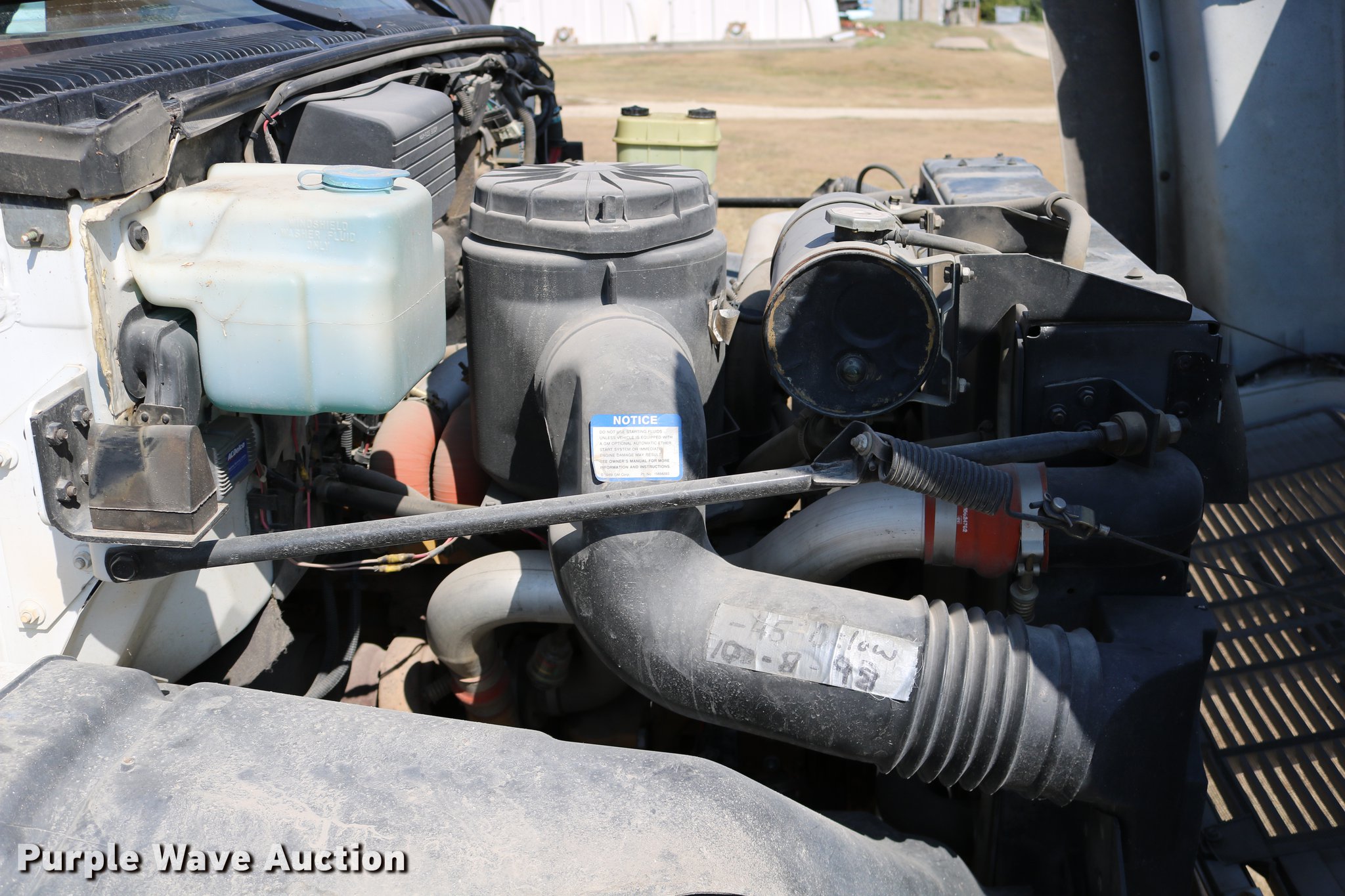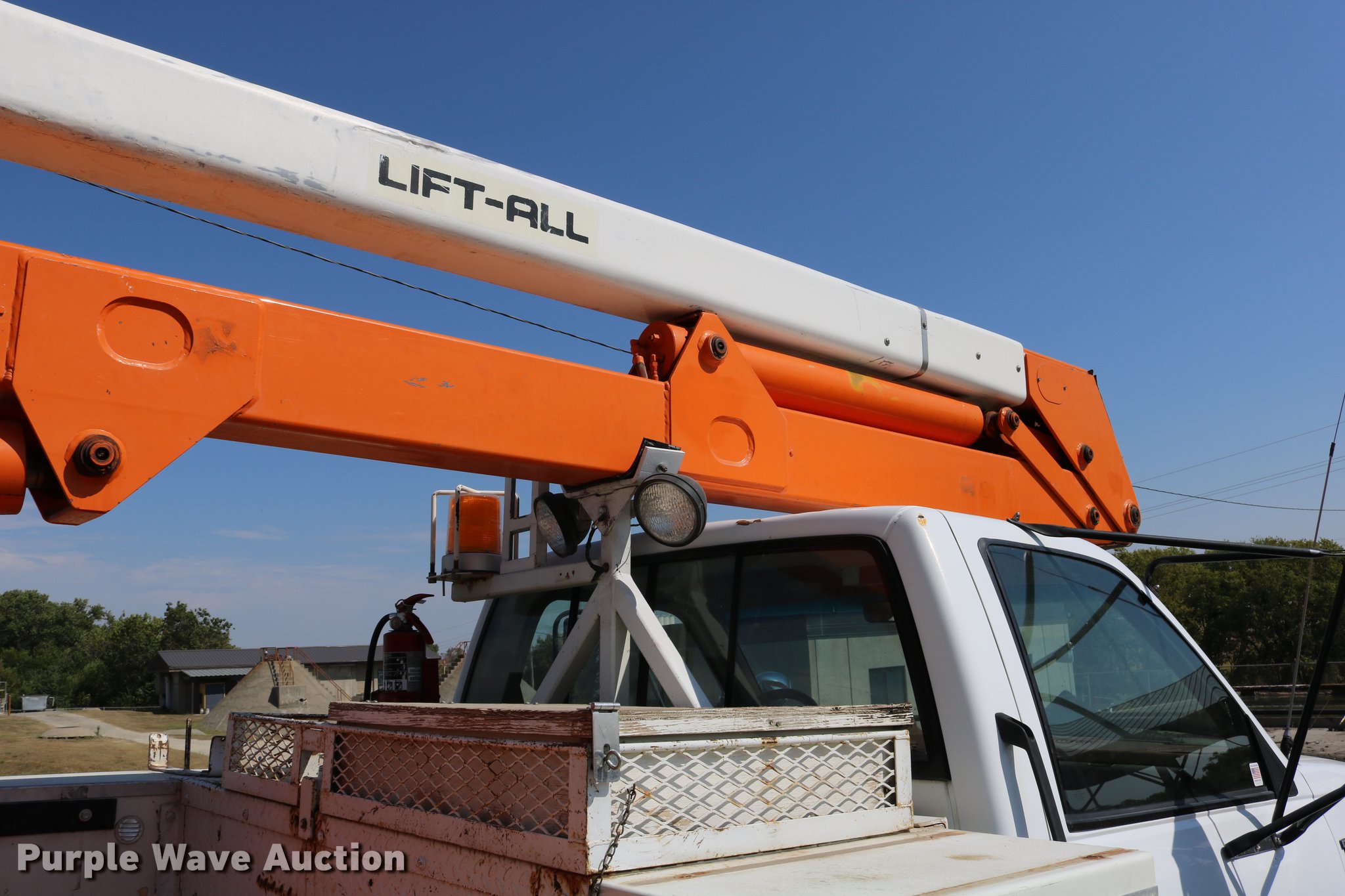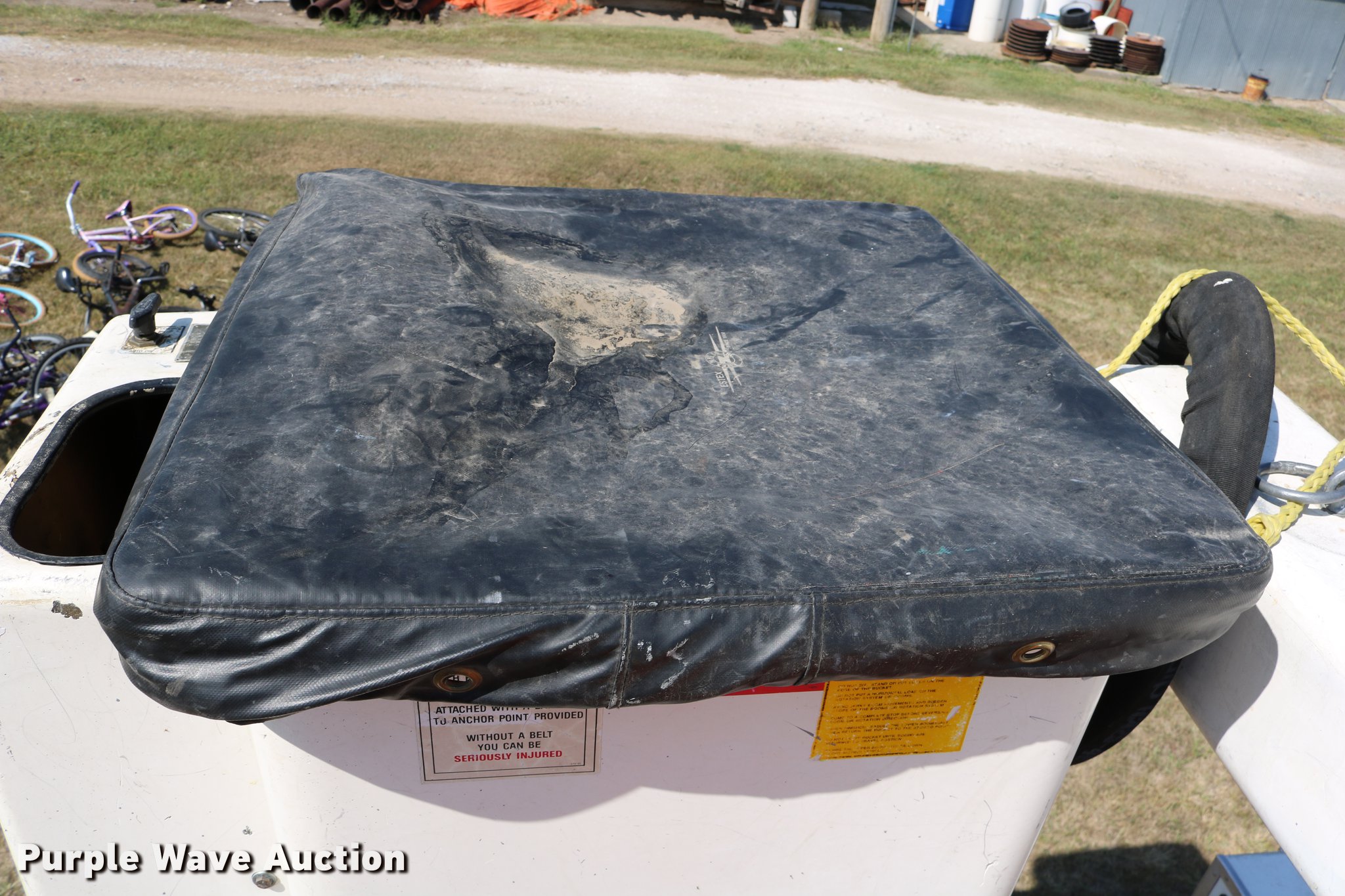 1992 GMC TopKick bucket truck. 159,354 miles on odometer, 1,995 engine hours on meter, 2,927 hydraulic hours on meter, Caterpillar 3116 6.6L L6 turbo diesel engine, Five speed manual transmission, Two speed rear end, Heat, AM, Front tow hooks, Beacon light, PTO, Fibre Body Ind. service bed 11'L, Shelving, Work lights, Serial 4712, Lift-all LAH-37-15 boom 37' boom length, 350 lbs max lift capacity, Man basket, 43' max lift height, Ground and platform controls, Boom rotation, Insulated boom, (2) hydraulic remotes in basket, (2) outriggers, Serial 3851089237FB, Single fuel tank, Pintle hitch, Receiver hitch, Trailer wiring, Spring suspension, Hydraulic brakes, Approx. 155" wheelbase, Dynatrac 9.00-20 tires, GVWR 27,080 lbs, Cracked windshield, Fire extinguisher not included. Kansas title. 1GDL7H1J0NJ523465. Sewer Treatment. 1268 180 Rd. Belleville, KS 66935