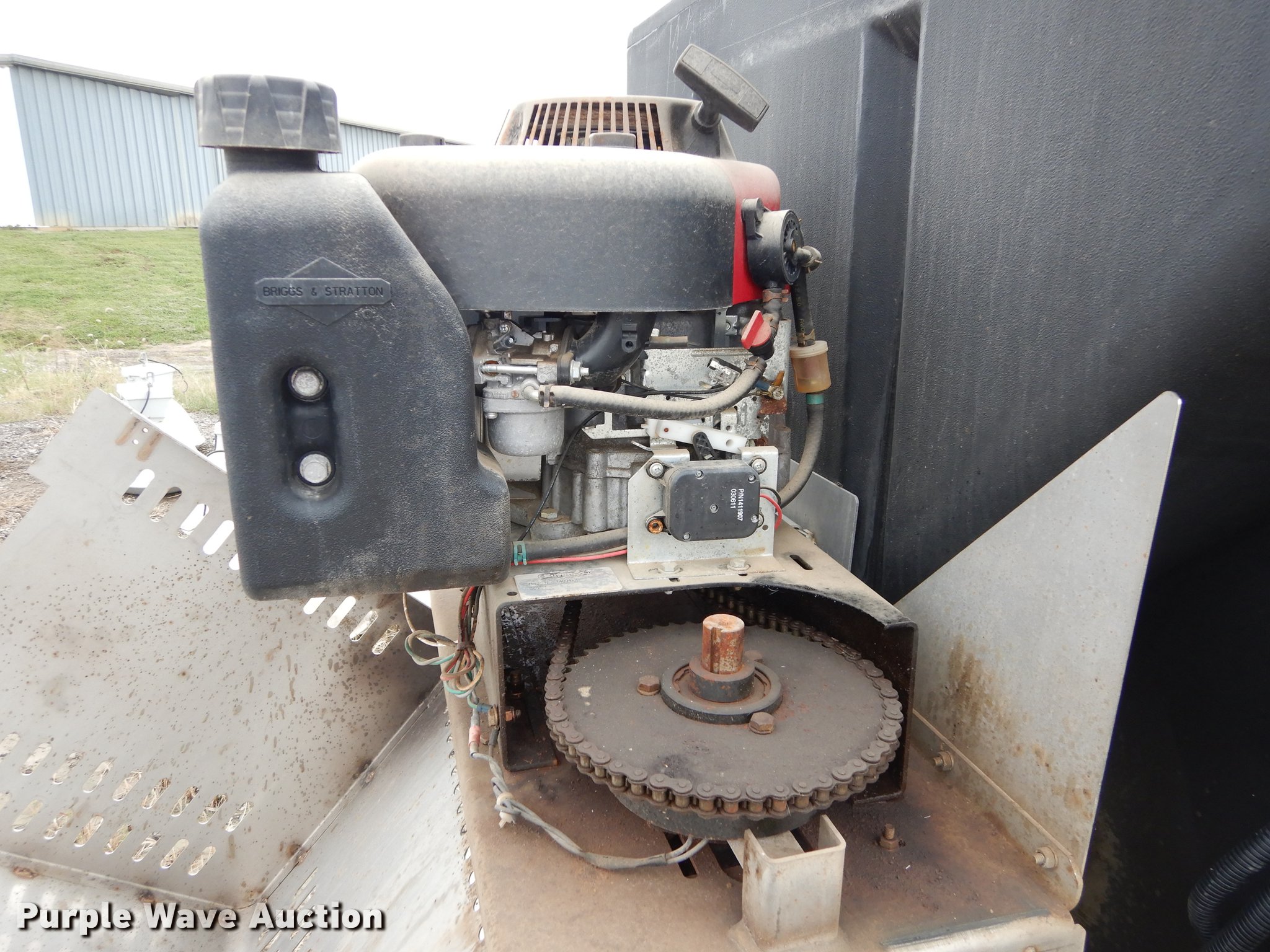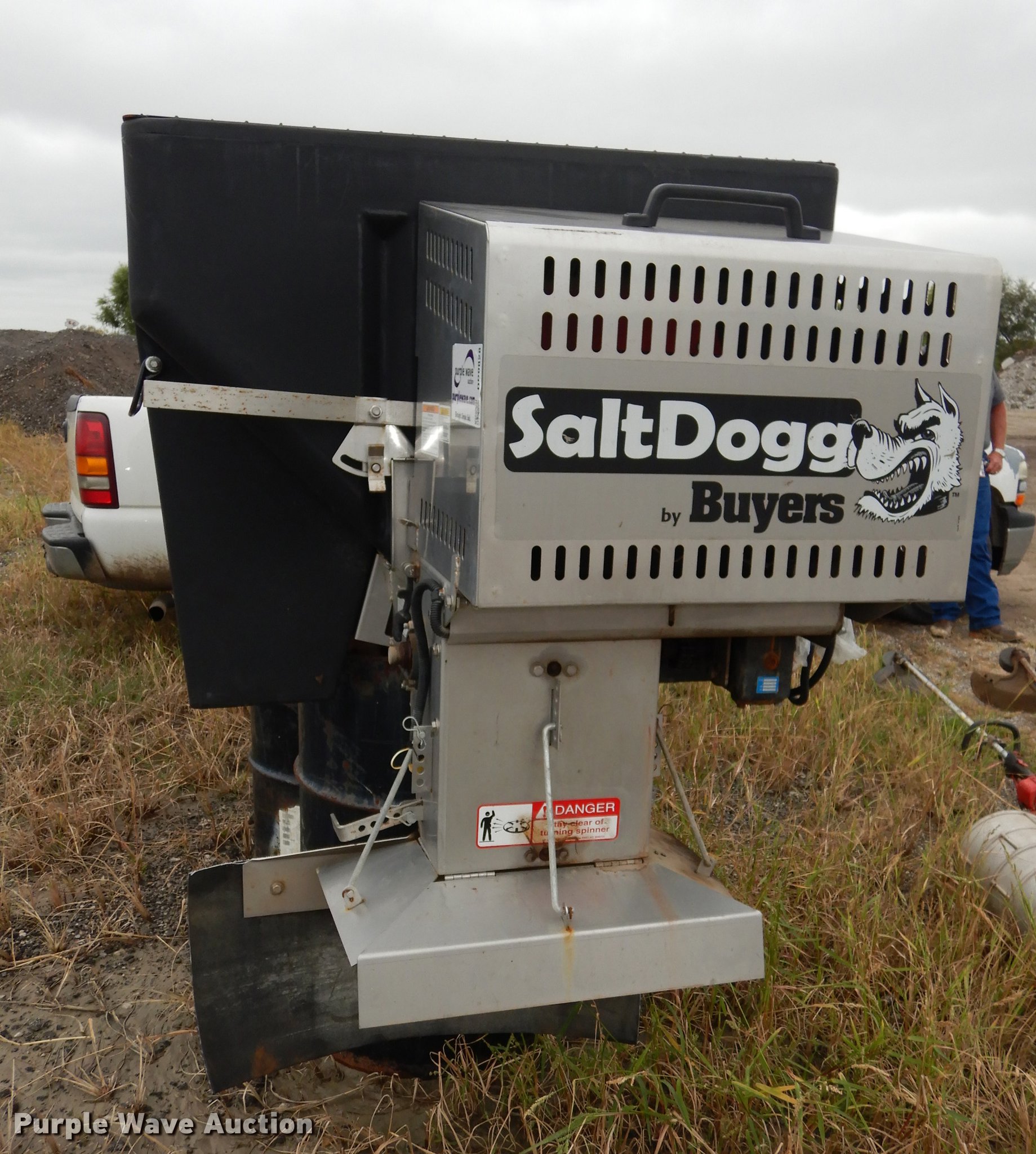 Purple Wave is selling a used Automotive Parts or Acces. in Kansas. This item is a Salt Dogg V-box spreader with the following: 8' x 45", Briggs & Stratton 10.5 HP gas engine, Controls, Hard plastic exterior, Stainless steel base