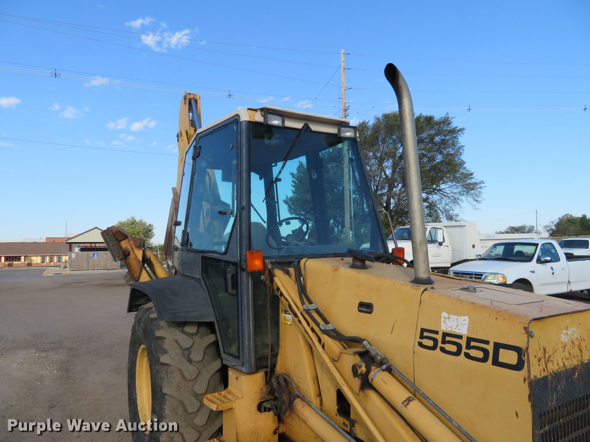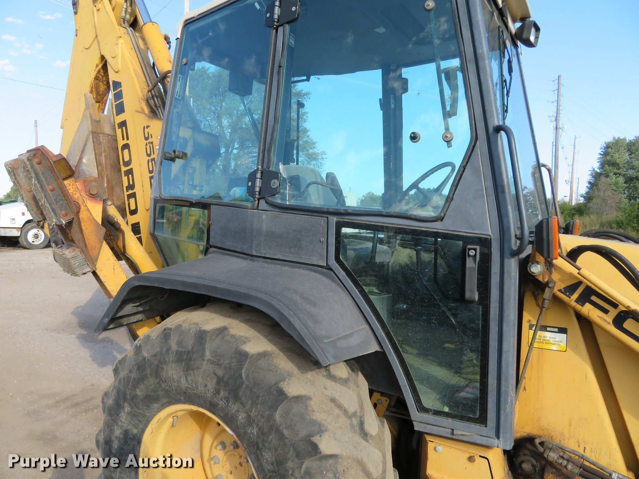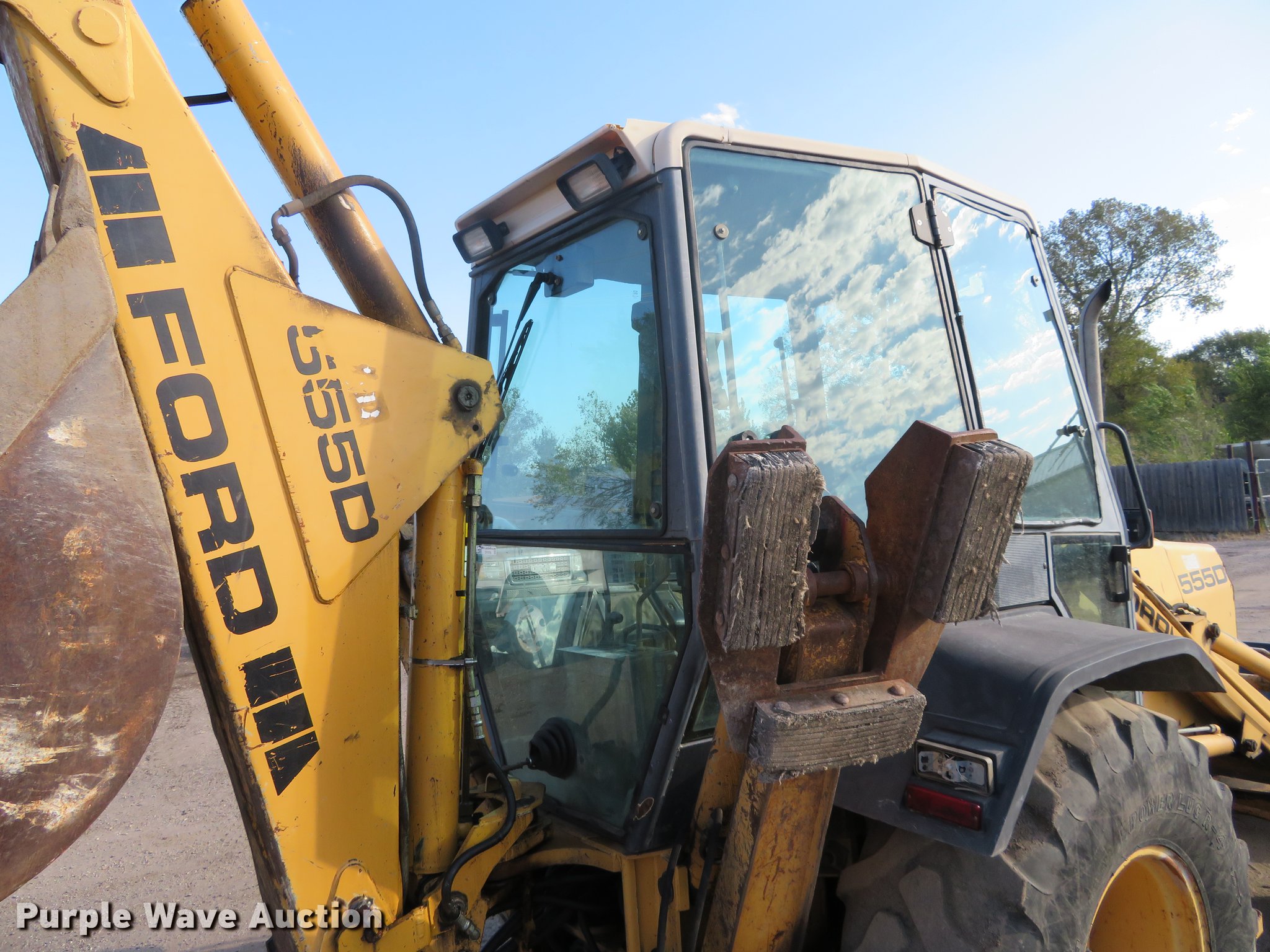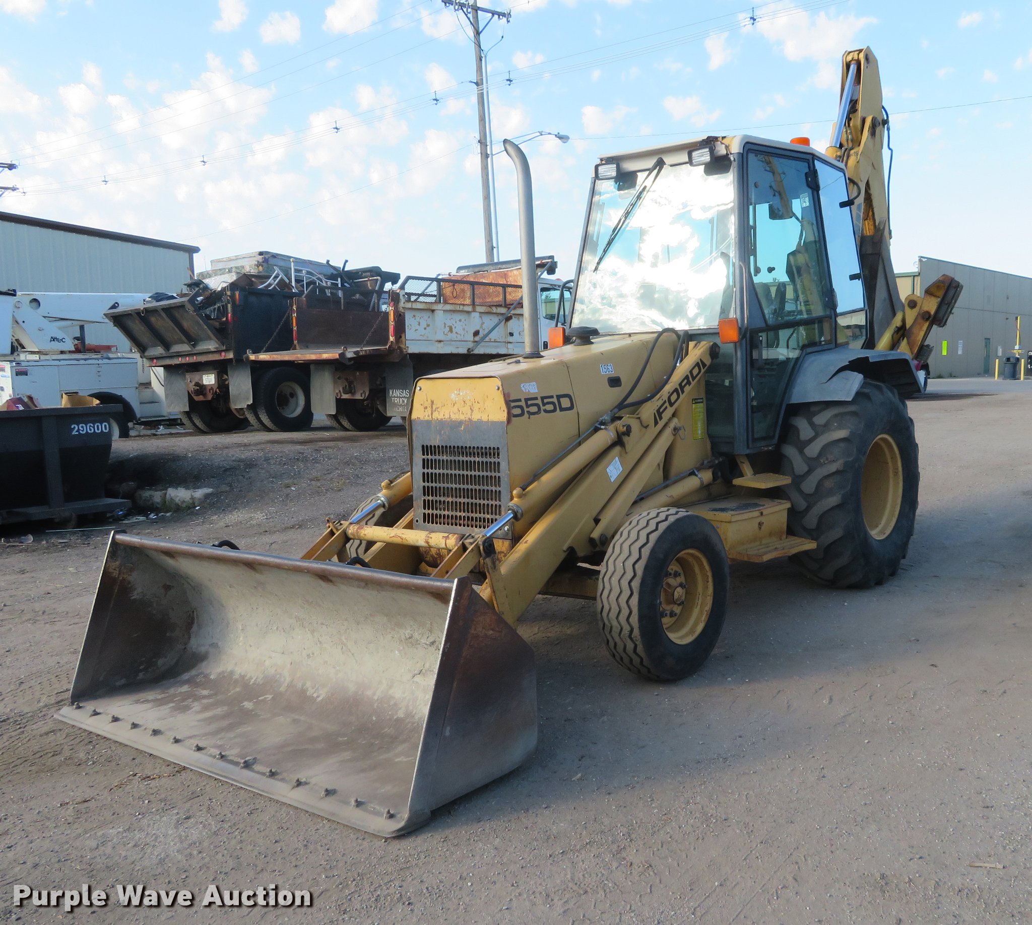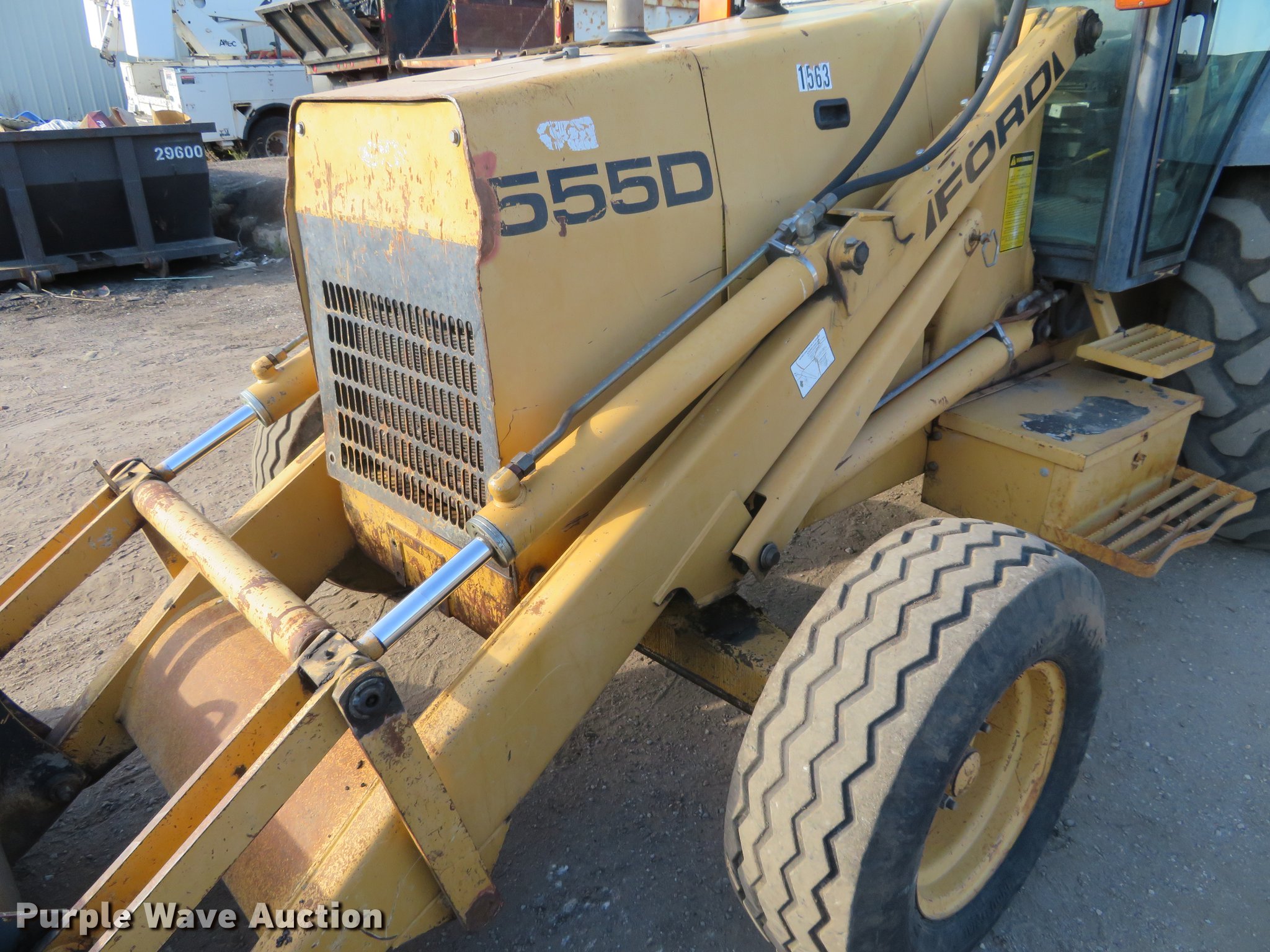 Purple Wave is selling a used Tractor Loader Backhoe in Kansas. This item is a Ford 555D backhoe with the following: 8,379 hours on meter, Four cylinder diesel engine, Shuttle shift transmission, 4F-4R gears, Enclosed cab, Two stick backhoe controls, Front and rear work lights, 88"W loader bucket, 24"W backhoe bucket, (4) teeth, 11L-16 front tires, 18.4-24 rear tires, Serial 021350