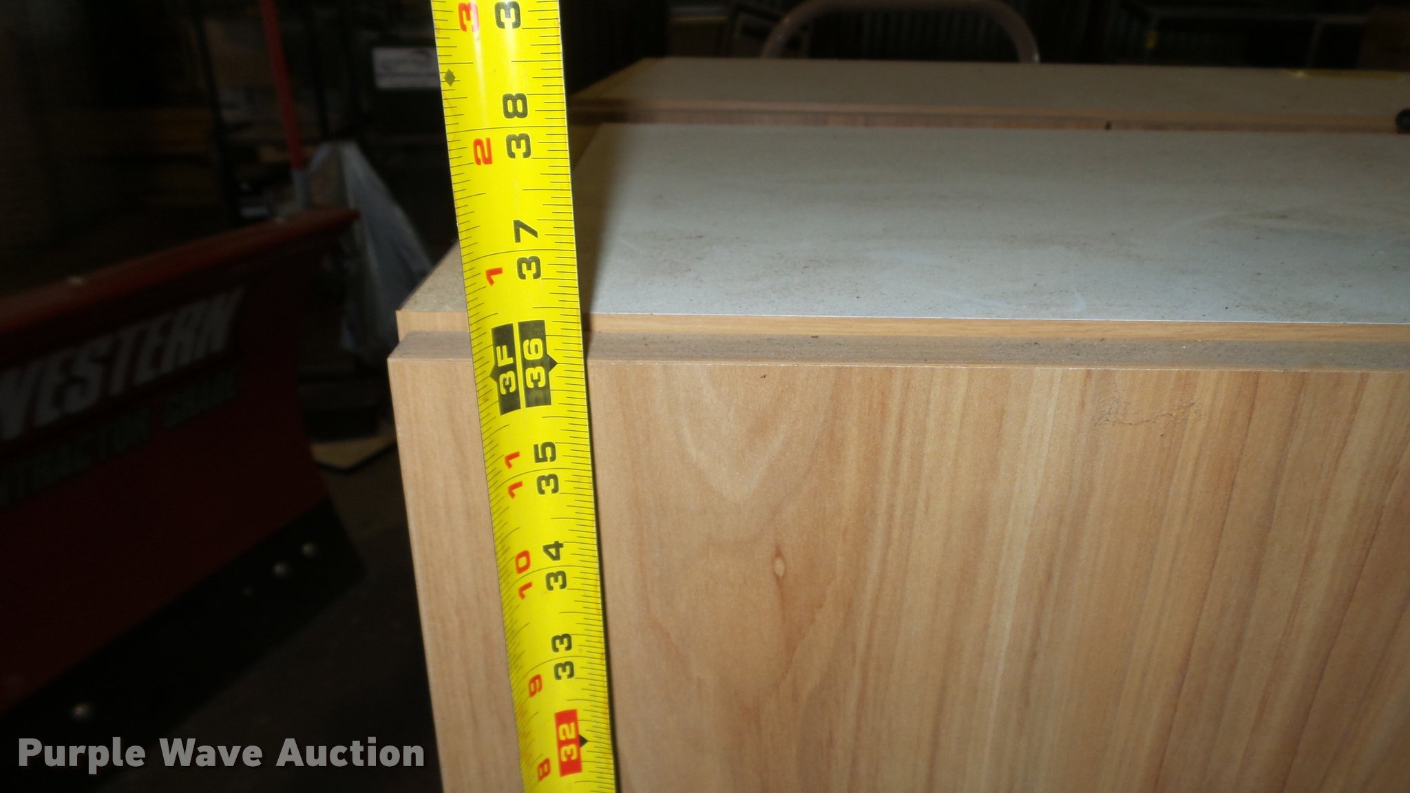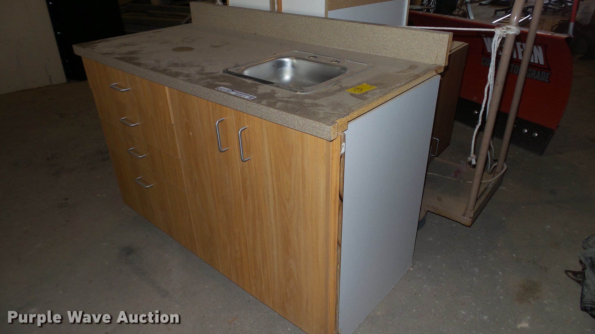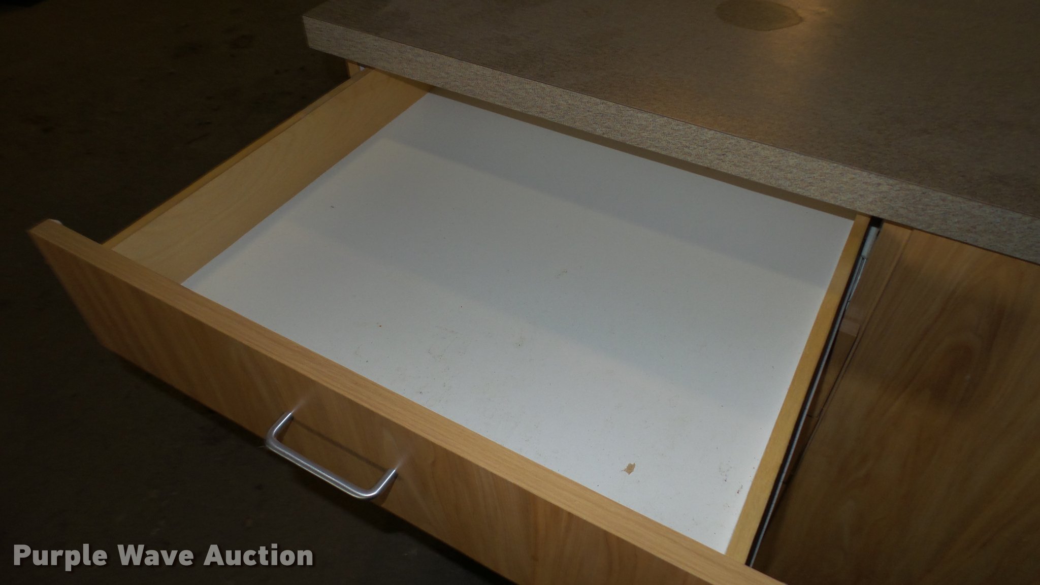 Purple Wave is selling a used Furniture in Iowa. This item is a (4) cabinets with the following: (3) hanging, Counter top with sink, (4) four drawers, (2) doors, Unit# 28