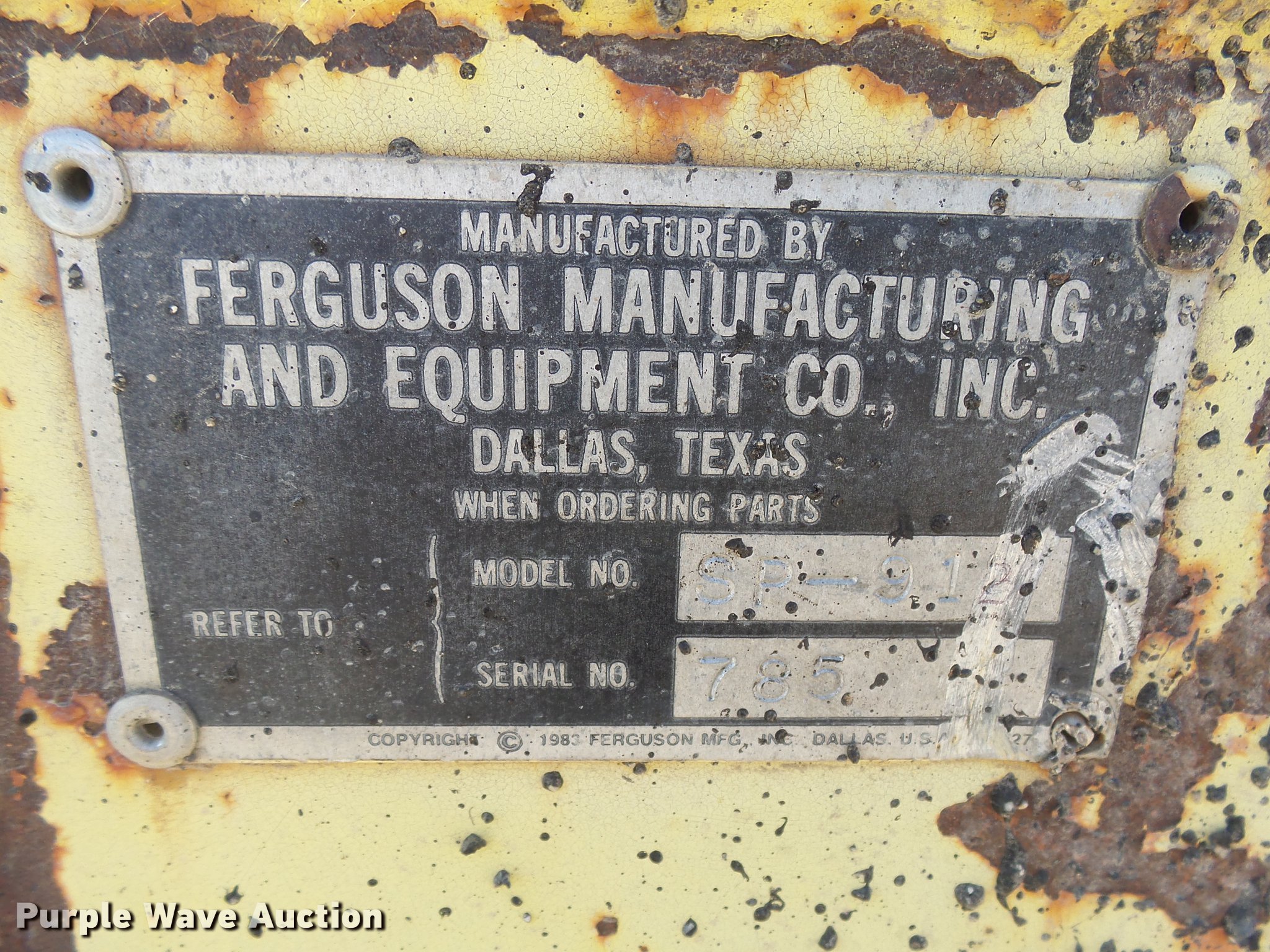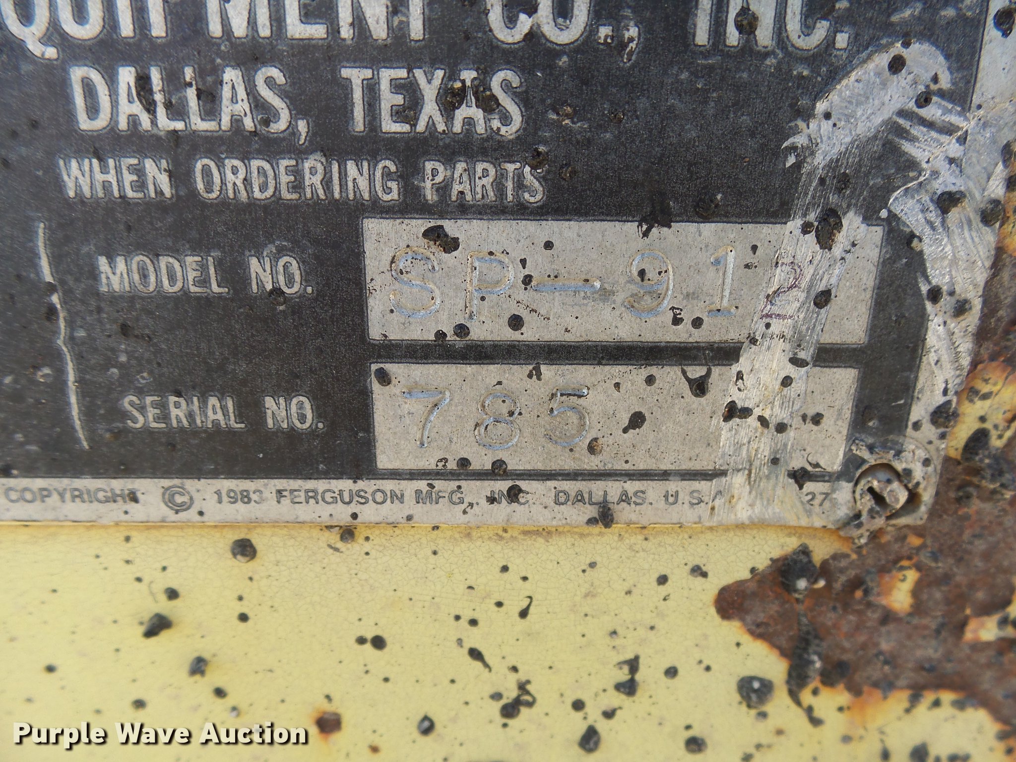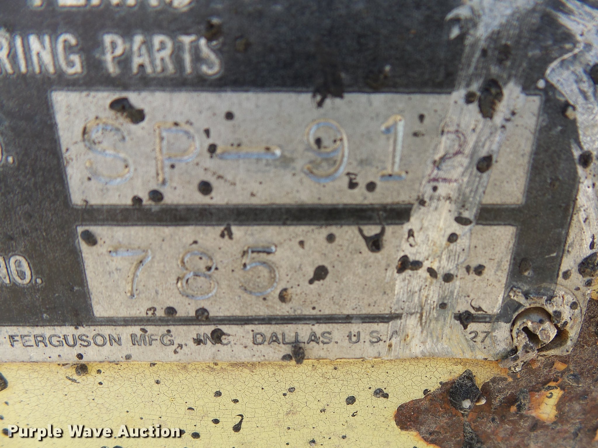 Purple Wave is selling a used Pneumatic Roller in South Dakota. This item is a Ferguson SP912 pneumatic roller with the following: 2,191 hours on meter, John Deere 4045 four cylinder diesel engine, 85 HP, Serial T04239D221607, Hydrostatic transmission, 4F-2R gears, OROPS, Suspension seat, Work lights, 170"L x 67"W, (9) 8.5/90-15K tires, Two tires are not foam filled, 8,900 lbs. base operating weight, Serial 18450