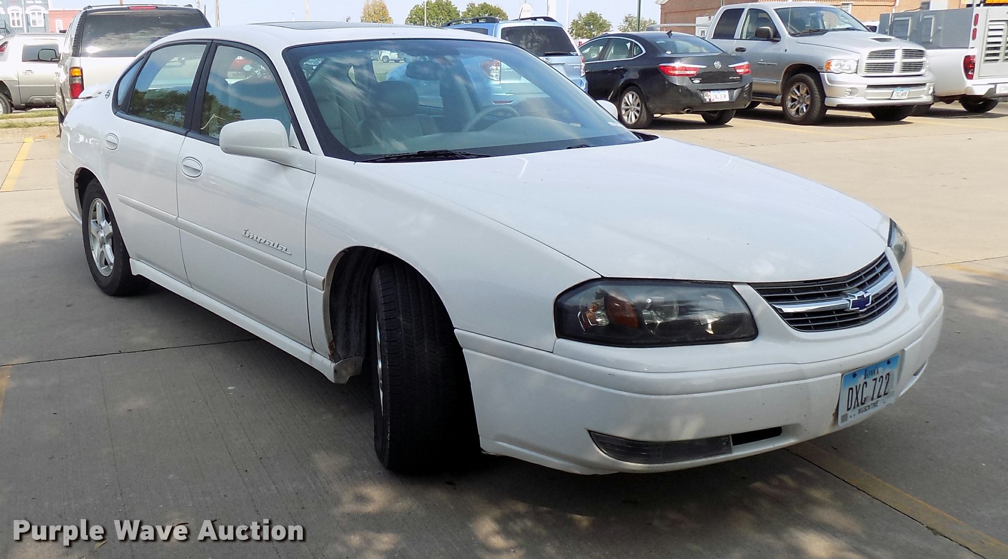 Purple Wave is selling a used Passenger Vehicle in Iowa. This item is a 2004 Chevrolet Impala with the following: 111,456 miles on odometer, 3.8L V6 OHV 12V gas engine, Automatic transmission, AC and heat, Tilt, Cruise, AM/FM/CD/cassette, Power windows, locks, mirrors, and seat, Vinyl interior, Sunroof, 225/60R16 tires, Unit# 712