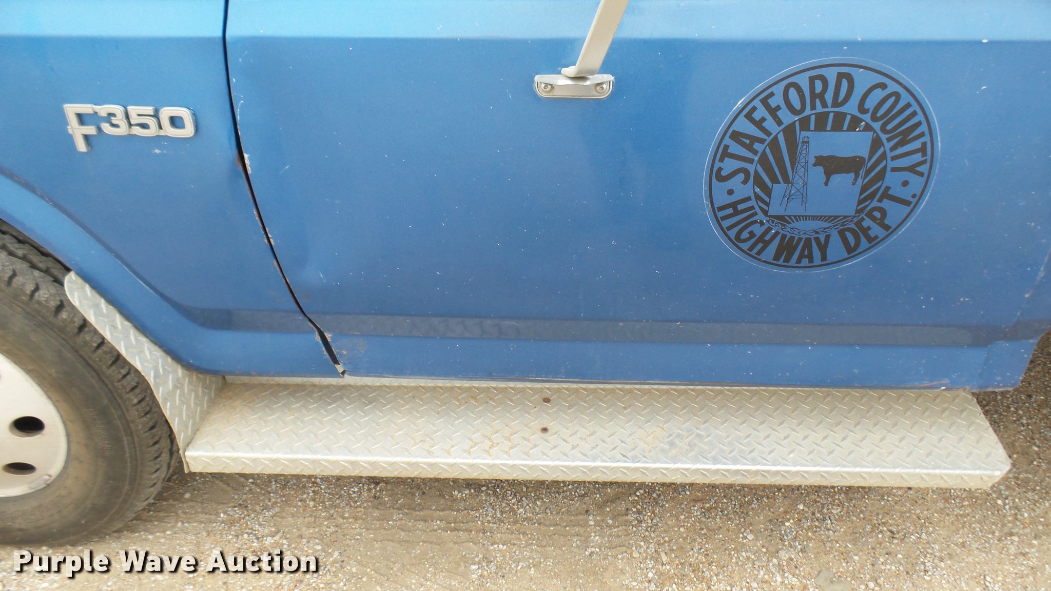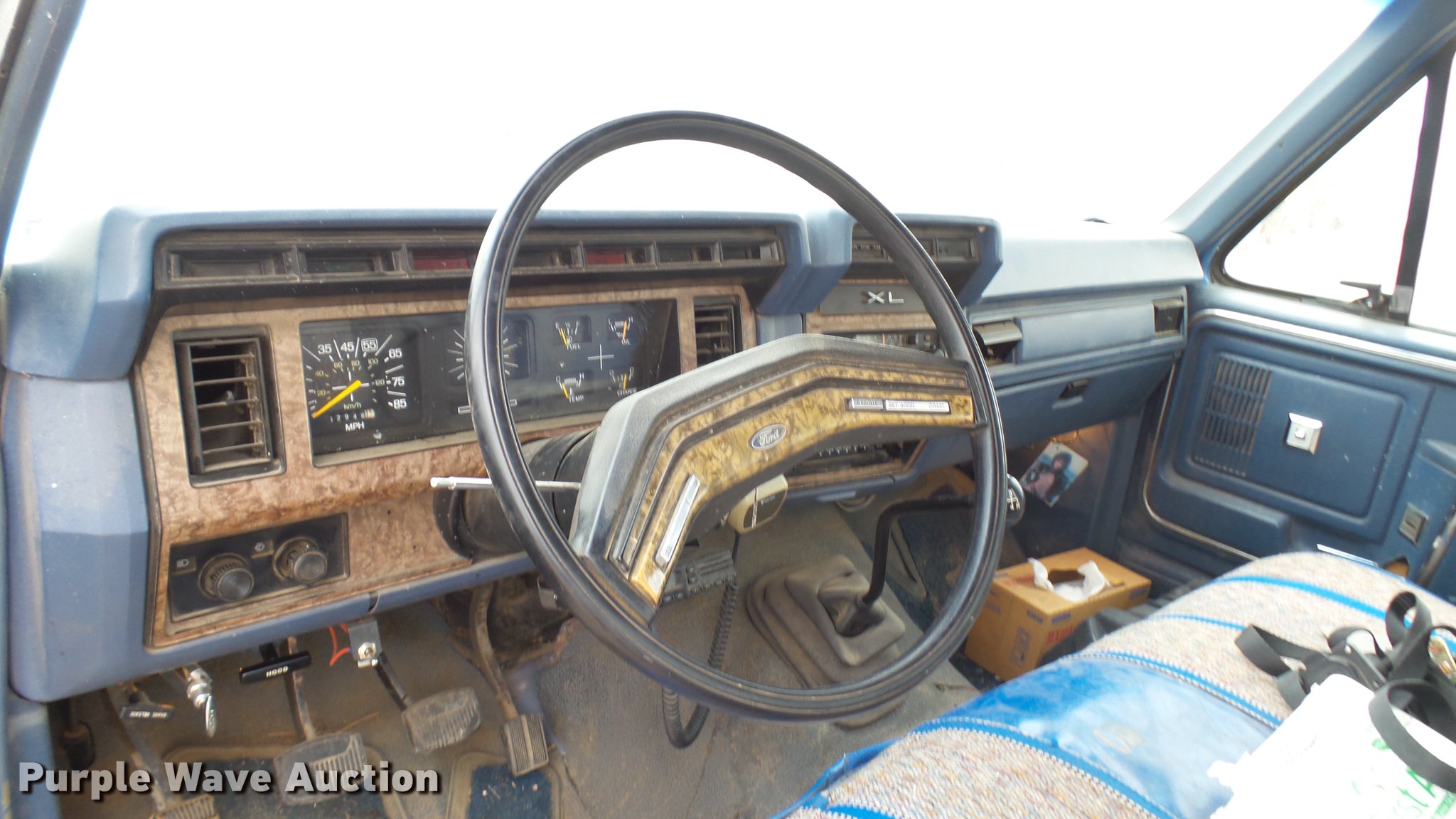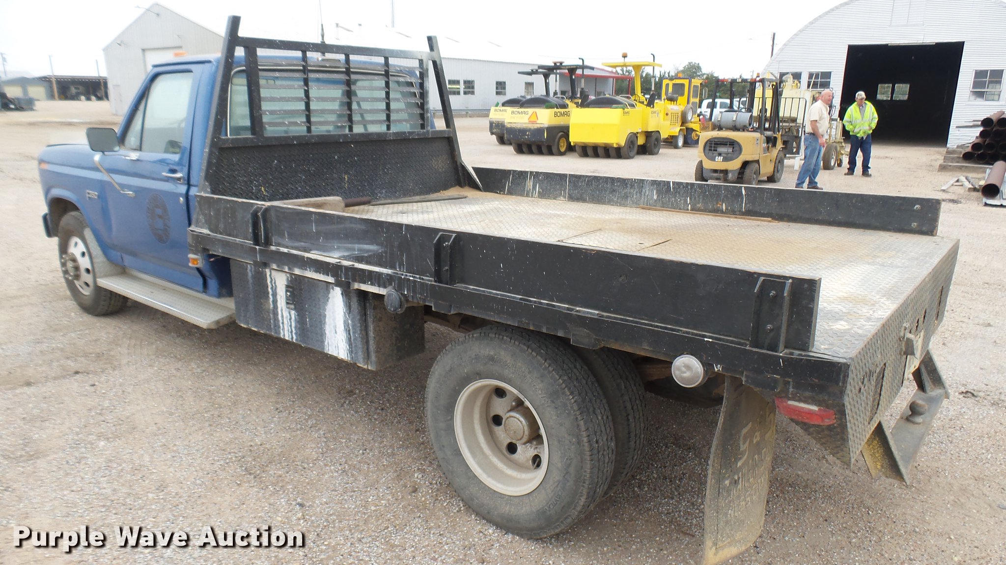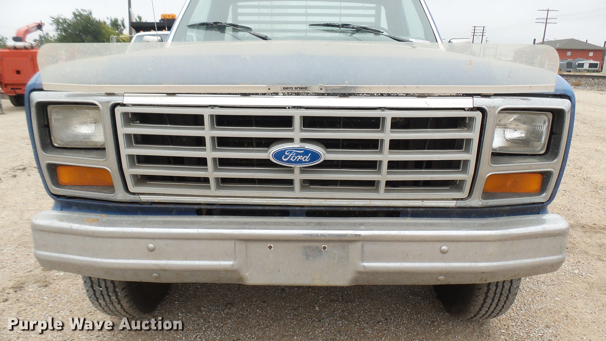 Purple Wave is selling a used 3/4 or 1 Ton Pickup or Van in Kansas. This item is a 1985 Ford F350 flatbed pickup truck with the following: 52,946 miles on odometer, Actual mileage unknown, 7.5L V8 OHV 16V gas engine, Four speed manual transmission, AC and heat, AM/FM, Power windows and locks, Vinyl interior, Running boards, 10.5'L x 88"W flatbed, Gooseneck ball, Receiver hitch, Trailer wiring, 7.50R16 tires