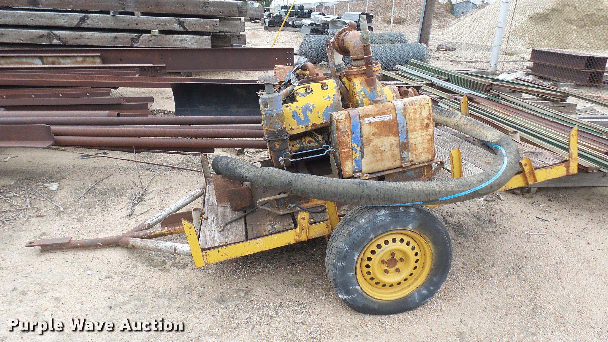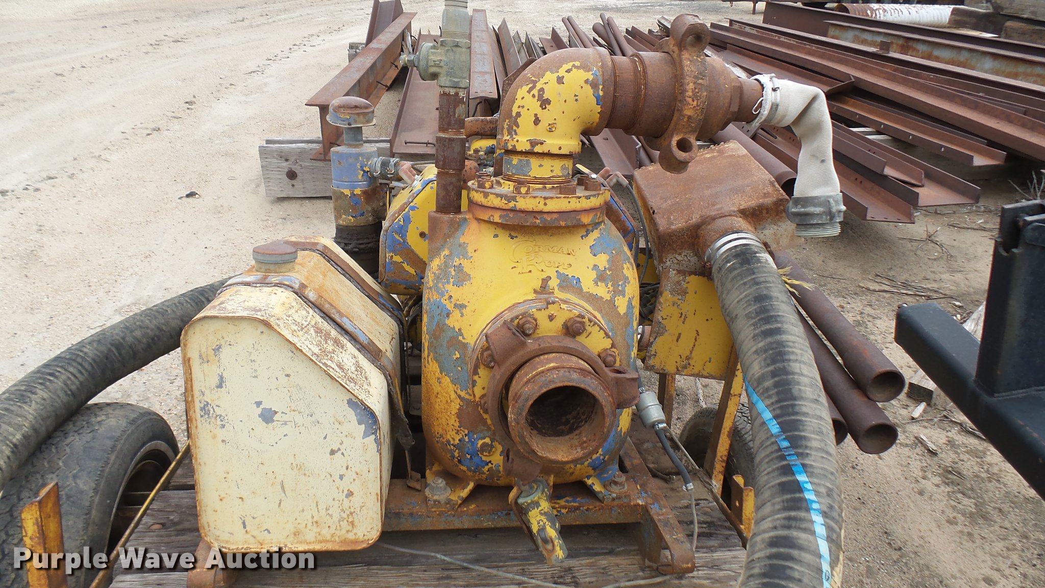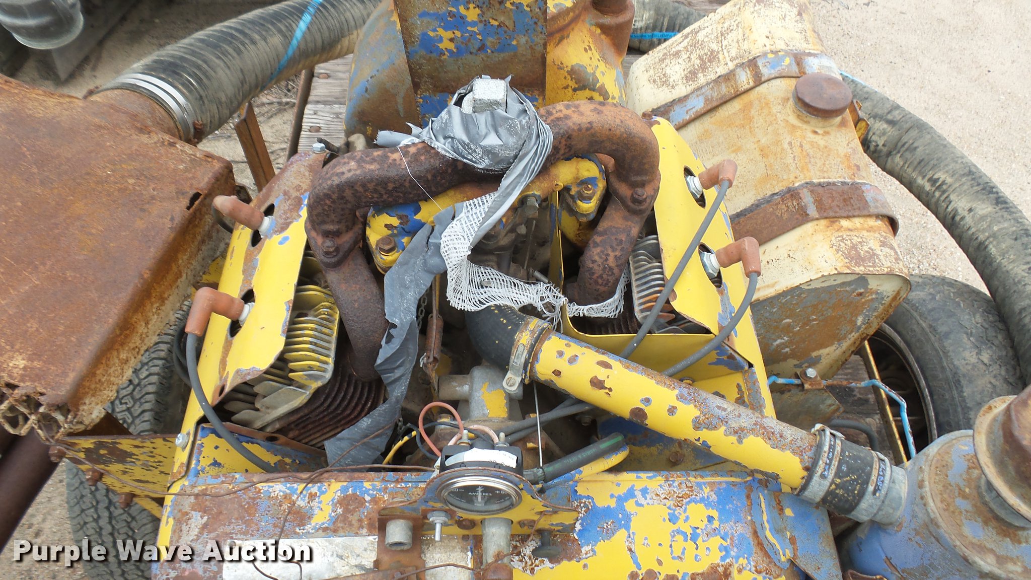 Purple Wave is selling a used Pump in Kansas. This item is a Gorman Rupp pump with the following: Wisconsin two cylinder gas engine, 4" outlet, Trailer, 88"L x 46"W, Pin hitch, 195/75R14 tires, GVWR 800 lbs, Flat tires, Unknown operating condition