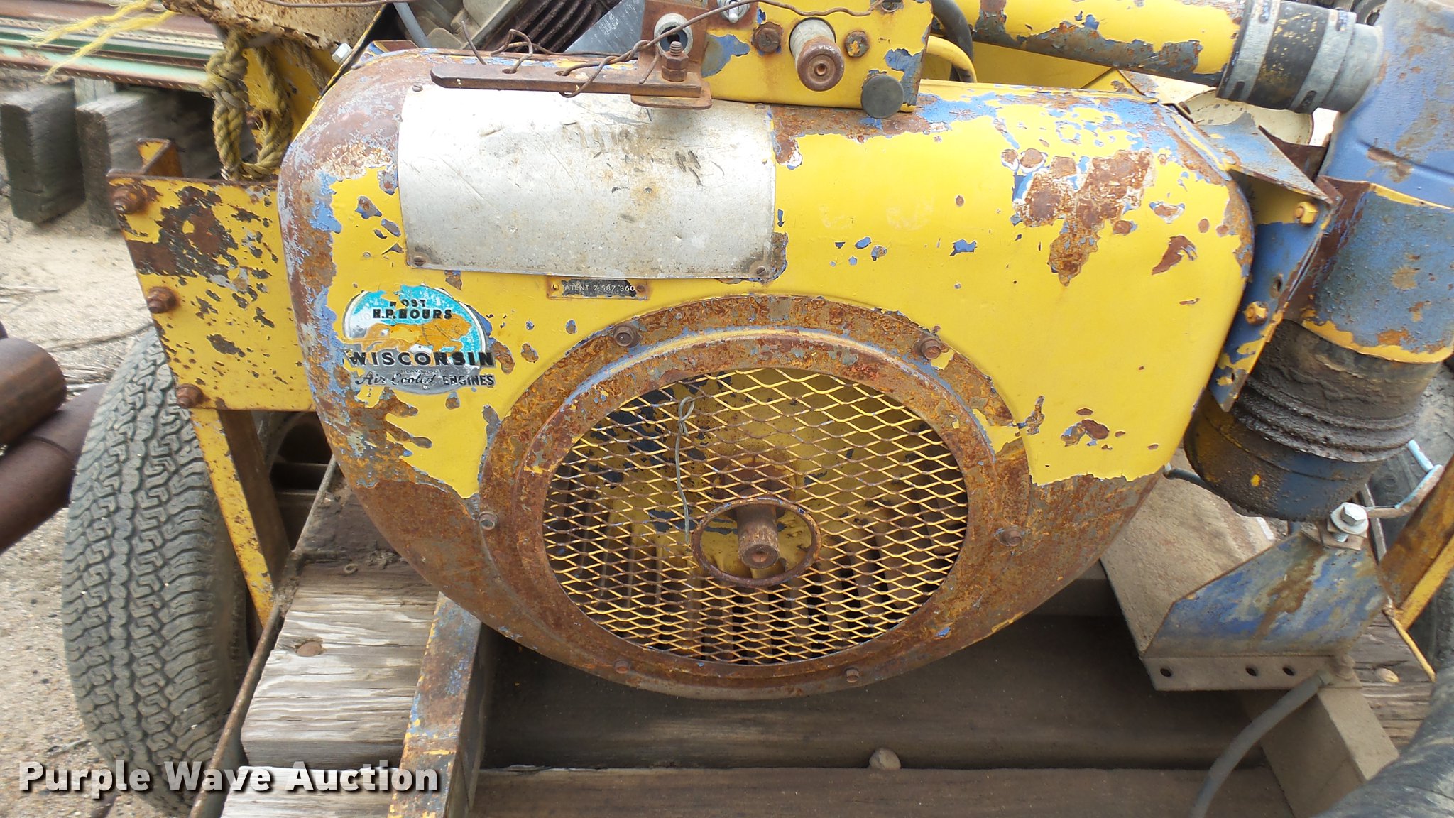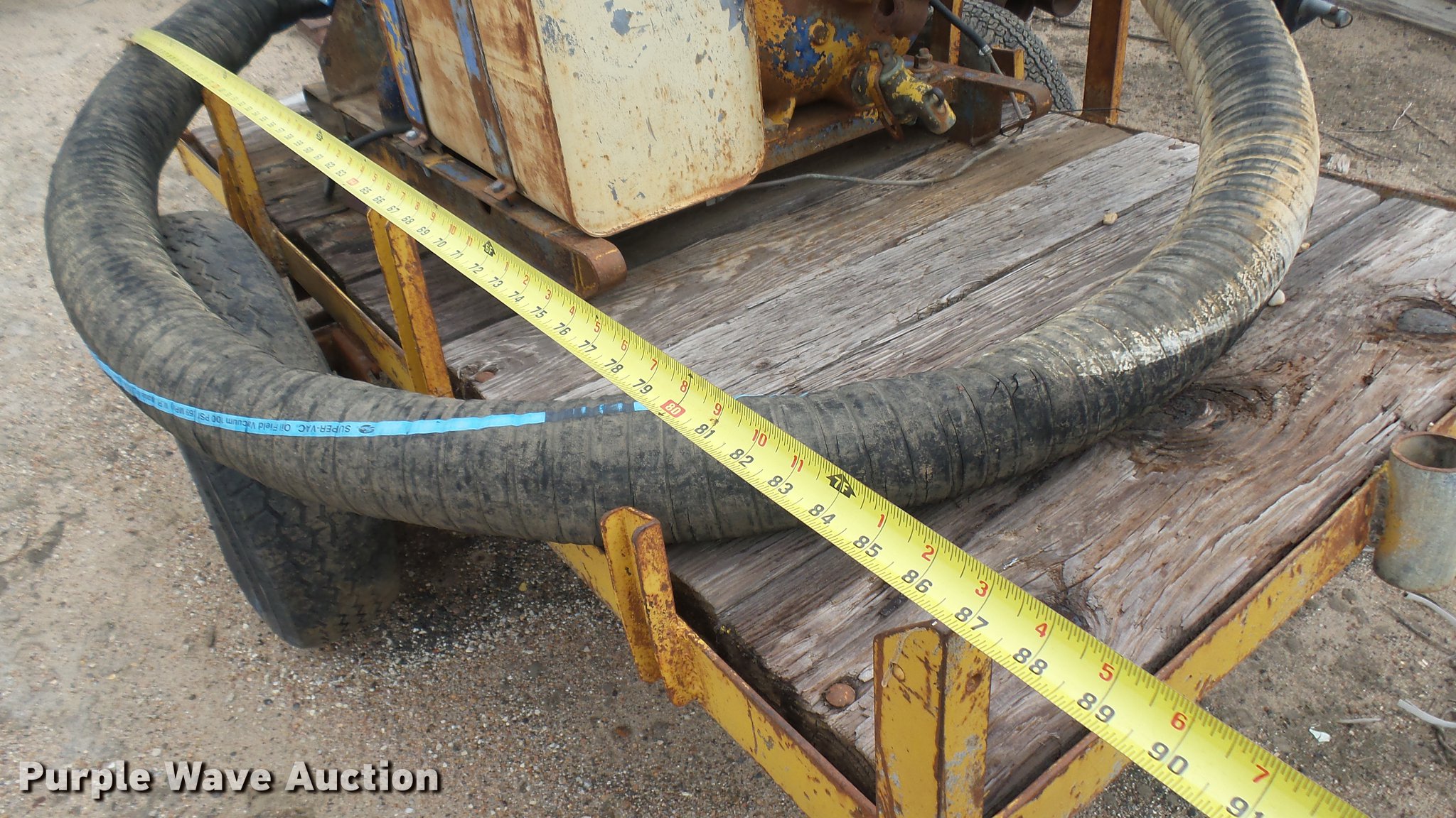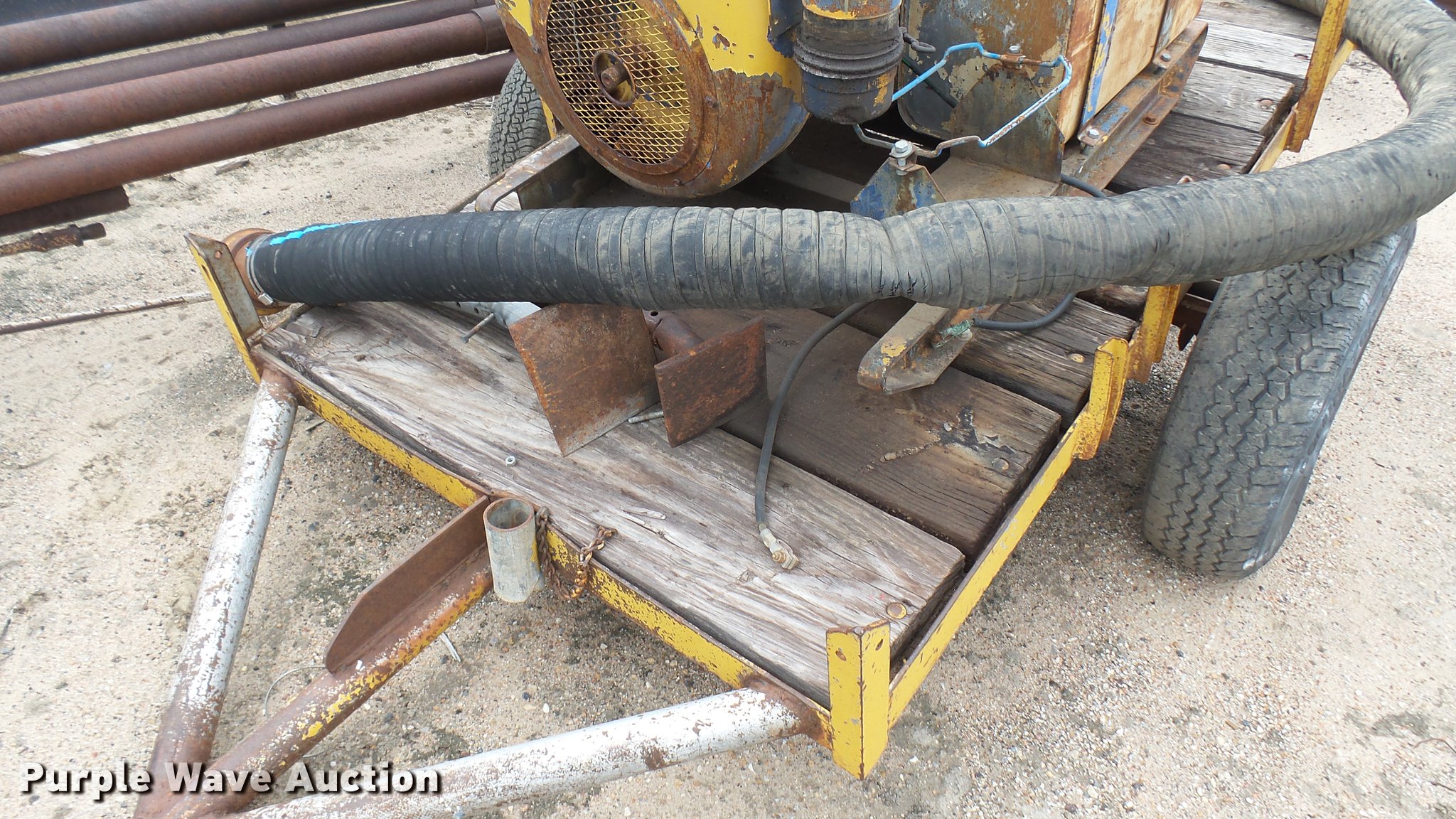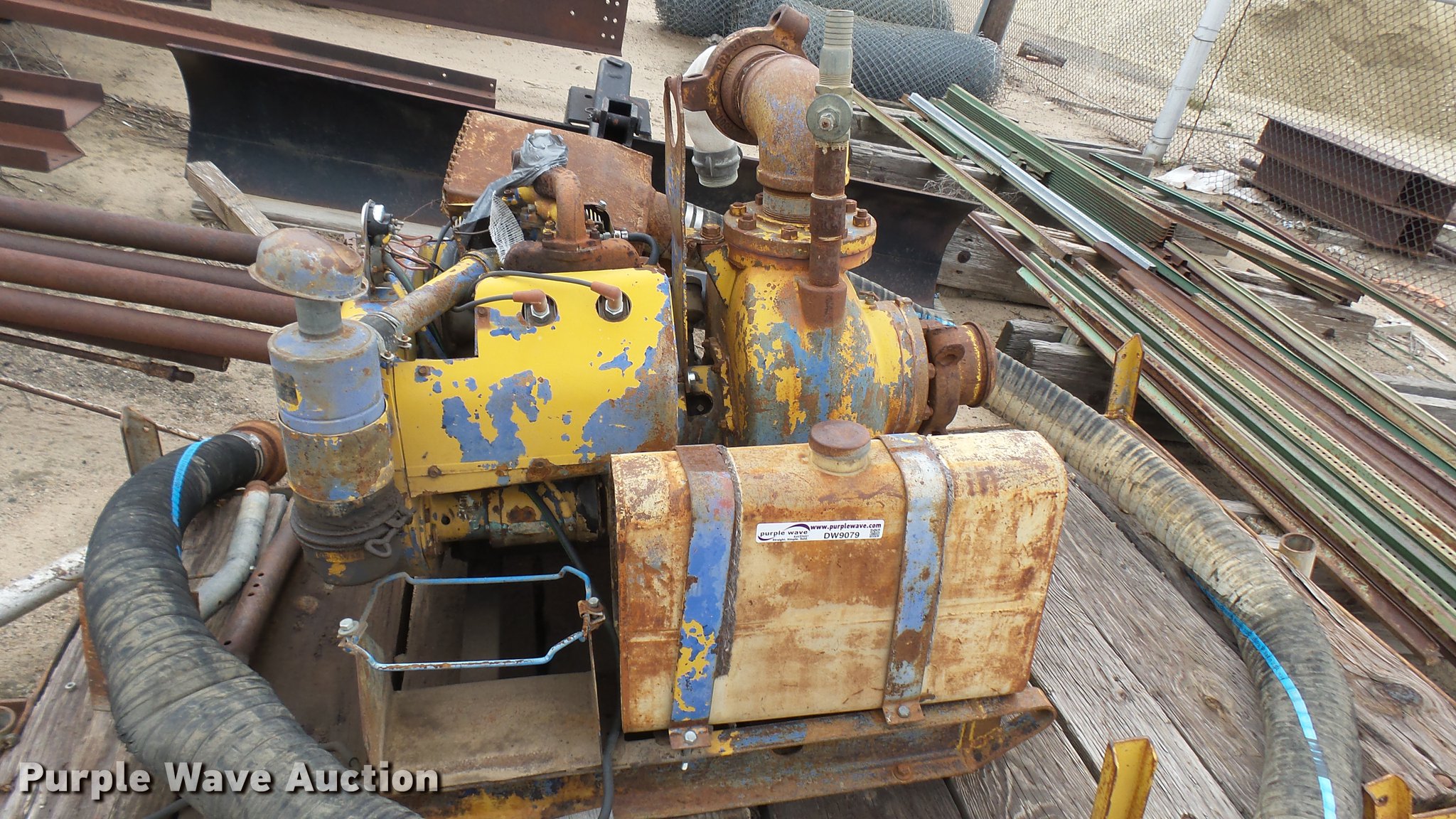 Purple Wave is selling a used Pump in Kansas. This item is a Gorman Rupp pump with the following: Wisconsin two cylinder gas engine, 4" outlet, Trailer, 88"L x 46"W, Pin hitch, 195/75R14 tires, GVWR 800 lbs, Flat tires, Unknown operating condition