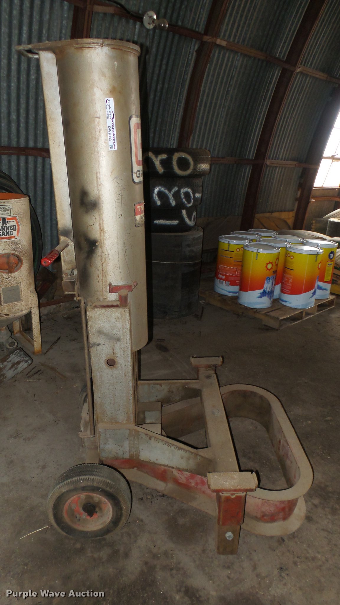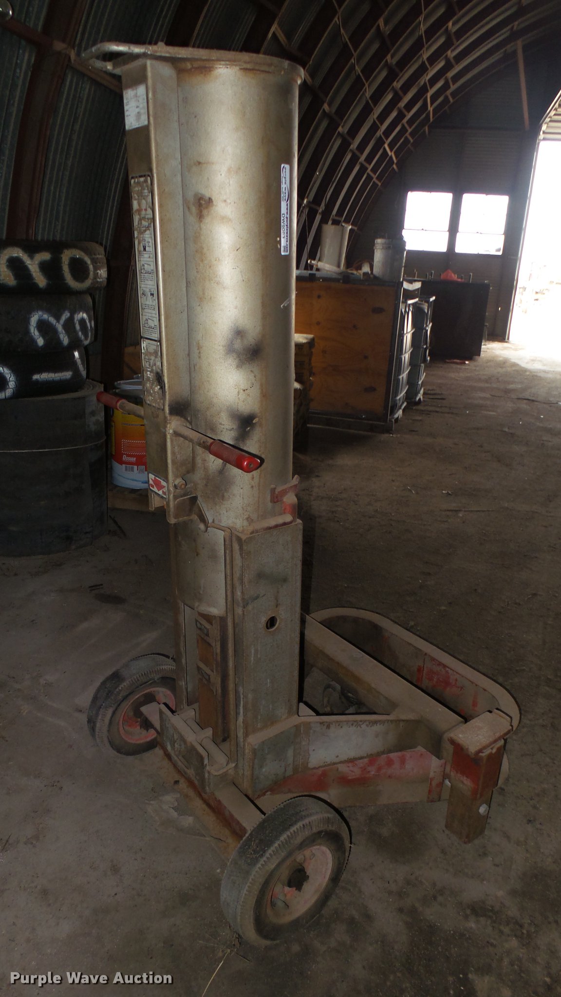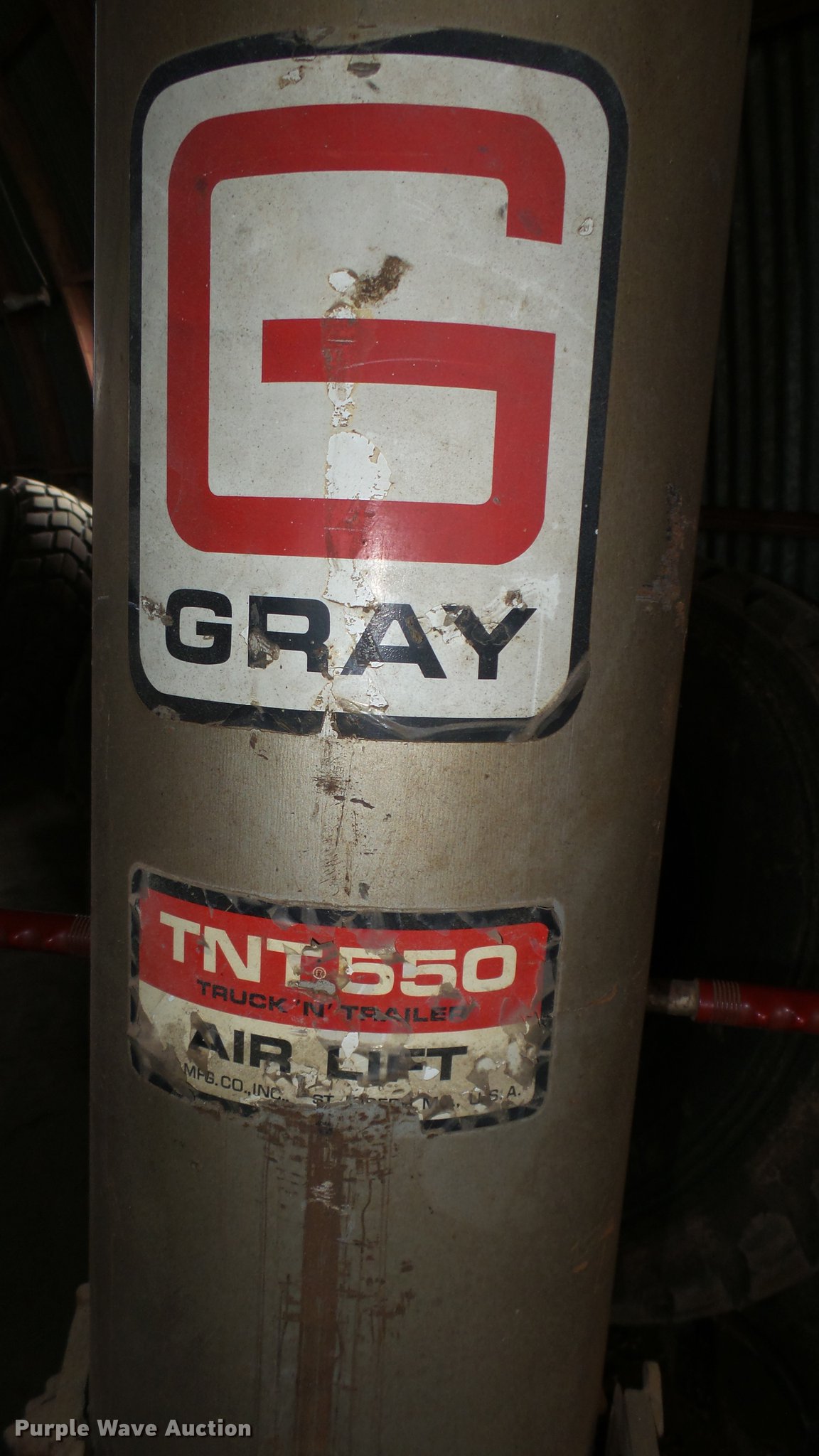 Purple Wave is selling a used Tools in Kansas. This item is a Gray TNT-550 pneumatic jack with the following: 36"W, Wheels