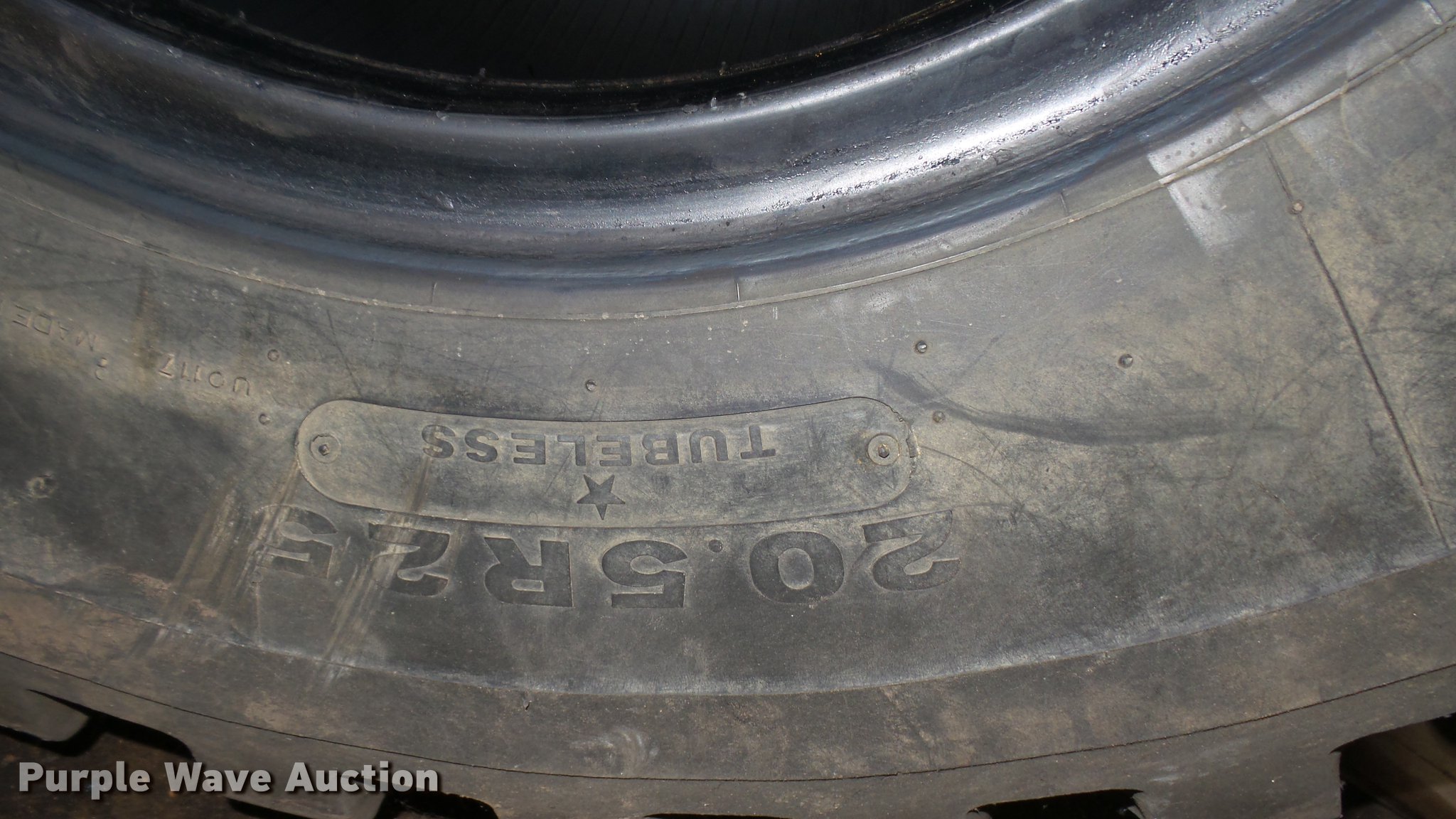 Purple Wave is selling a used Industrial Tires or Tracks in Kansas. This item is a (4) Bridgestone 20.5R25 tires with the following: (4) Bridgestone 20.5R25 tires. Stafford County. Saint John, KS 67576