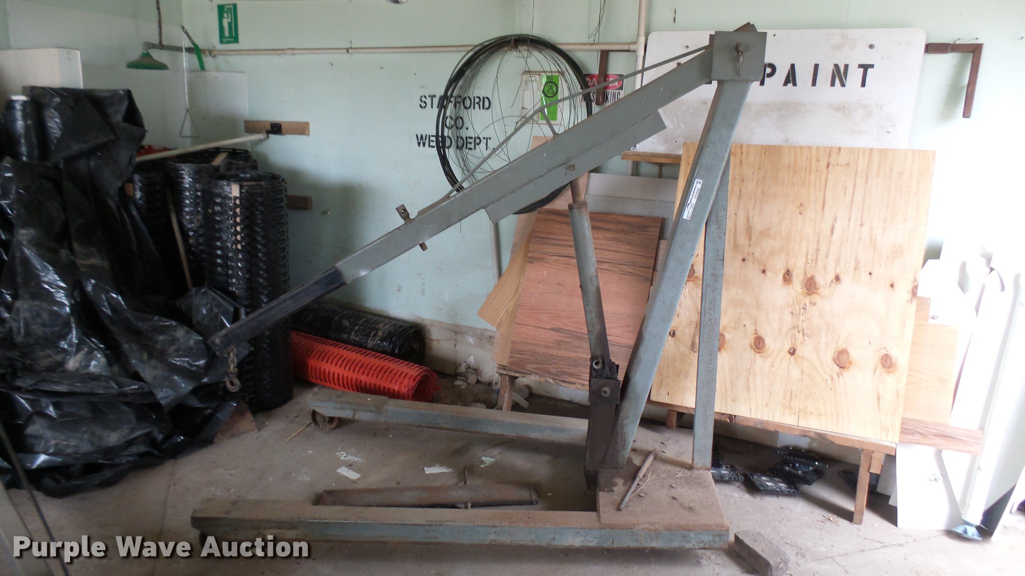 Purple Wave is selling a used Tools in Kansas. This item is a Engine hoist with the following: 8' boom, Hydraulic operation, Wheels