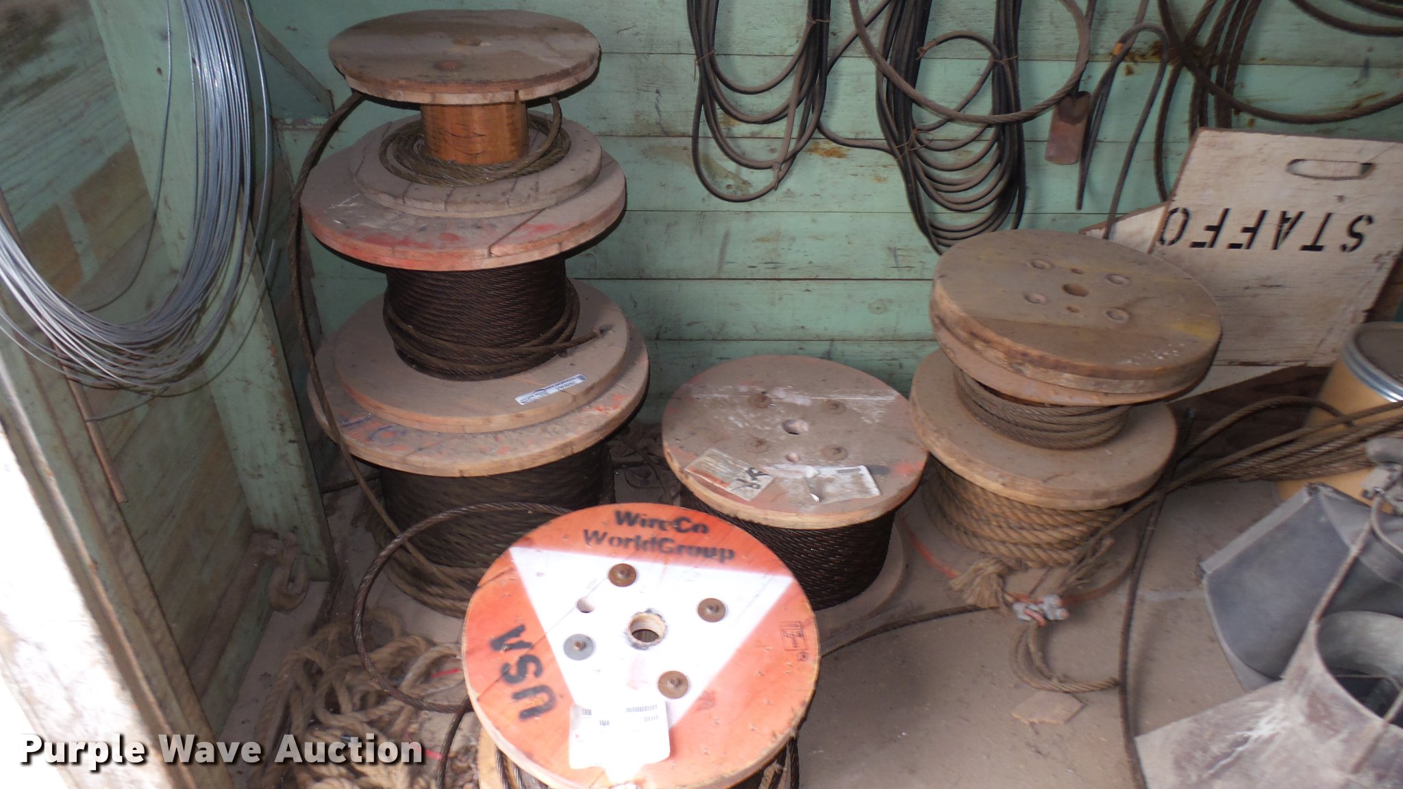 Purple Wave is selling a used Lifting and Rigging in Kansas. This item is a (6) rolls of steel cable with the following: Assorted lengths and sizes, Rope not included