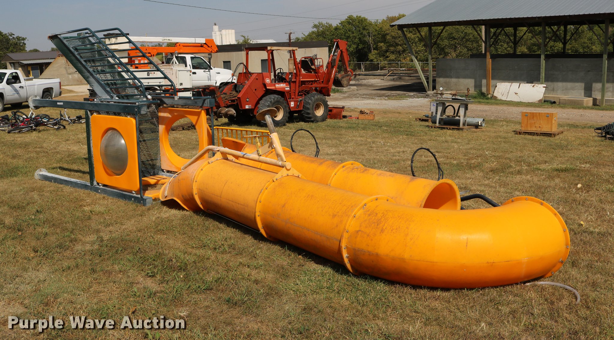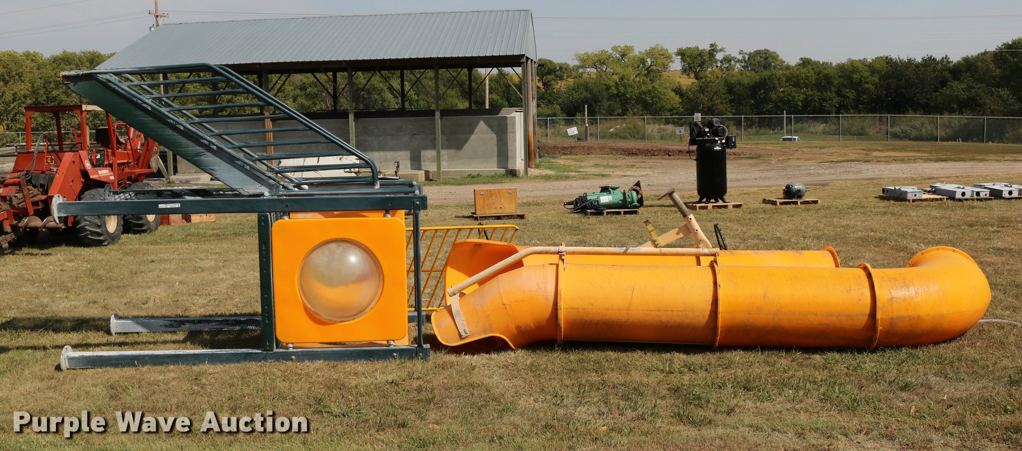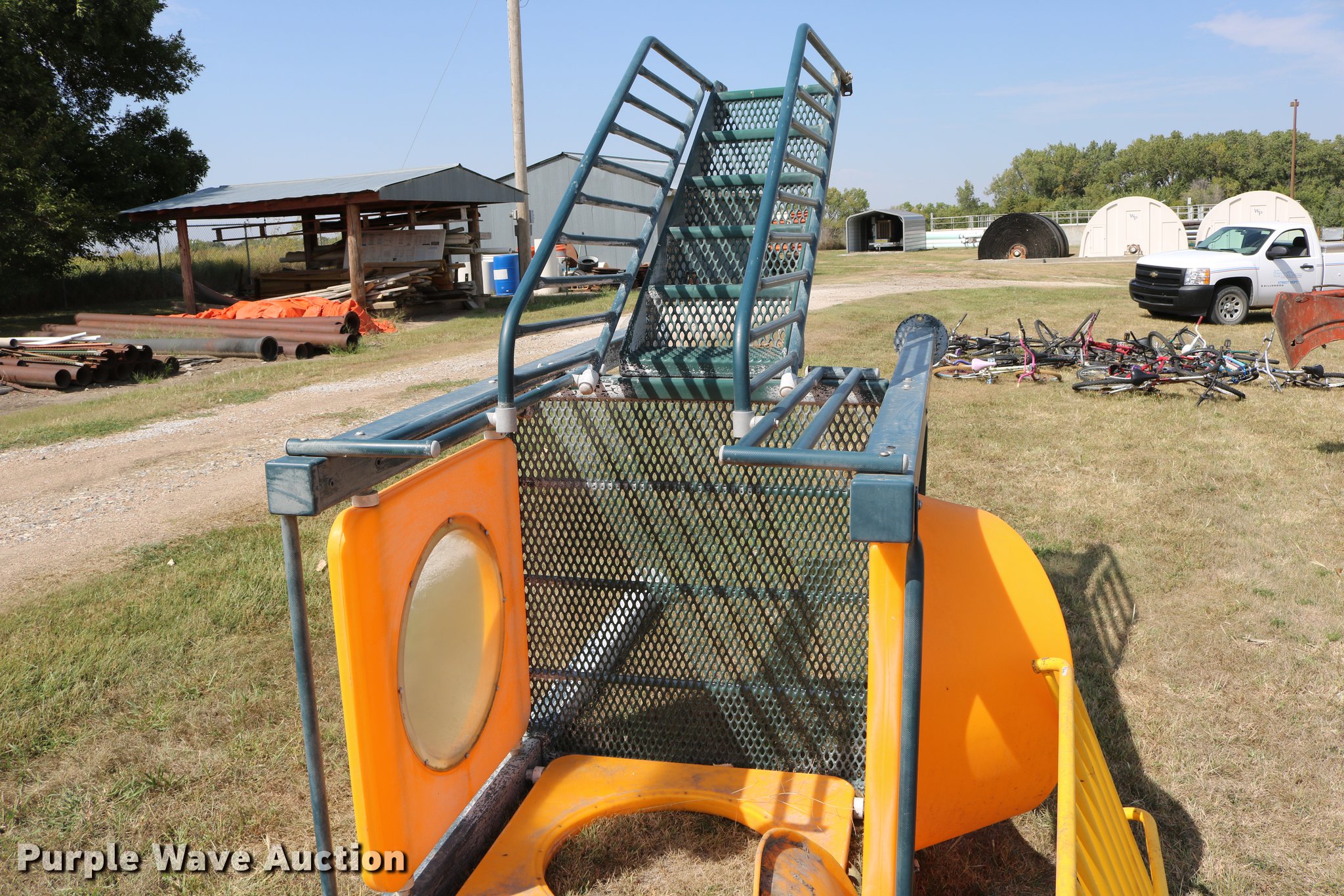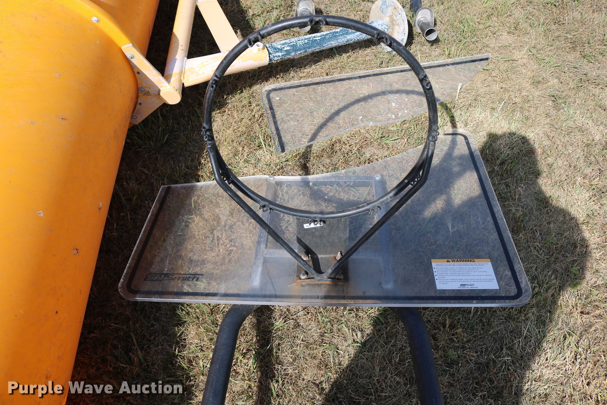 Purple Wave is selling a used Sporting Goods in Kansas. This item is a Sporting goods with the following: Water slide, Books may be picked up at city office, (2) basketball goals, One backboard broken