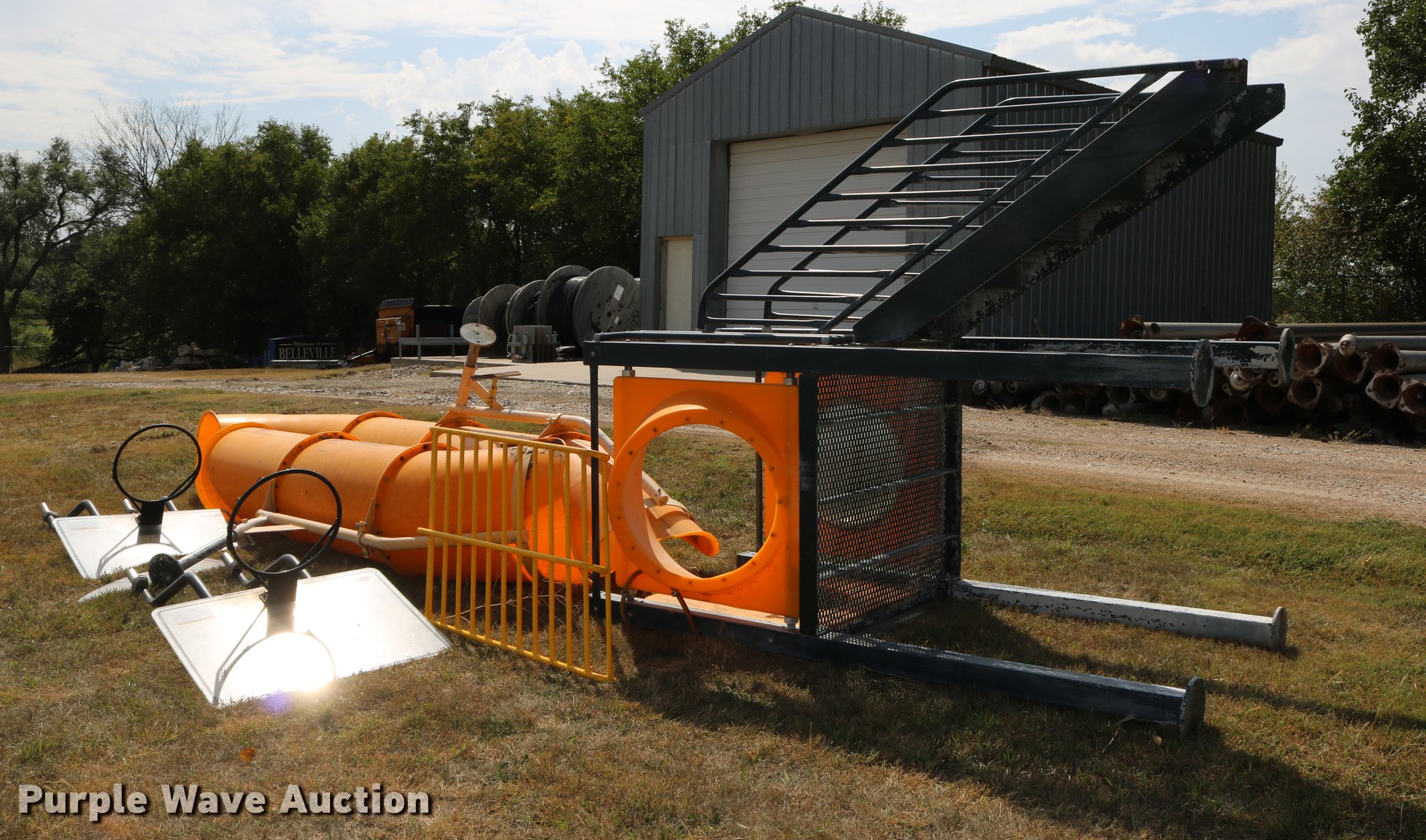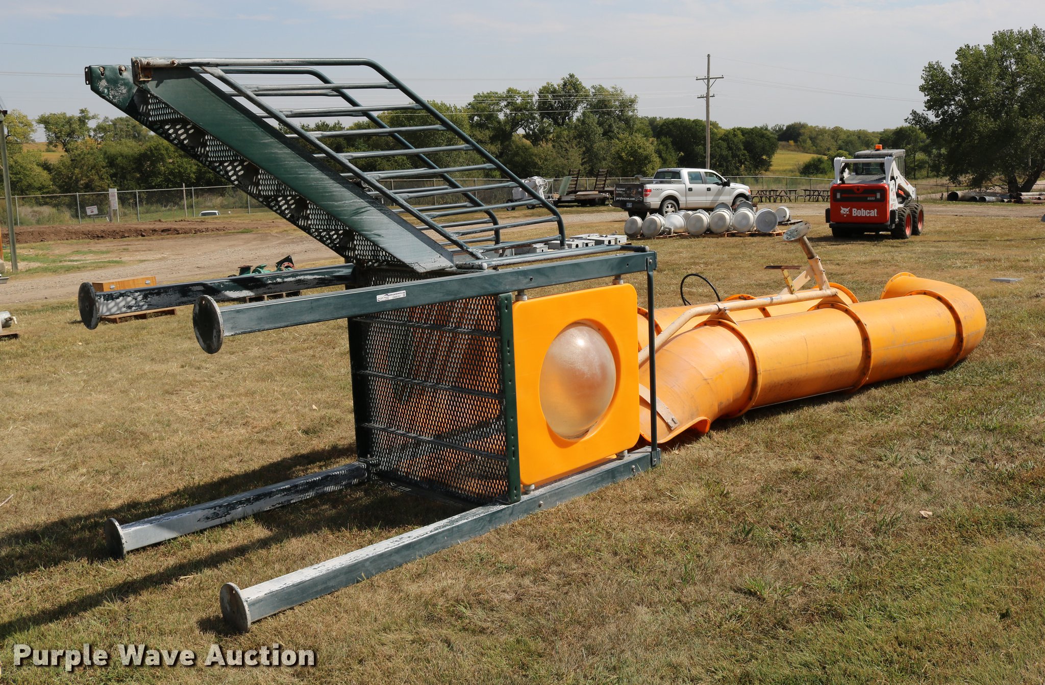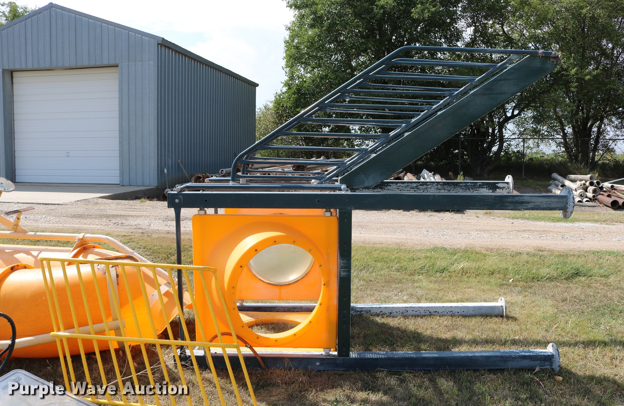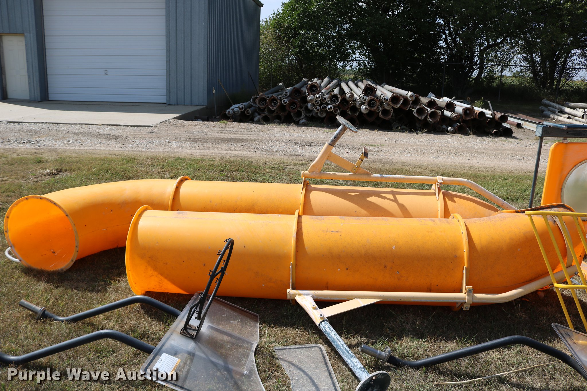 Purple Wave is selling a used Sporting Goods in Kansas. This item is a Sporting goods with the following: Water slide, Books may be picked up at city office, (2) basketball goals, One backboard broken