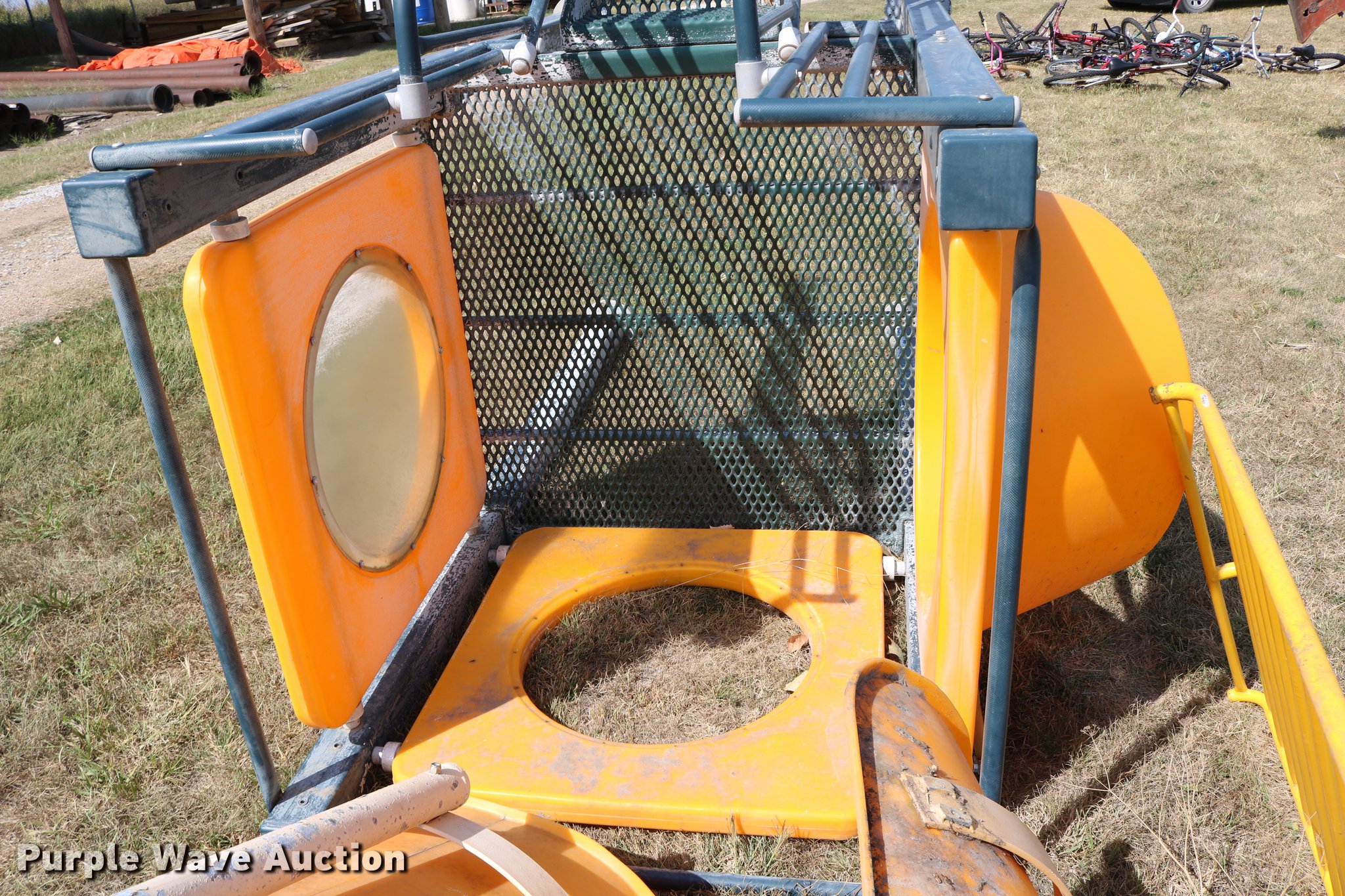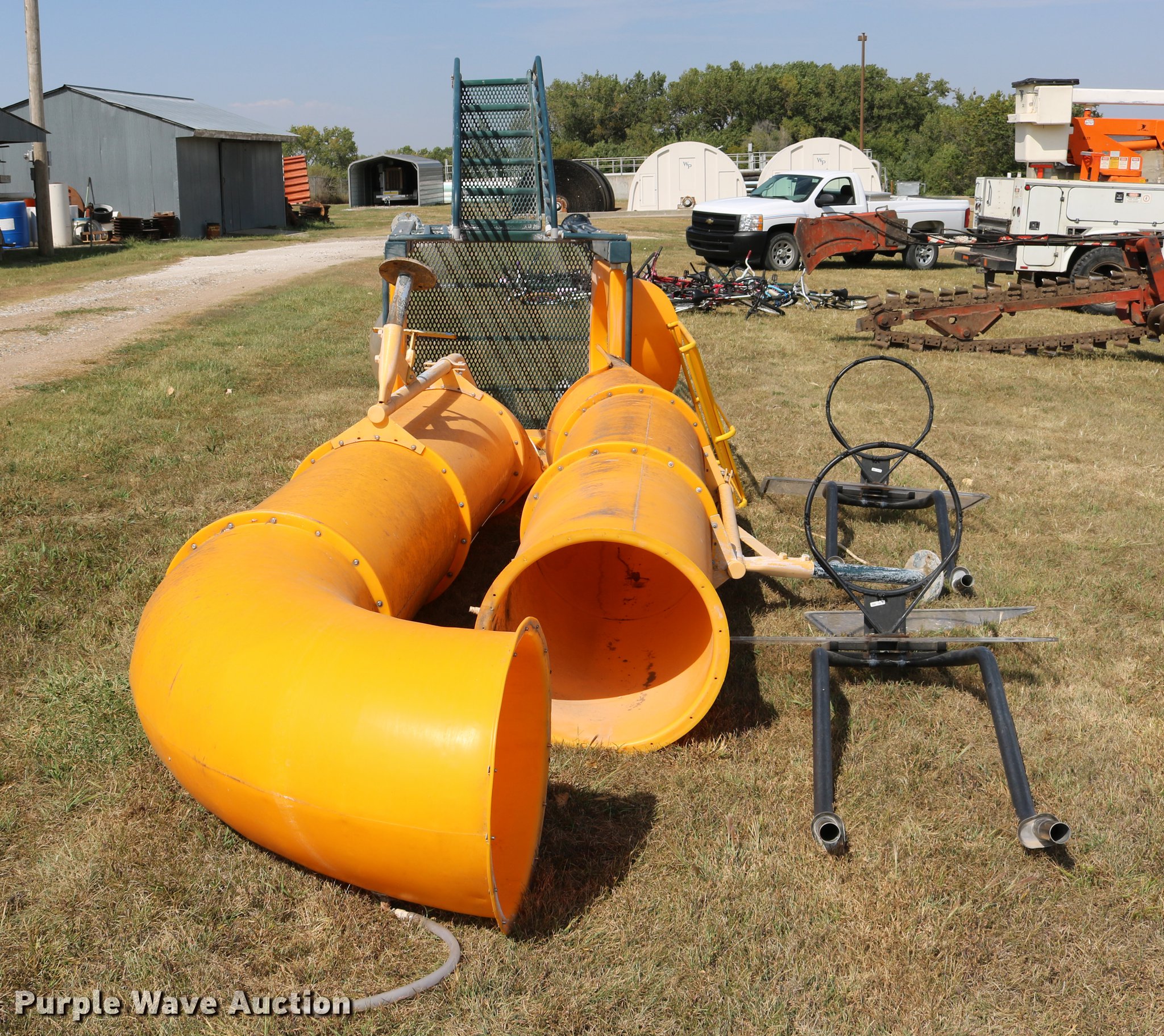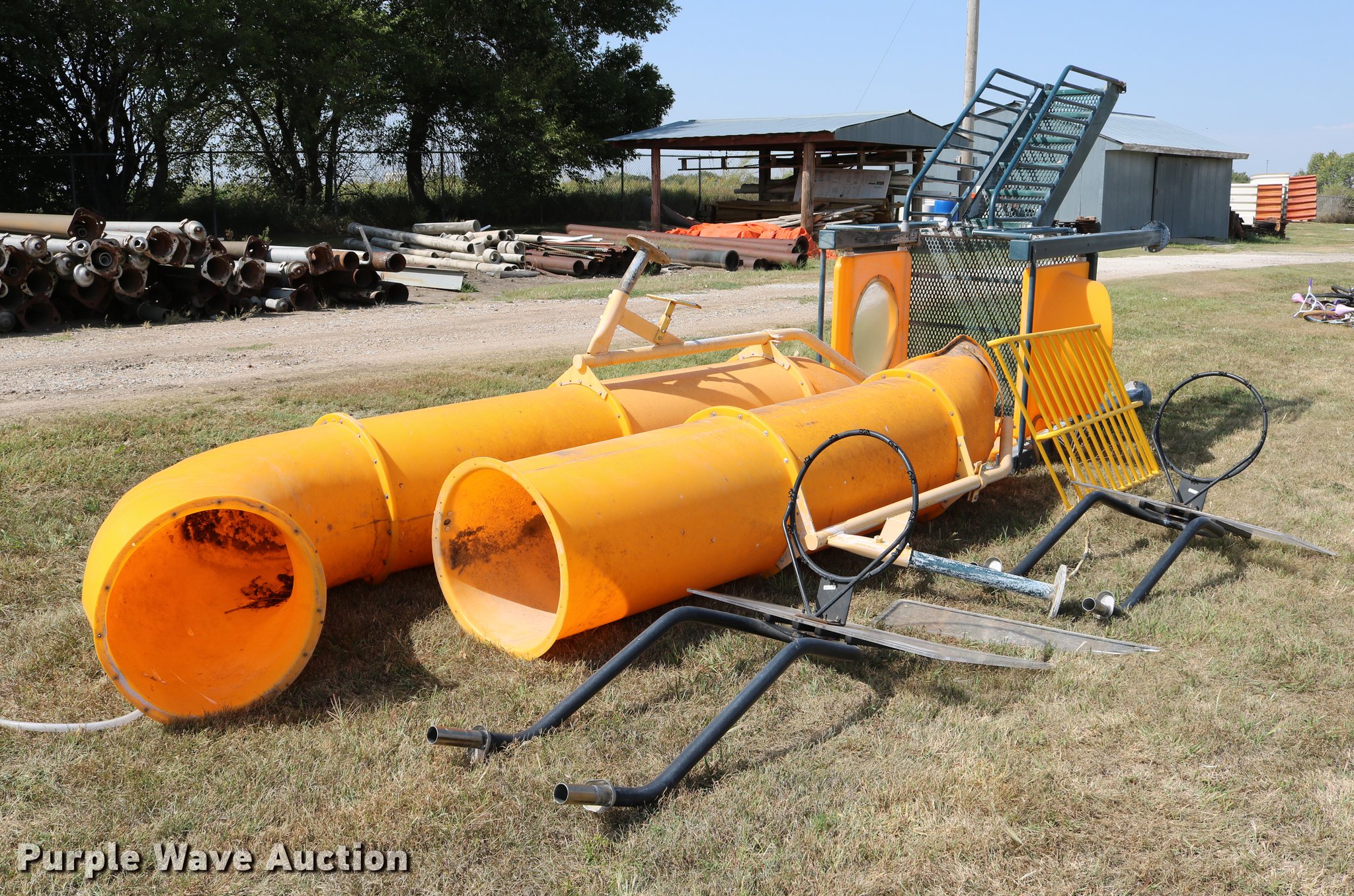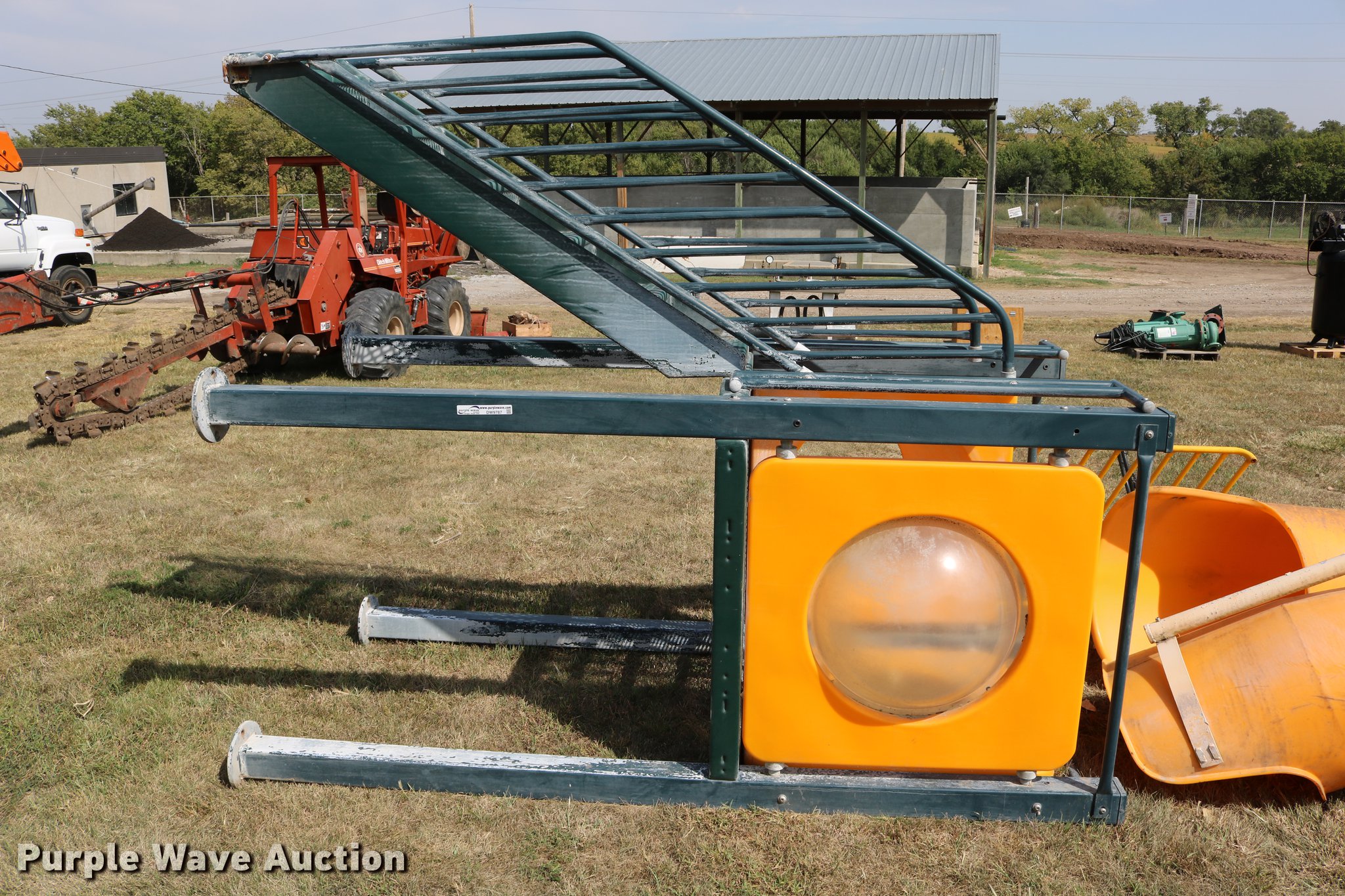 Purple Wave is selling a used Sporting Goods in Kansas. This item is a Sporting goods with the following: Water slide, Books may be picked up at city office, (2) basketball goals, One backboard broken