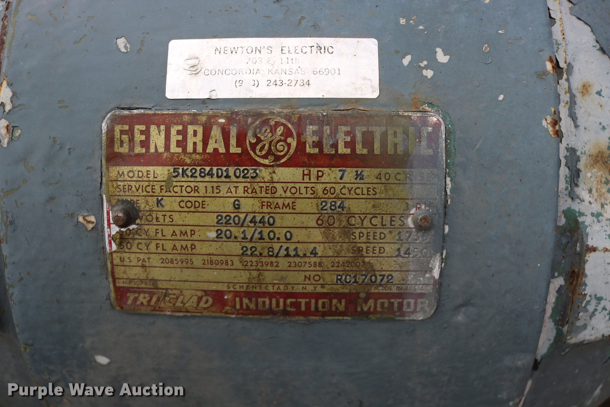 Purple Wave is selling a used Electric Motor in Kansas. This item is a General Electric 5K284D1023 electric motor with the following: 7.5 HP, 220/240V, No. RC17072, Non-operational unit