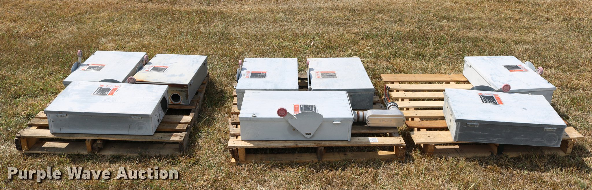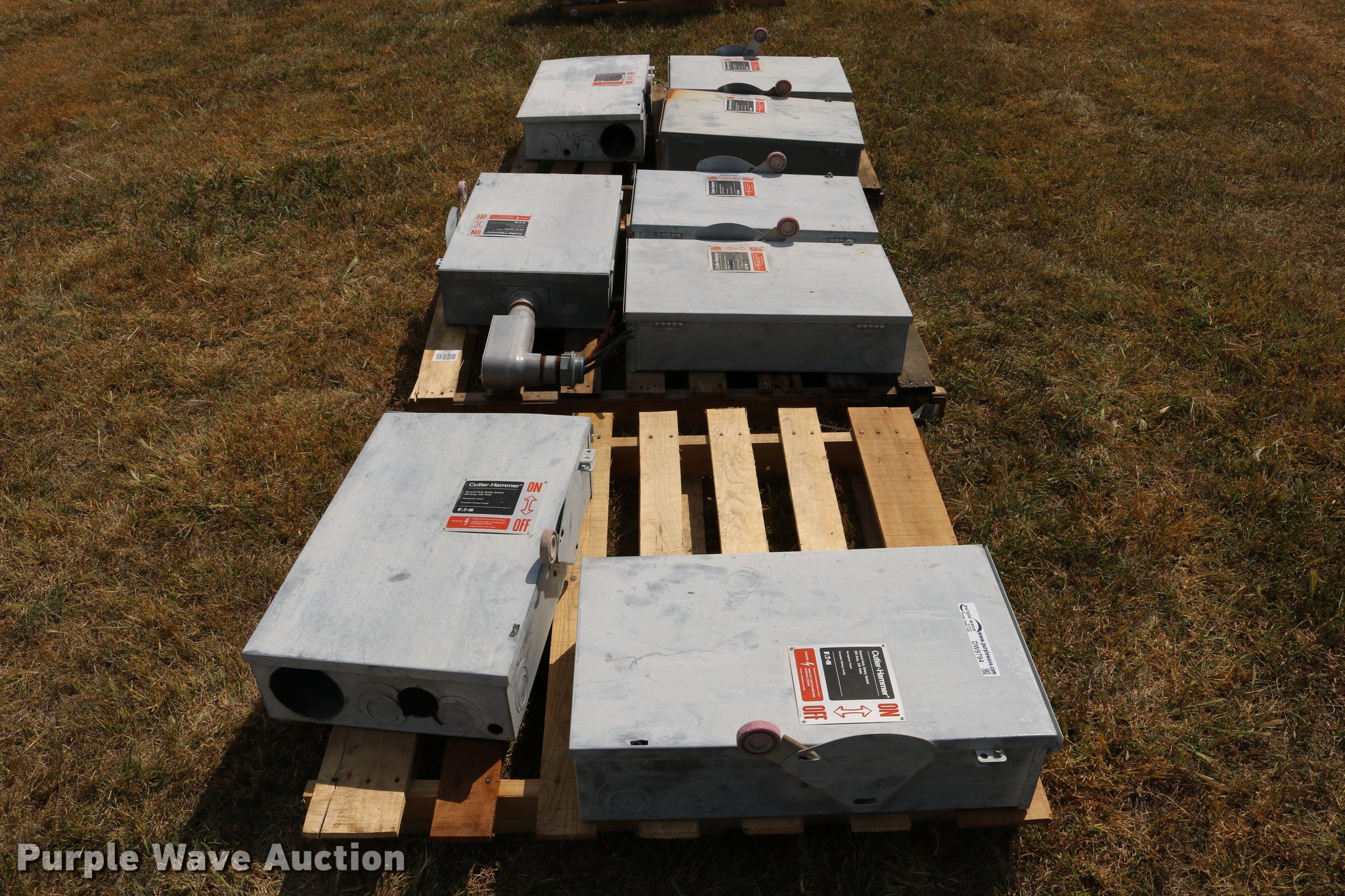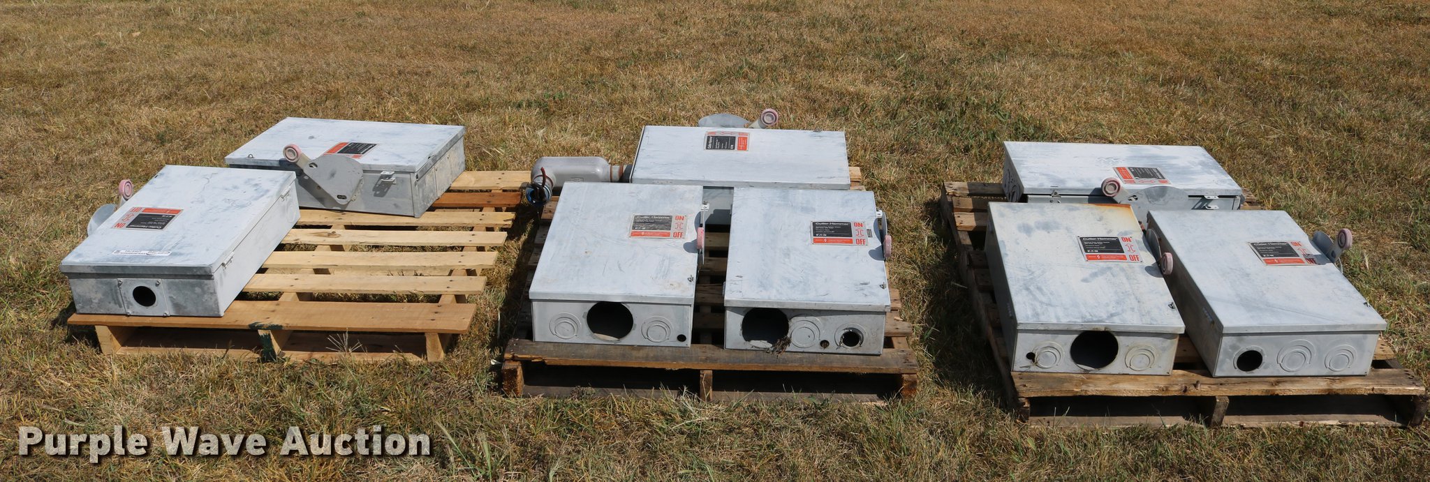 Purple Wave is selling a used Building Materials in Kansas. This item is a (8) Cutler-Hammer disconnect boxes with the following: 240V