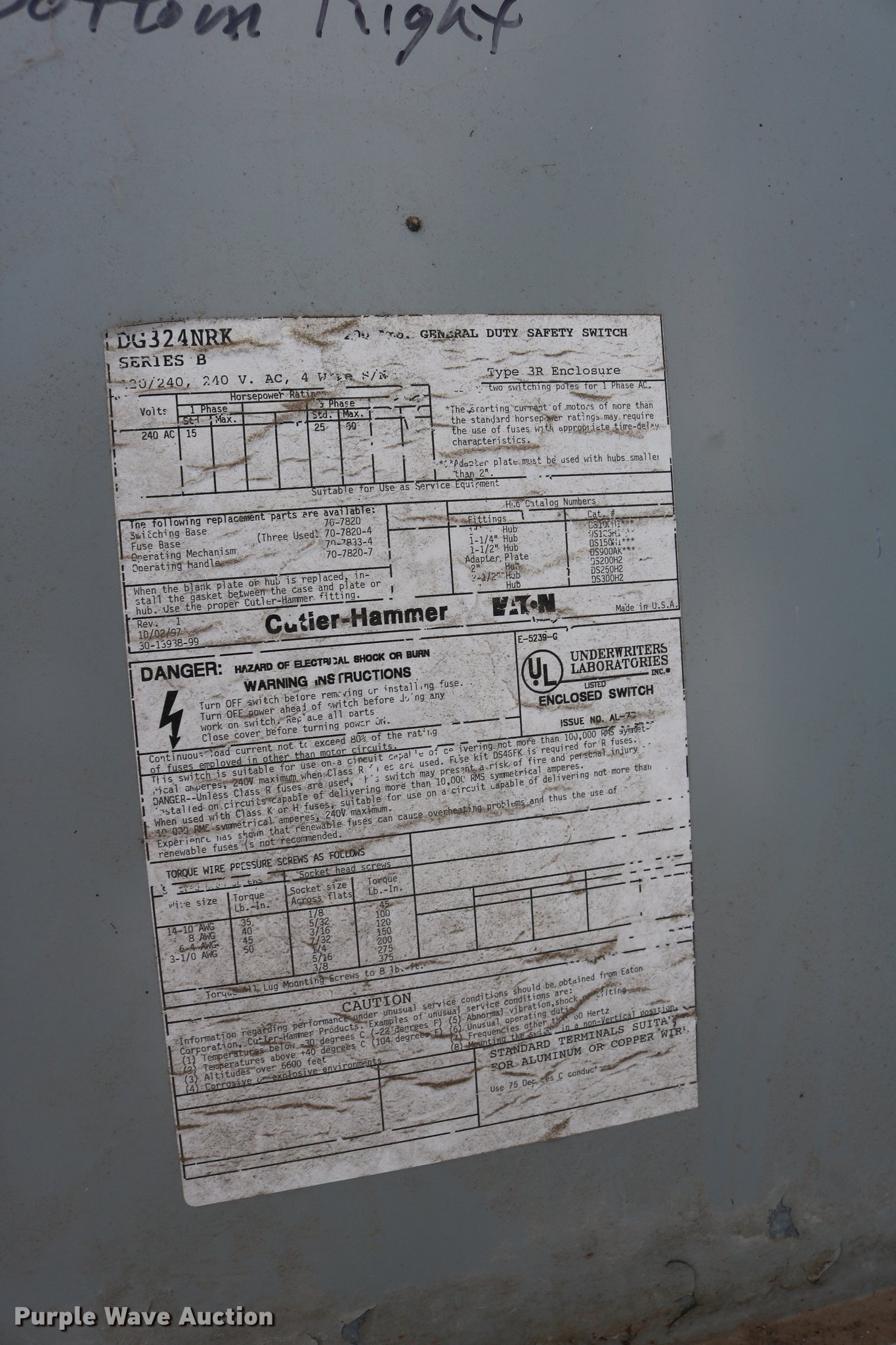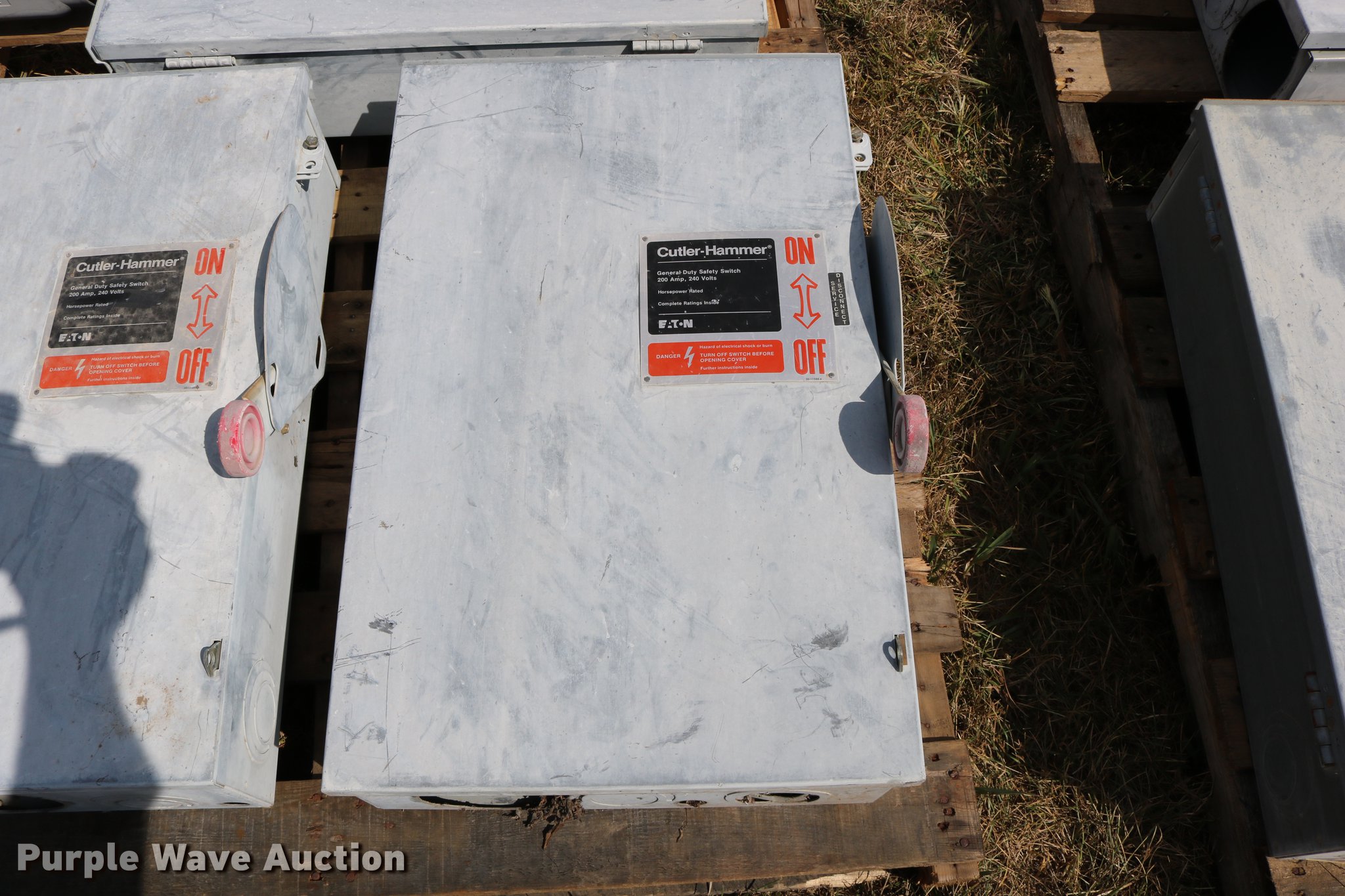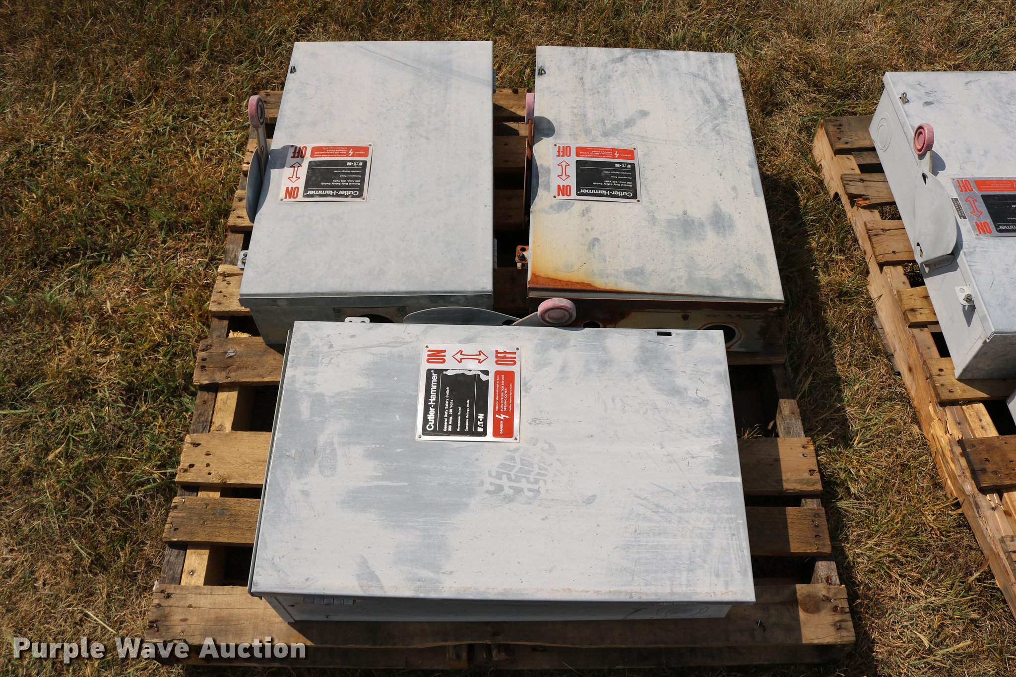 Purple Wave is selling a used Building Materials in Kansas. This item is a (8) Cutler-Hammer disconnect boxes with the following: 240V