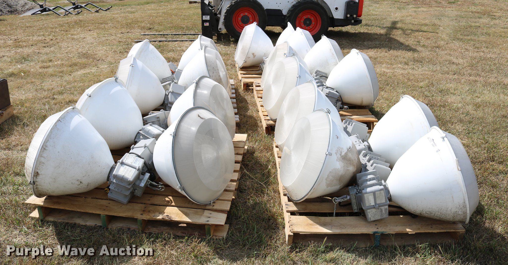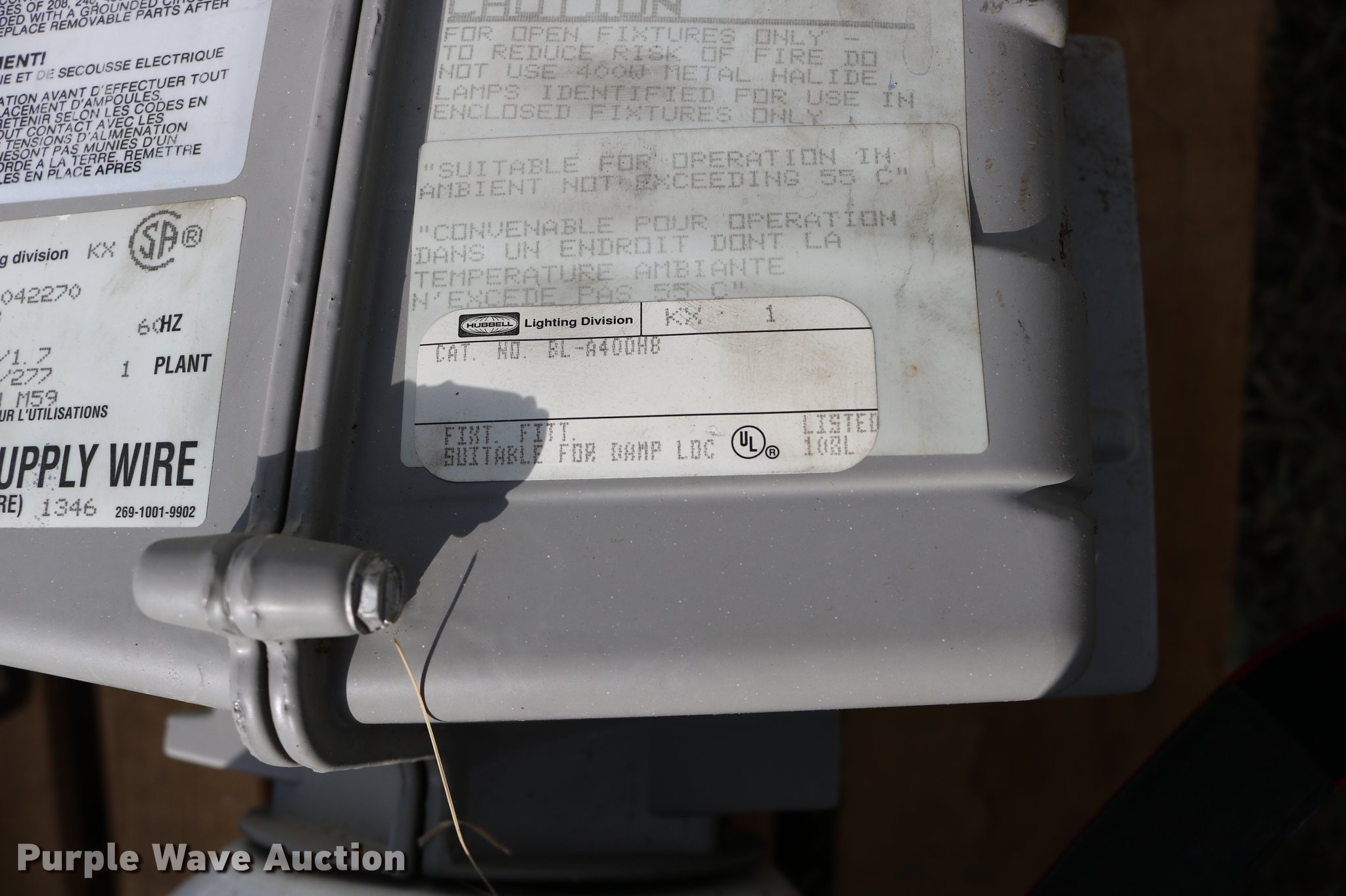 Purple Wave is selling a used Building Materials in Kansas. This item is a (18) Hubbel ballfield lights with the following: PLA ballast, 400 watt, Catalog no. BL-A400HB, One additional light