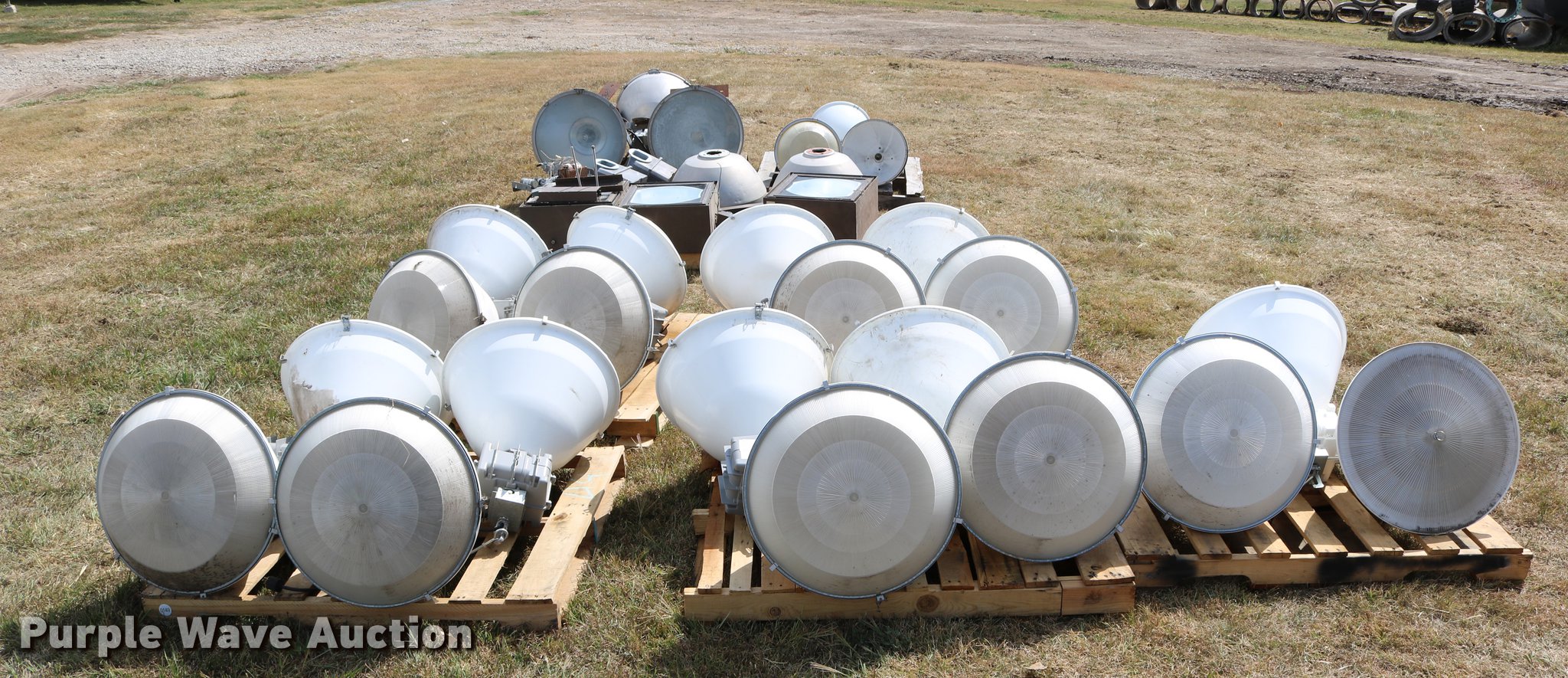 (18) Hubbel ballfield lights. PLA ballast, 400 watt, Catalog no. BL-A400HB, One additional light. Sewer Treatment. 1268 180 Rd. Belleville, KS 66935