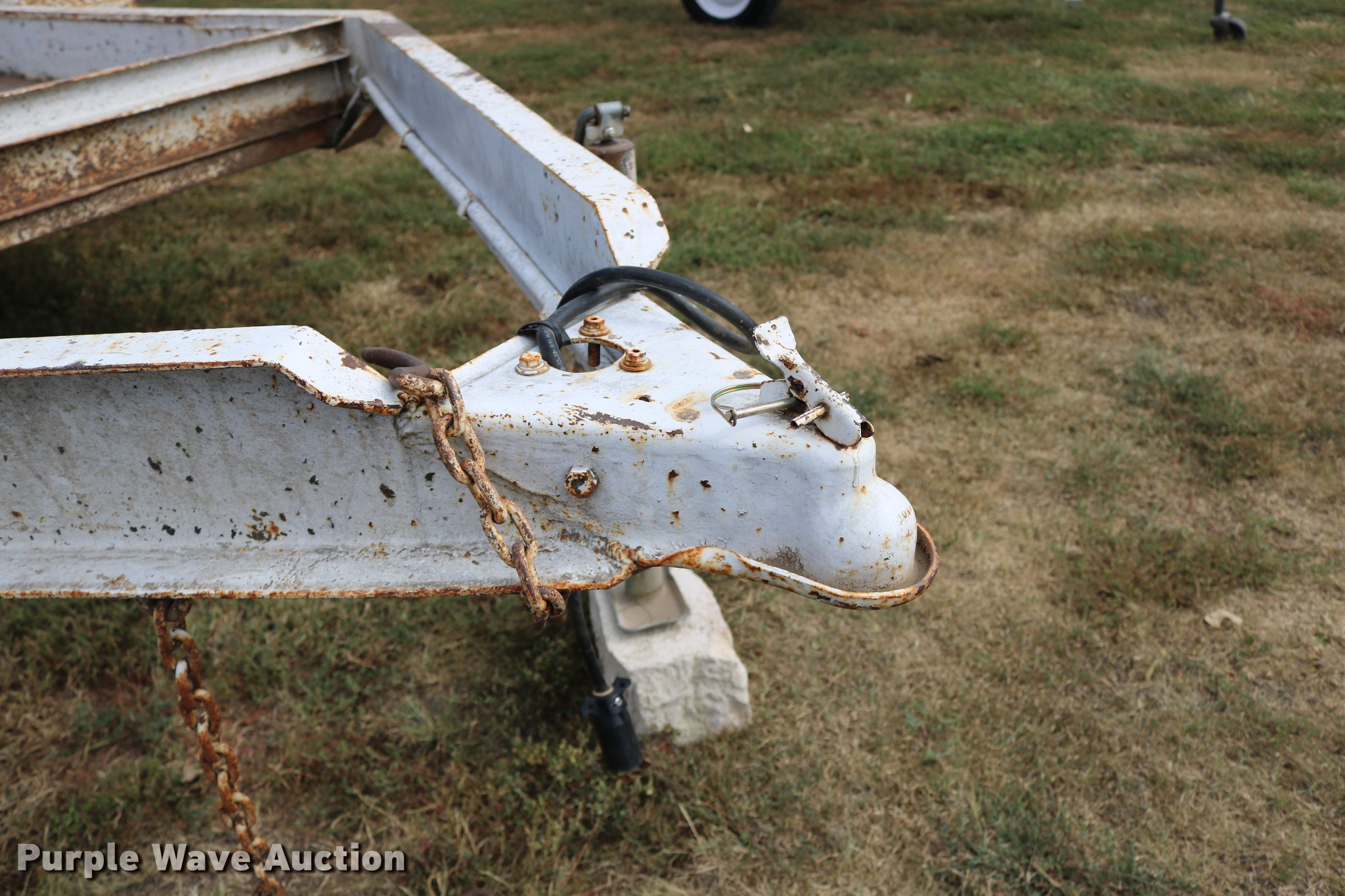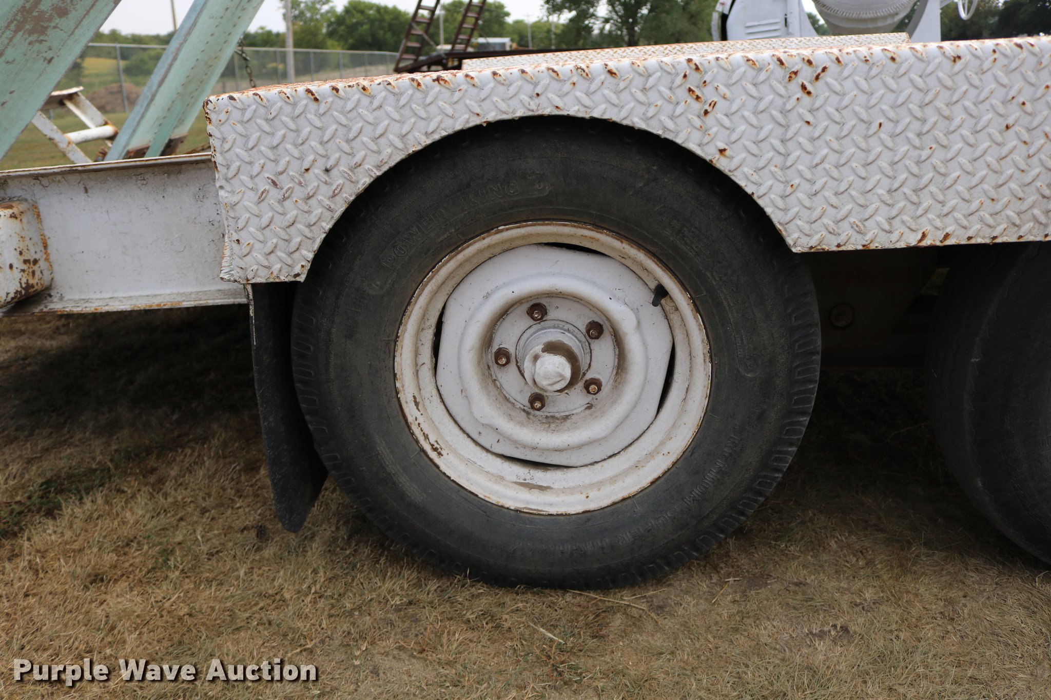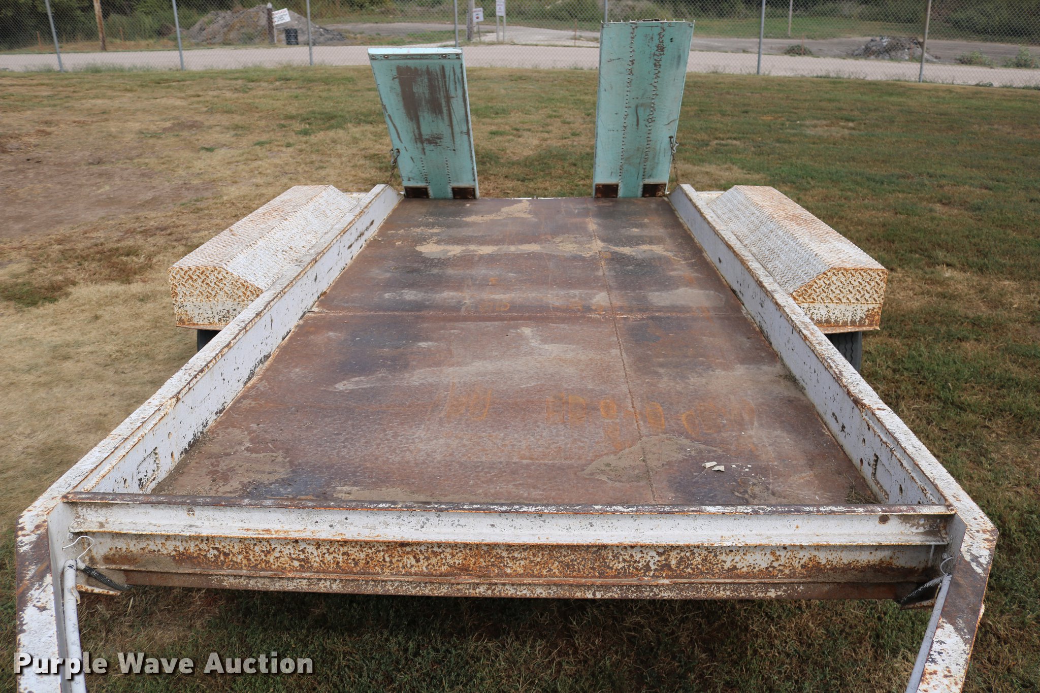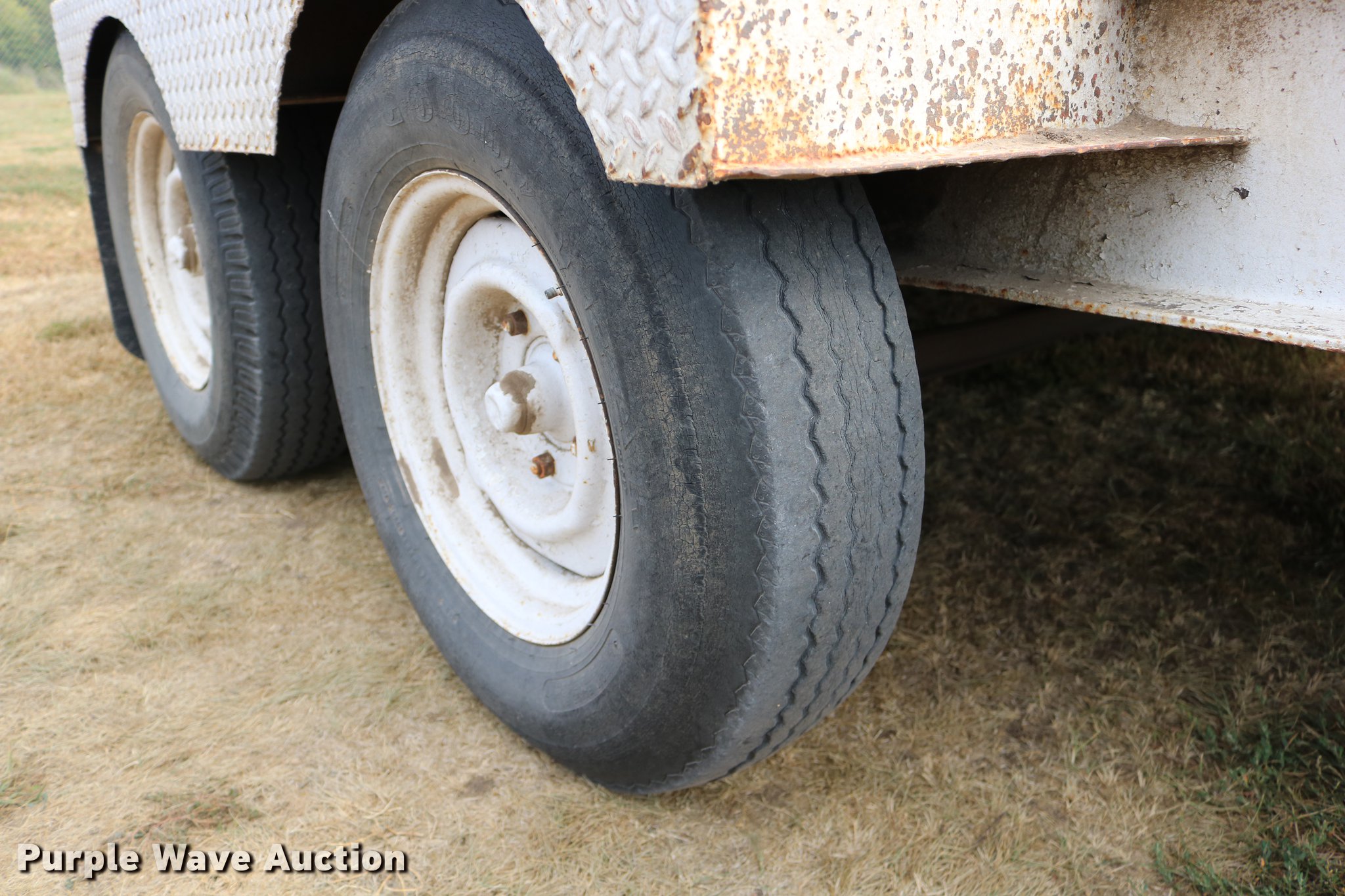 Purple Wave is selling a used Car or Utility Trailer in Kansas. This item is a 1997 shop built utility trailer with the following: 19'8"L x 103"W overall, 14'L deck, 7 1/4" side height, Approx. 20" floor height, 5'L ramps, 2" ball hitch, Single leg landing gear, Electric brakes, Not hooked up, Tandem axle, Steel wheels, 7.00-15 tires