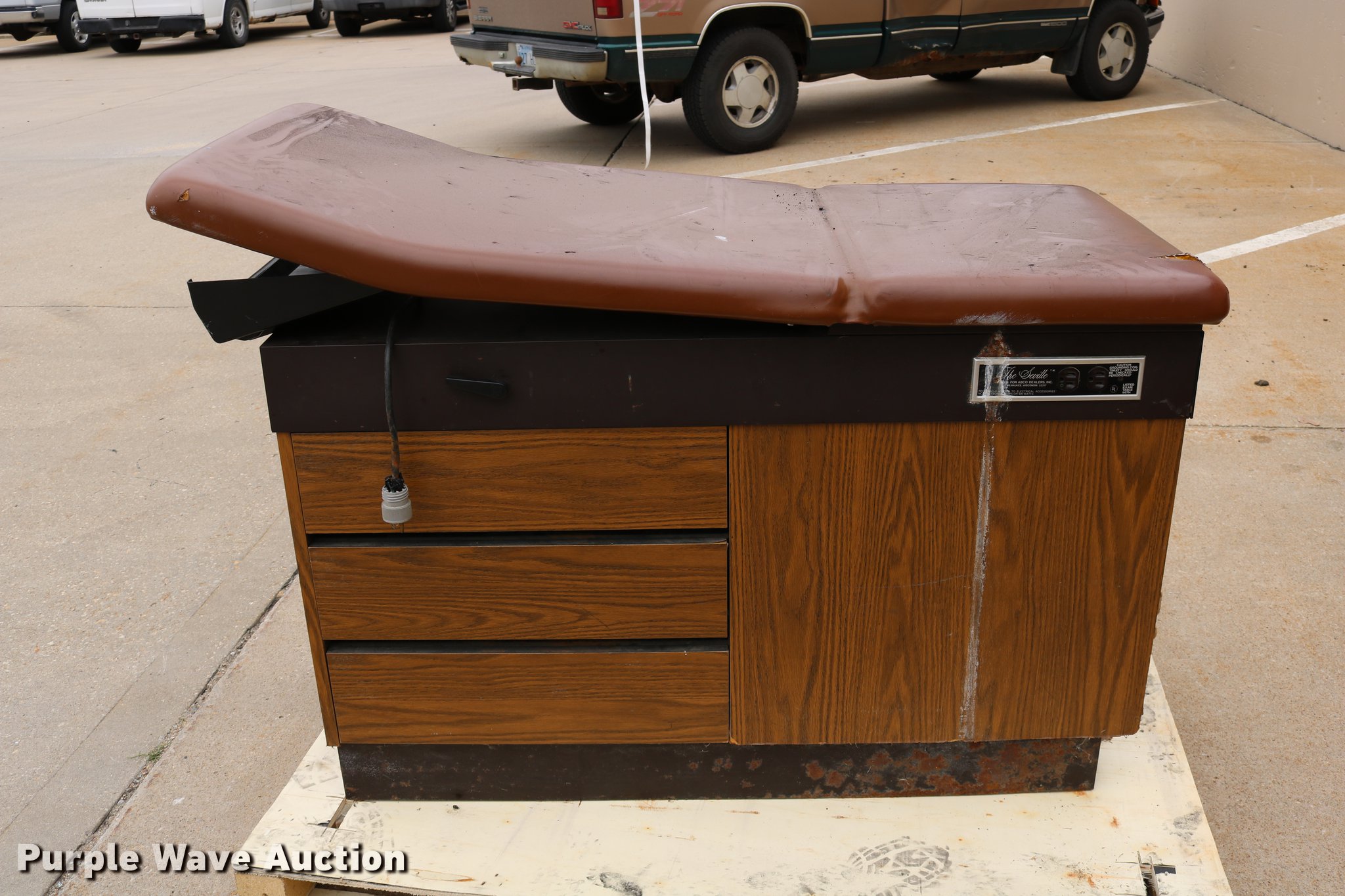 Purple Wave is selling a used Medical Equip. in Kansas. This item is a The Seville exam table with the following: Broken drawer, Drawer missing