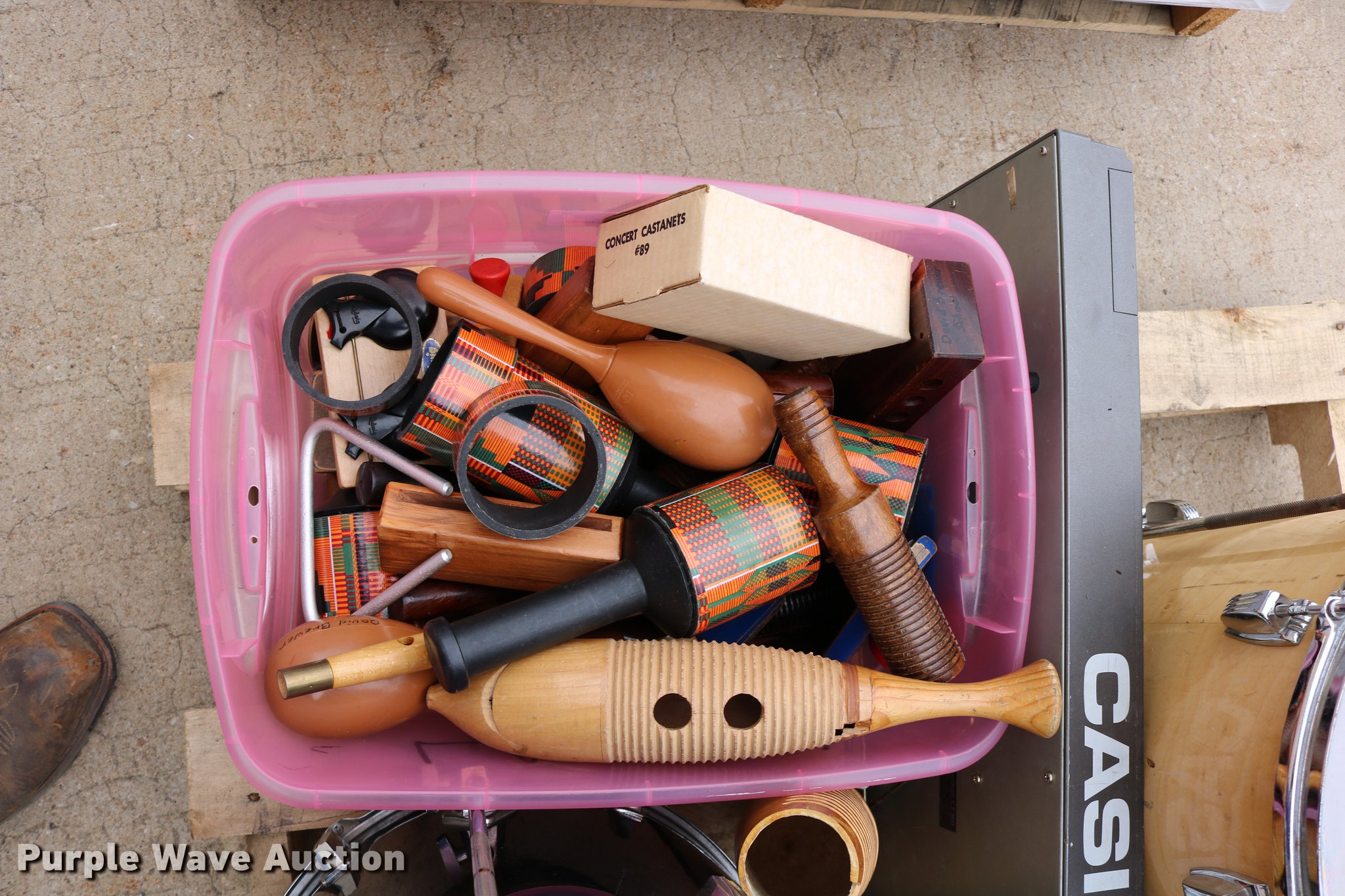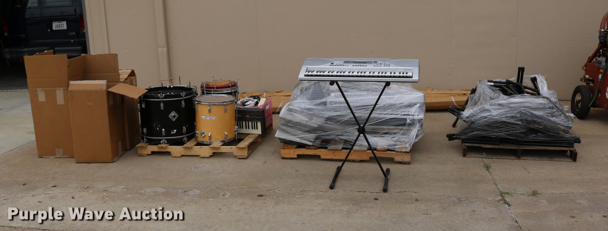 Purple Wave is selling a used Music Equip. in Kansas. This item is a Music equipment with the following: Lugwig drum pieces, Assorted percussion instruments, (12) Casio keyboards, Model CTK-691, Stands, Power cables, Communication cables, Korg GEC3 equalizer