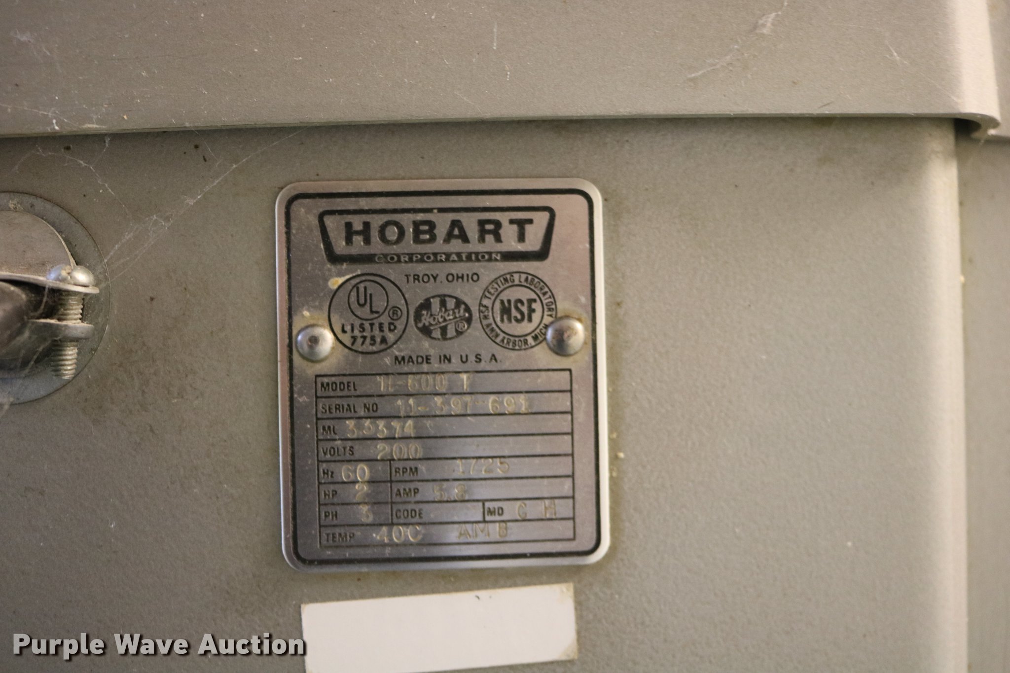 Purple Wave is selling a used Restaurant Equip. in Kansas. This item is a Hobart H-600T mixer with the following: Electric motor, 2 HP at 1,725 RPM, 200V, Serial 11-397-691