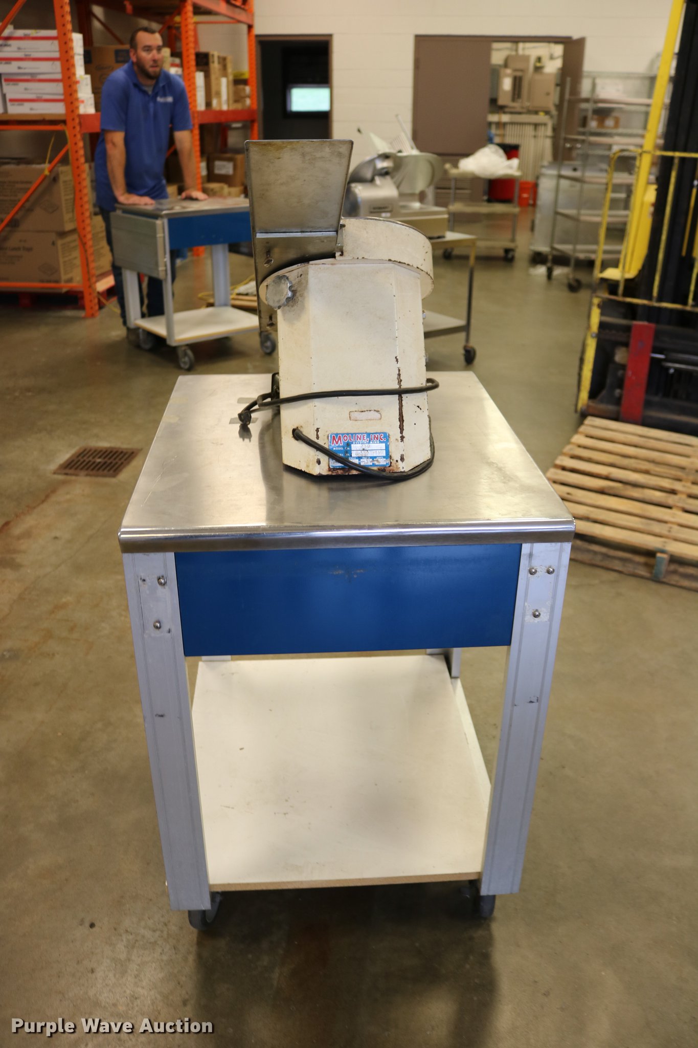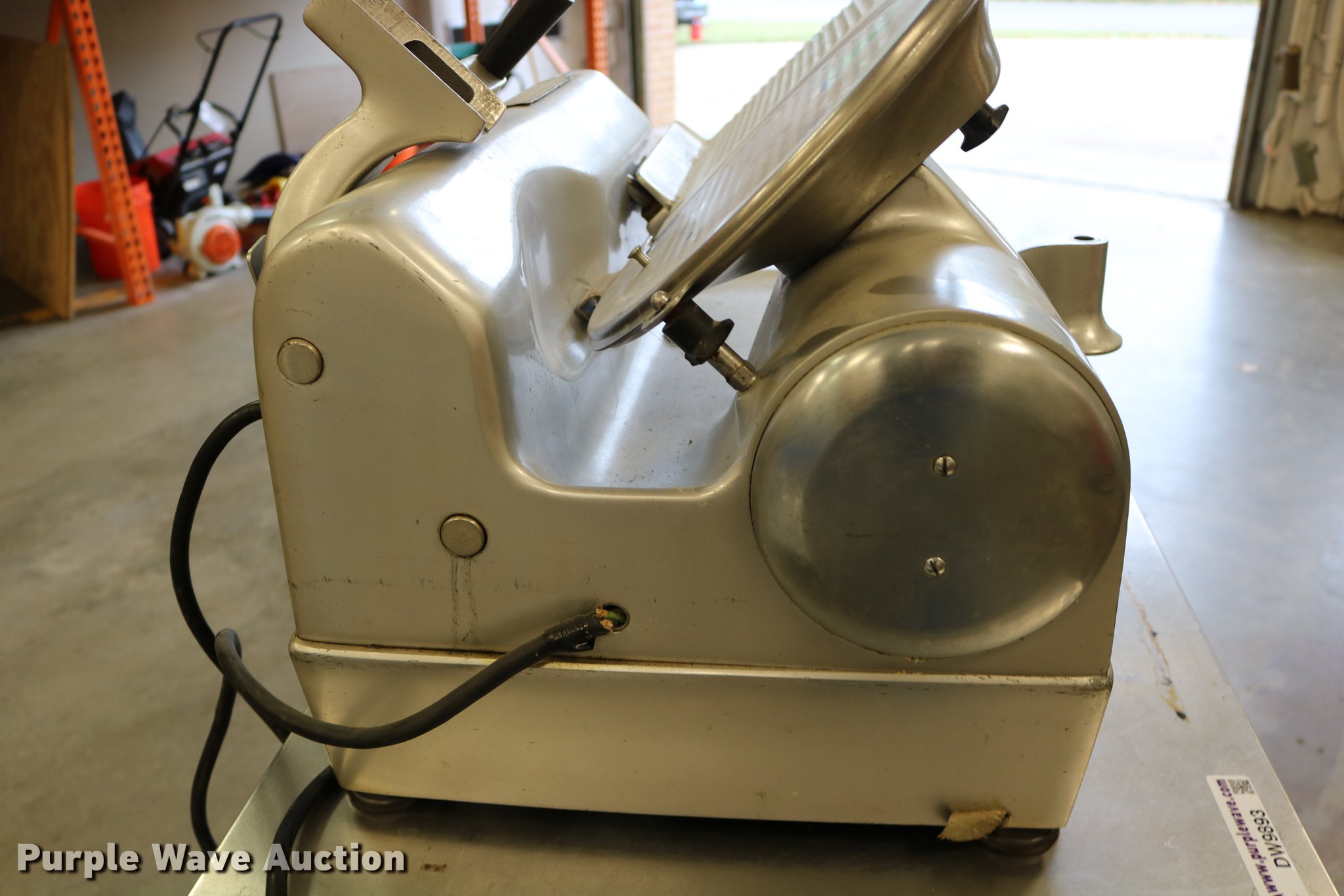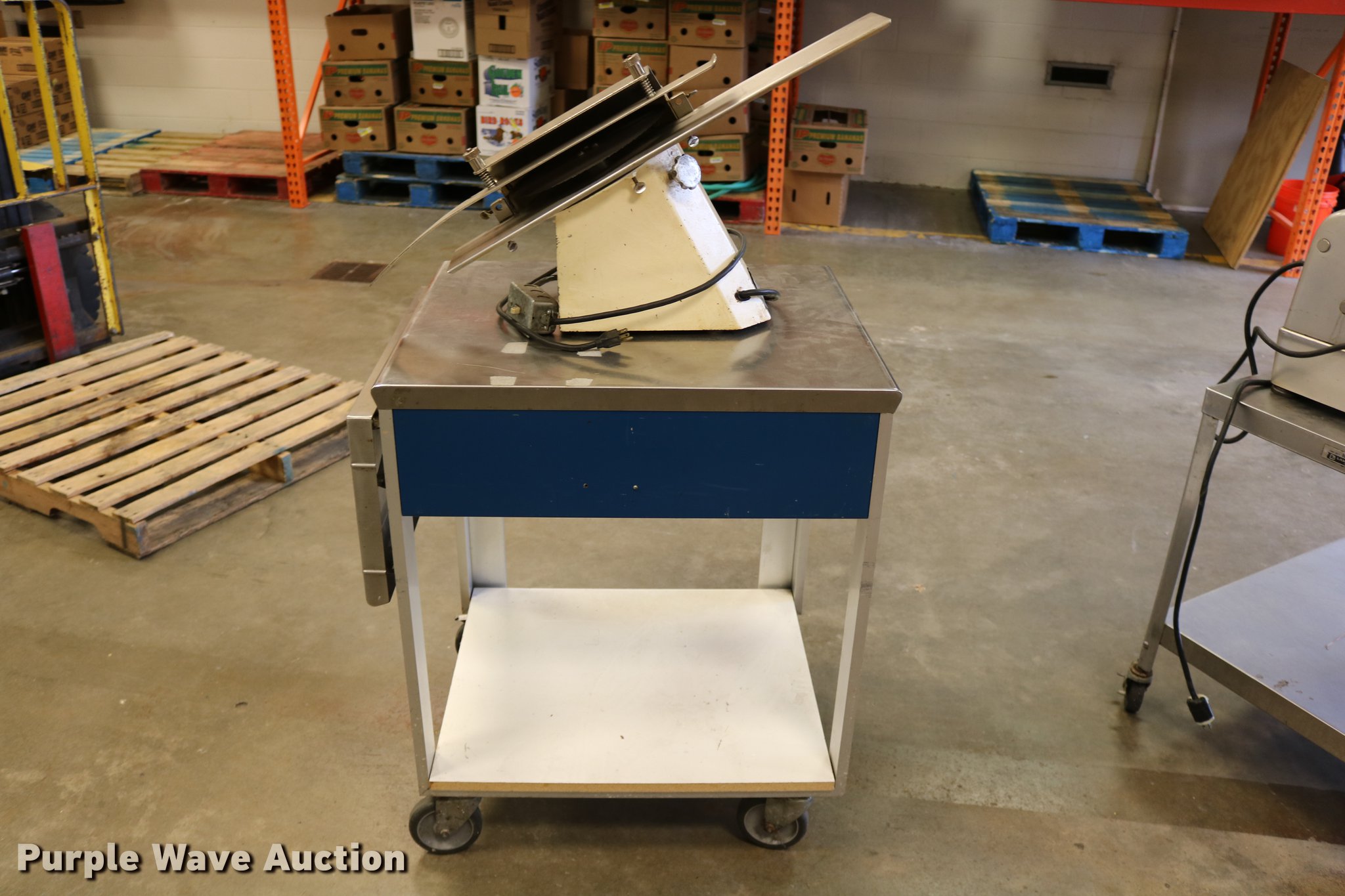 Purple Wave is selling a used Restaurant Equip. in Kansas. This item is a Restaurant equipment with the following: Hobart slicer, Model 1712, 115V, Single phase, 1/3 HP, Cradle and guide missing, Serial 1827903, Stainless steel cart, 32" x 24" top, 29.5"H, Casters, Cashiers cart, 28.5" x 24" stainless steel top, One drawer, 35 1/4"H, Moline bread slicer, Model 250, 115V, Single phase, No brake, Serial 13-3331-71