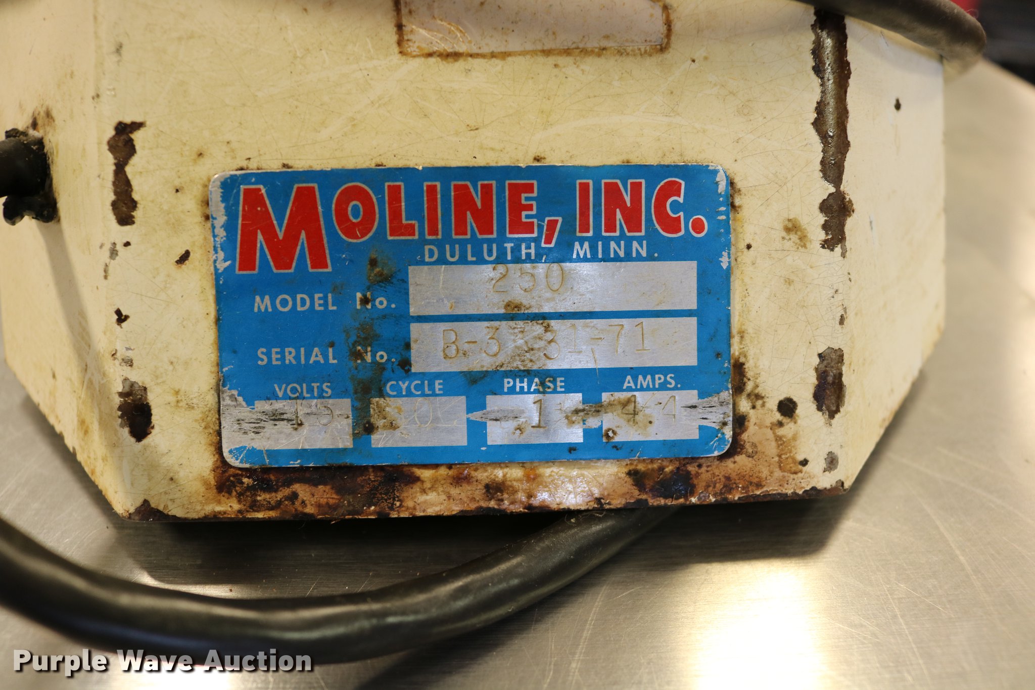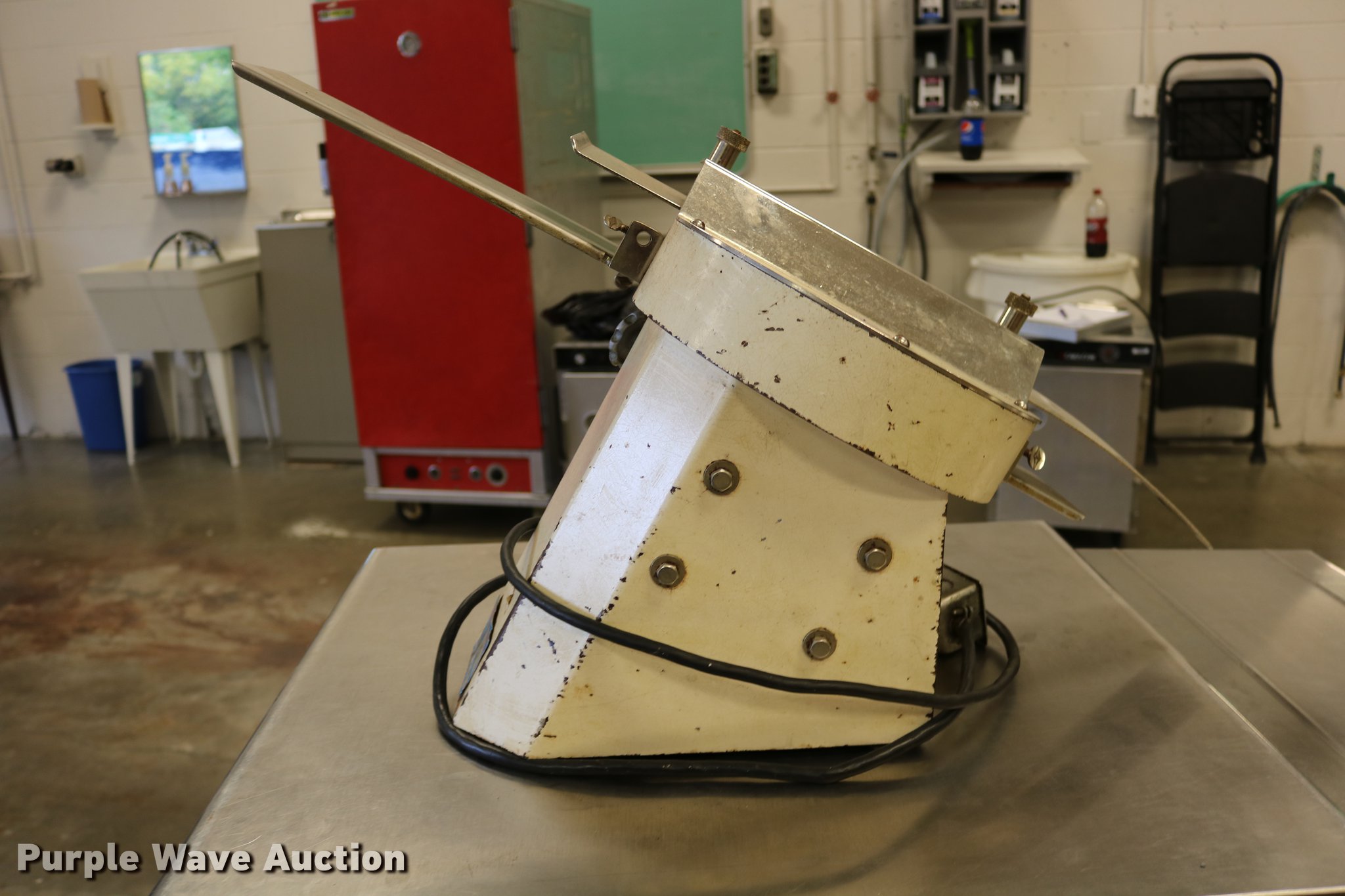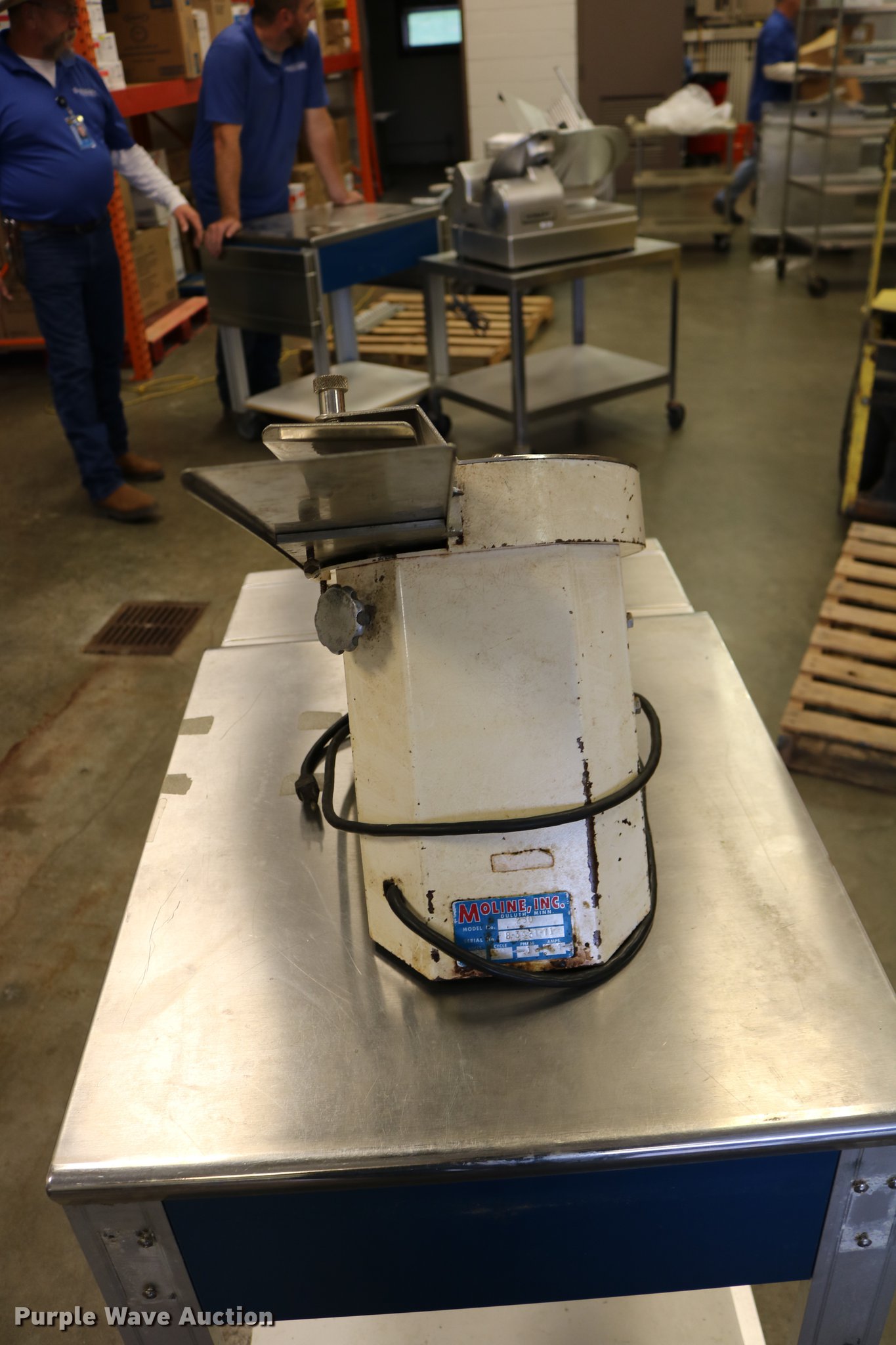 Purple Wave is selling a used Restaurant Equip. in Kansas. This item is a Restaurant equipment with the following: Hobart slicer, Model 1712, 115V, Single phase, 1/3 HP, Cradle and guide missing, Serial 1827903, Stainless steel cart, 32" x 24" top, 29.5"H, Casters, Cashiers cart, 28.5" x 24" stainless steel top, One drawer, 35 1/4"H, Moline bread slicer, Model 250, 115V, Single phase, No brake, Serial 13-3331-71