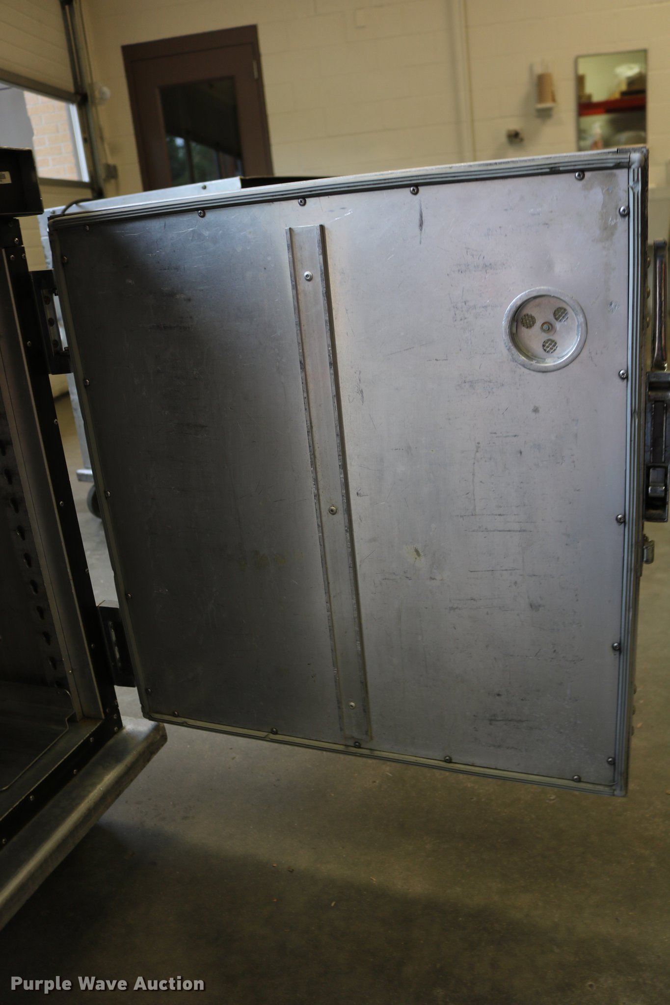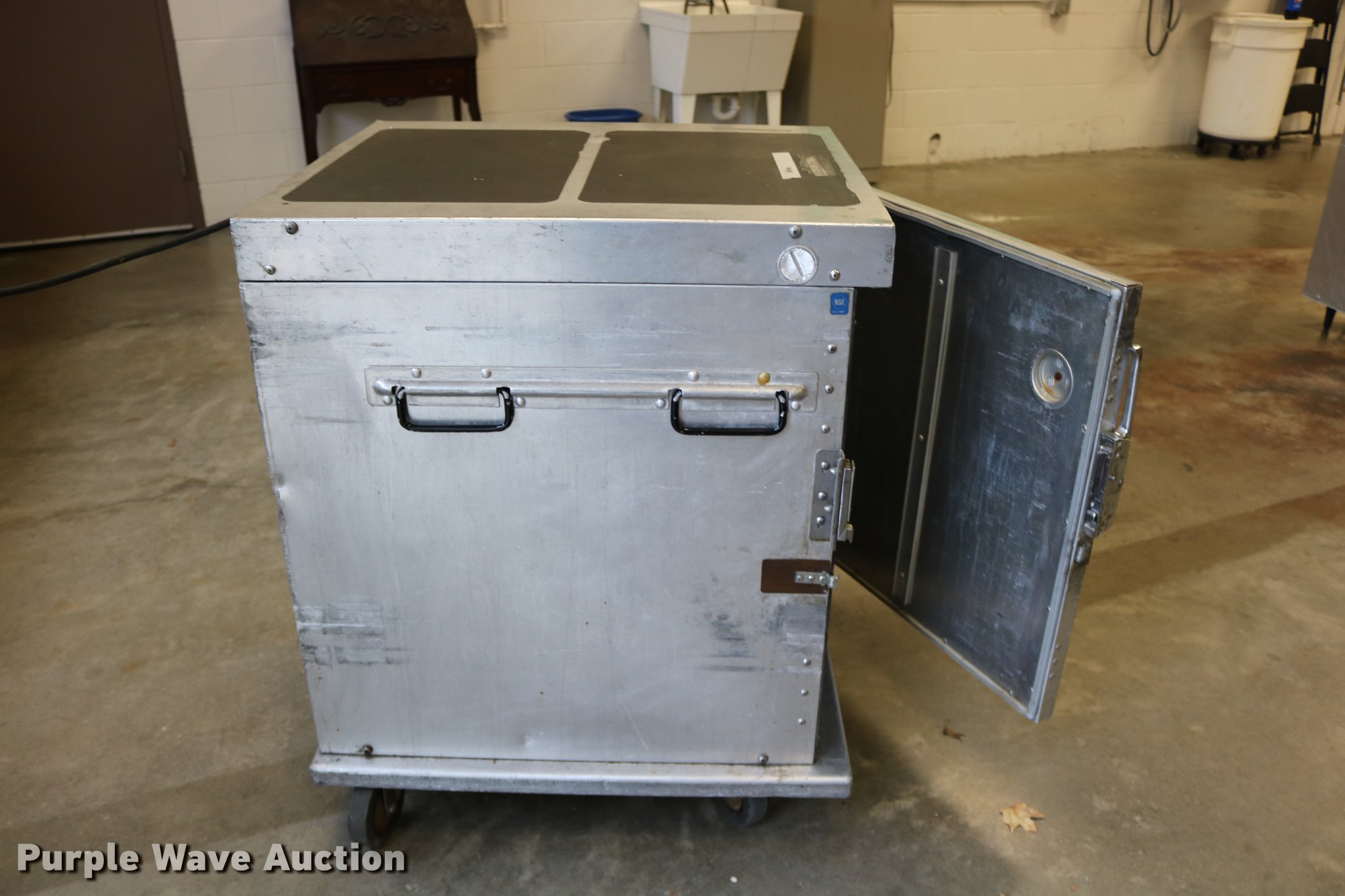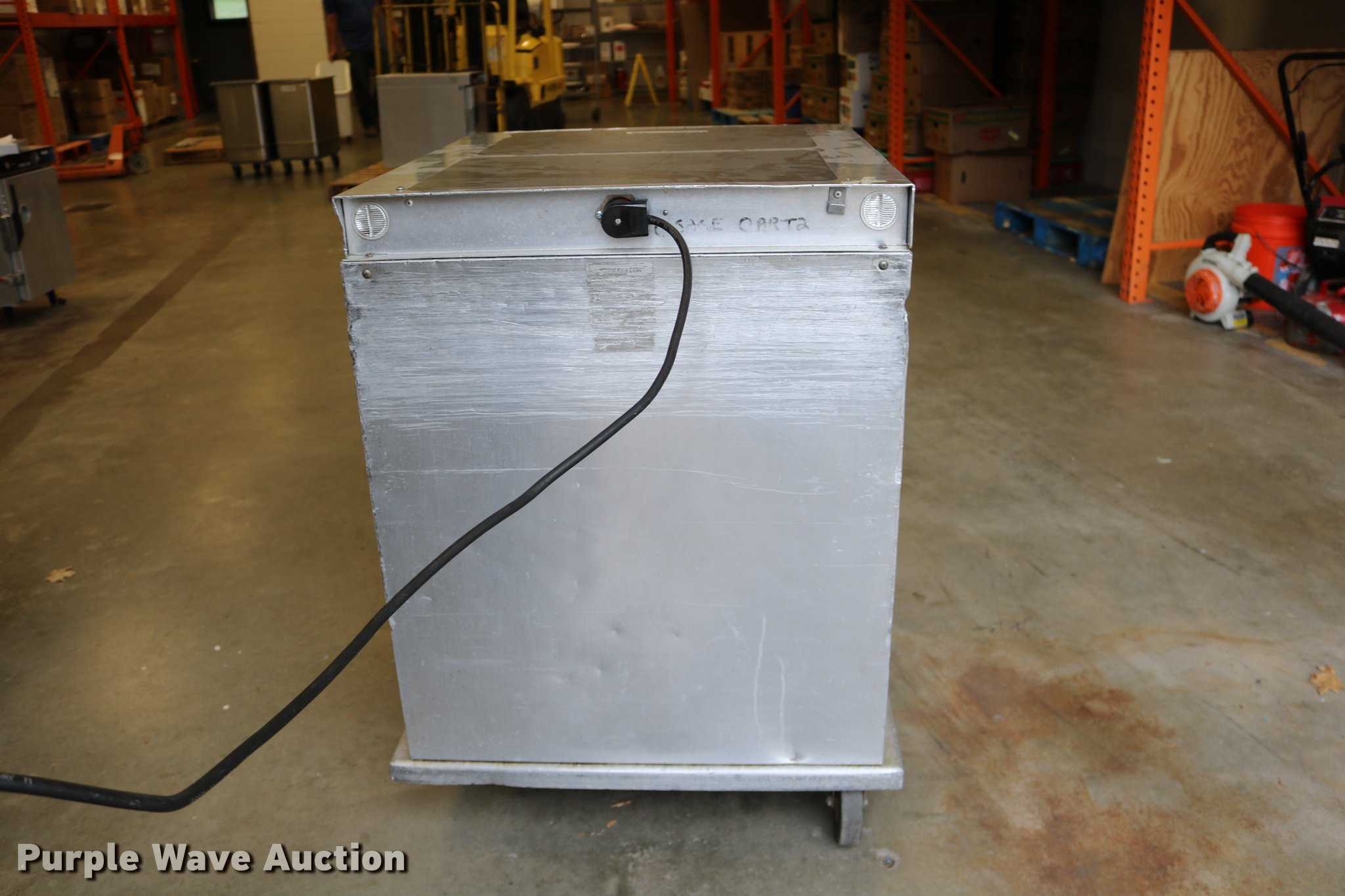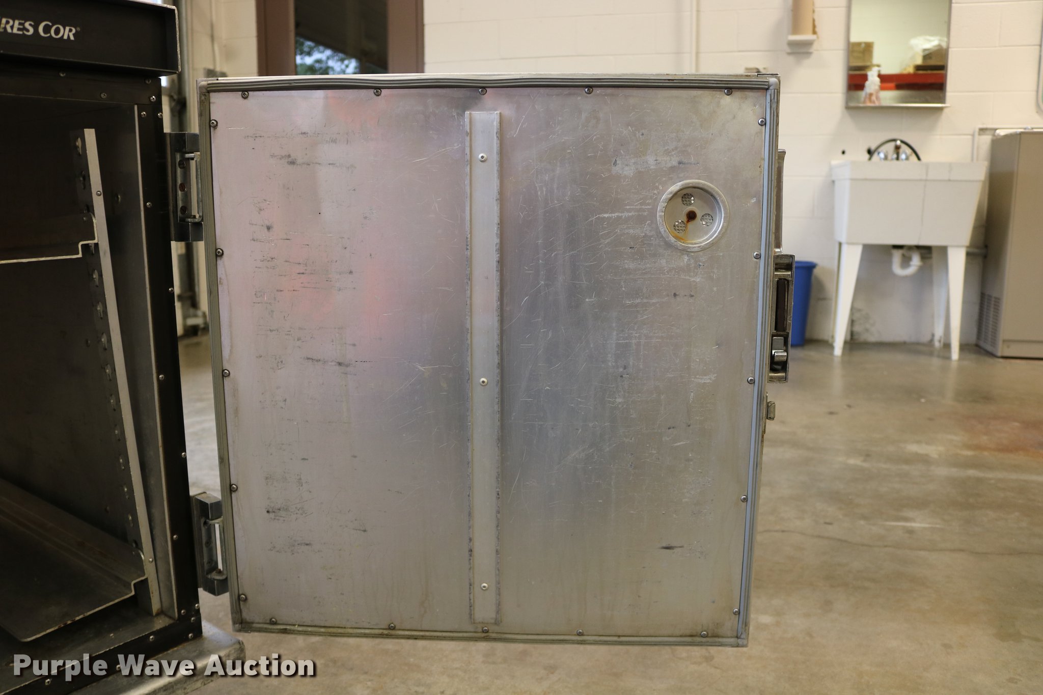 Purple Wave is selling a used Restaurant Equip. in Kansas. This item is a (2) Cres-Cor warmers with the following: Model H-739UA8B, 120V, Single phase, 29.5" x 27" x 37", One latch broken, One dial broken, Caster wheel missing