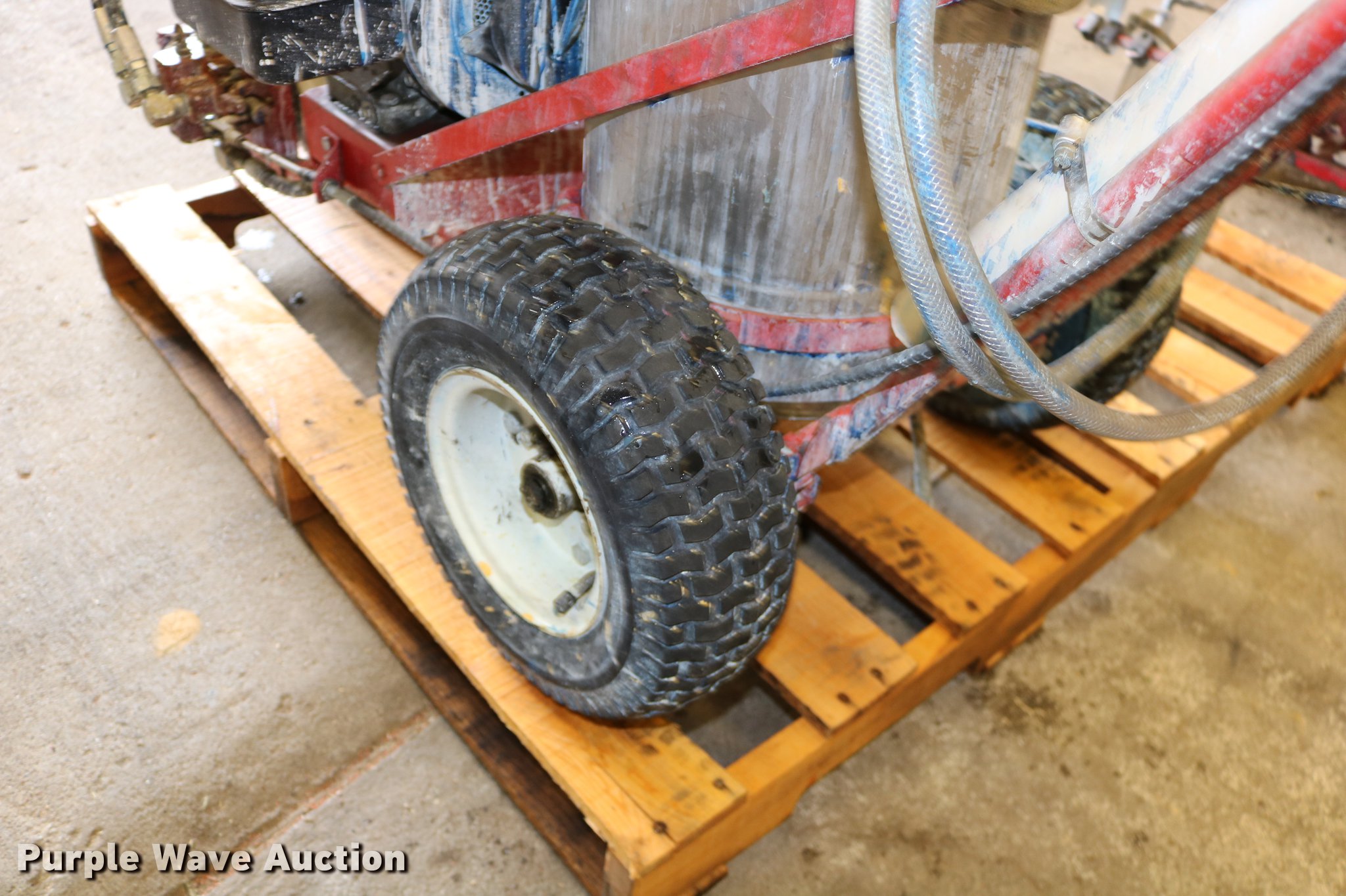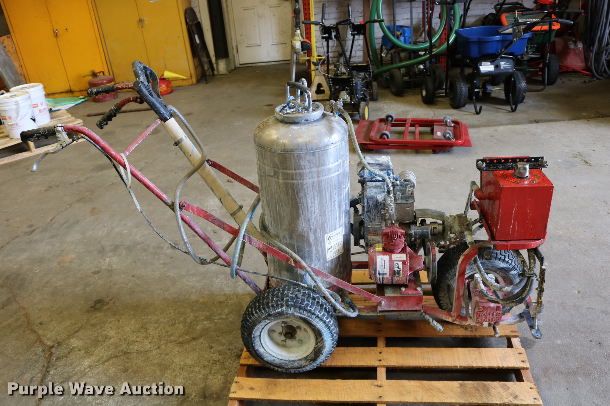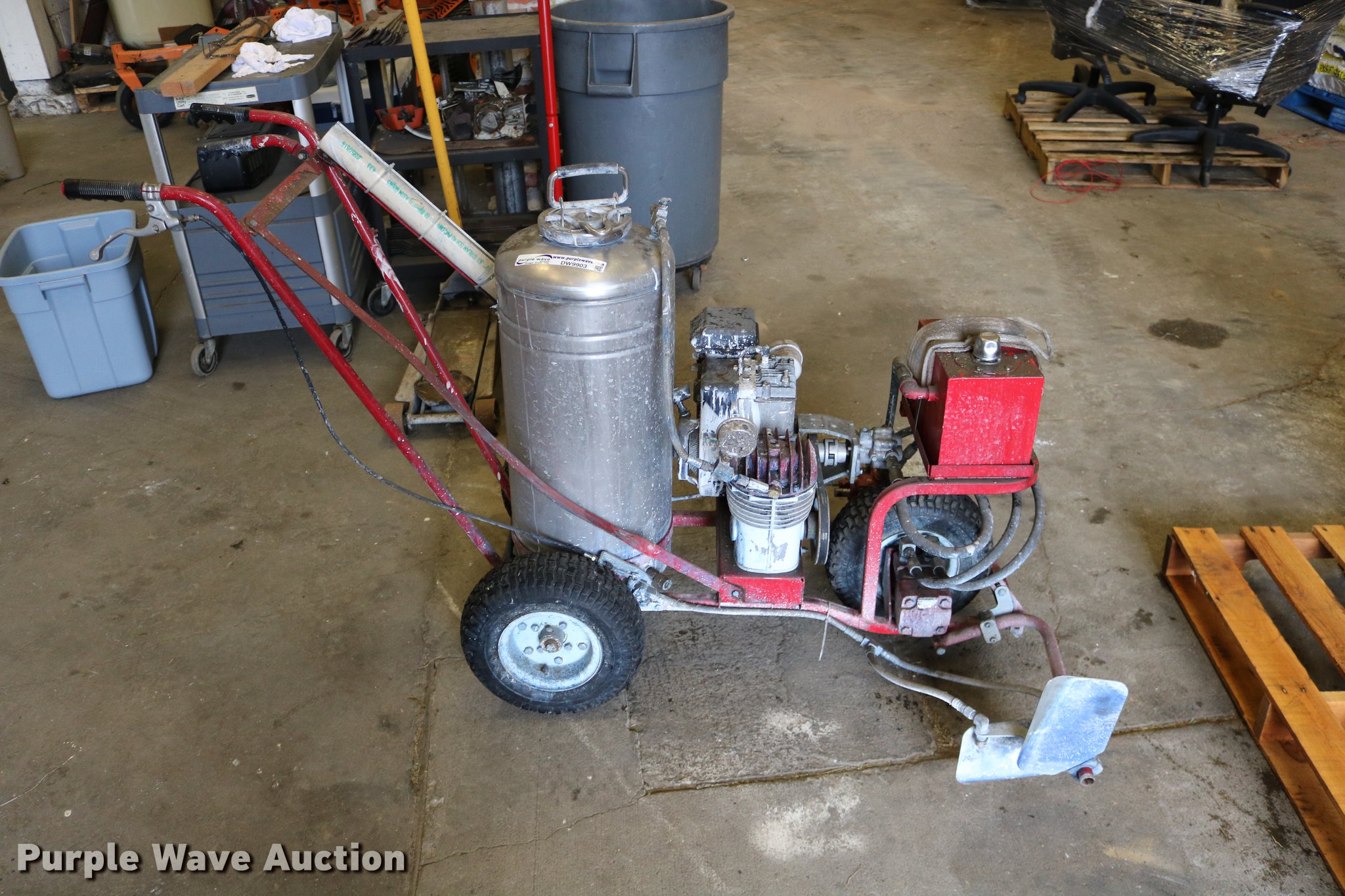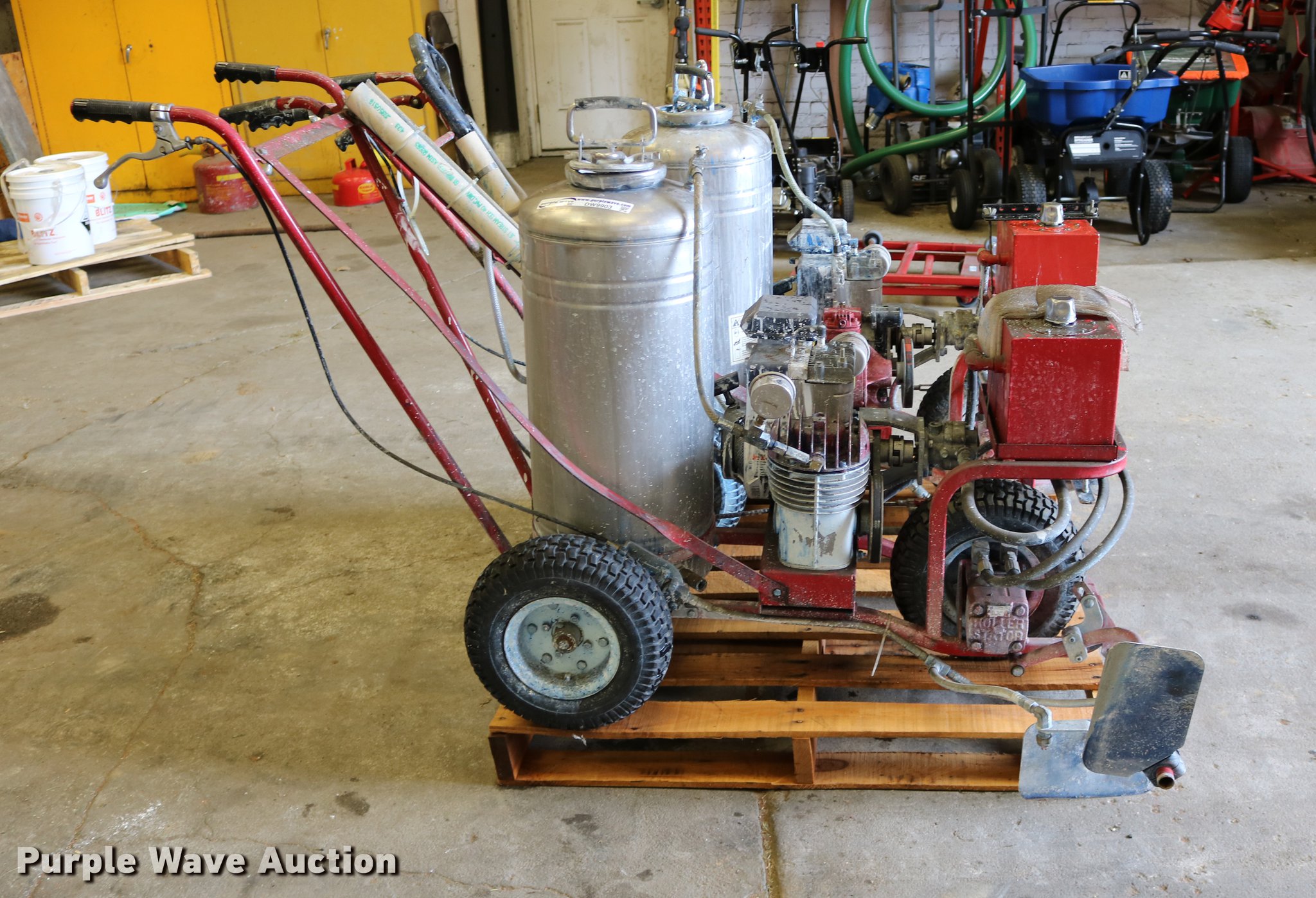 (2) Pioneer Brite Striper field stripers. Hydrostatic front wheel drive, One hand wand, One side extension, (3) 13x5.00-6 tires, One non-operational unit, parts only, One unknown operating condition. USD 453. 714 Lawrence Ave. Leavenworth, KS 66048