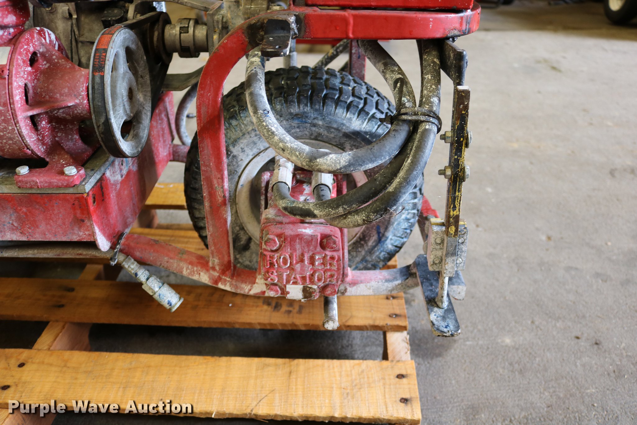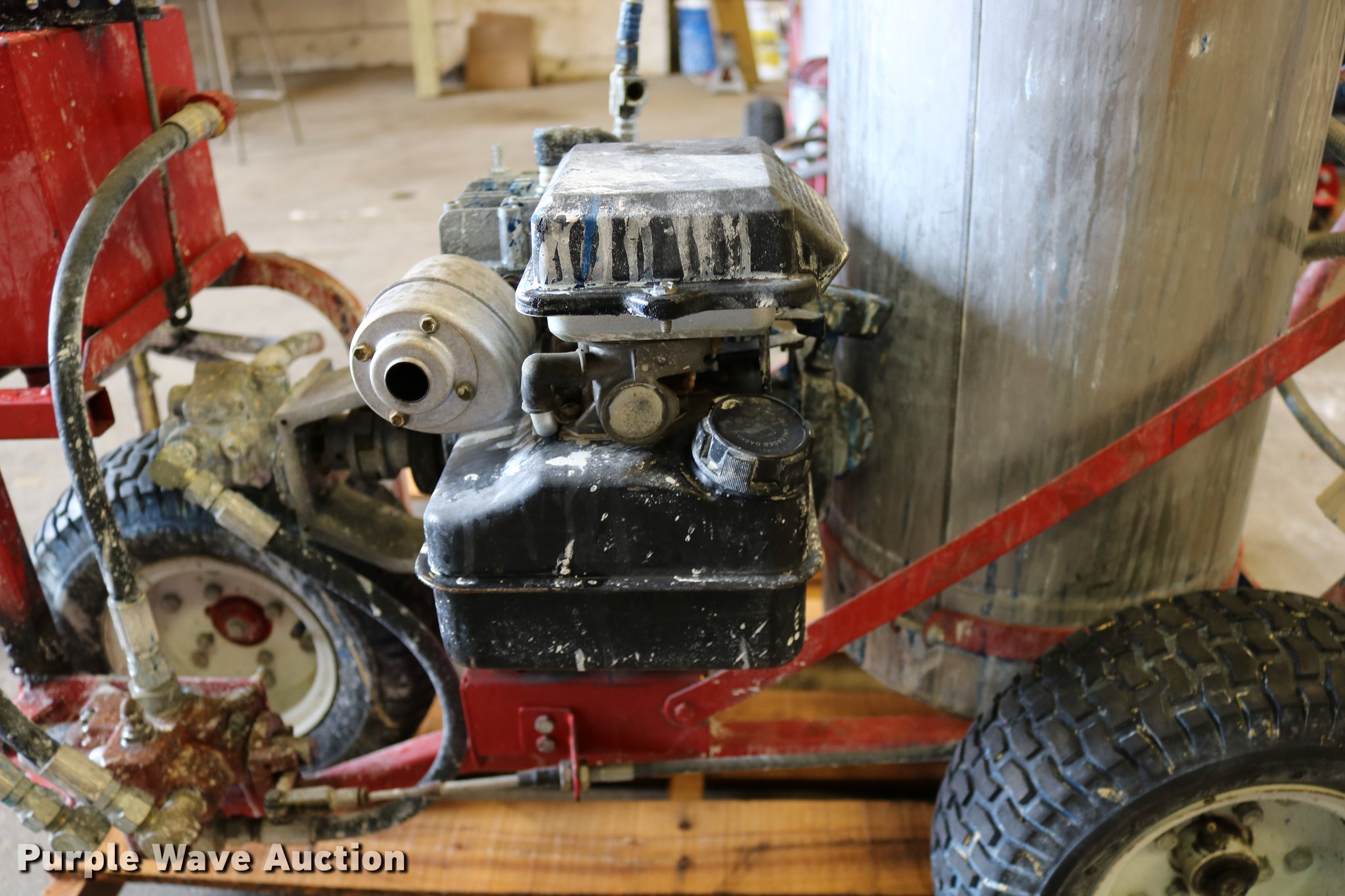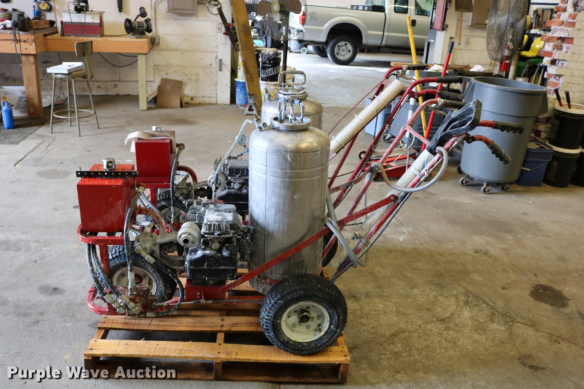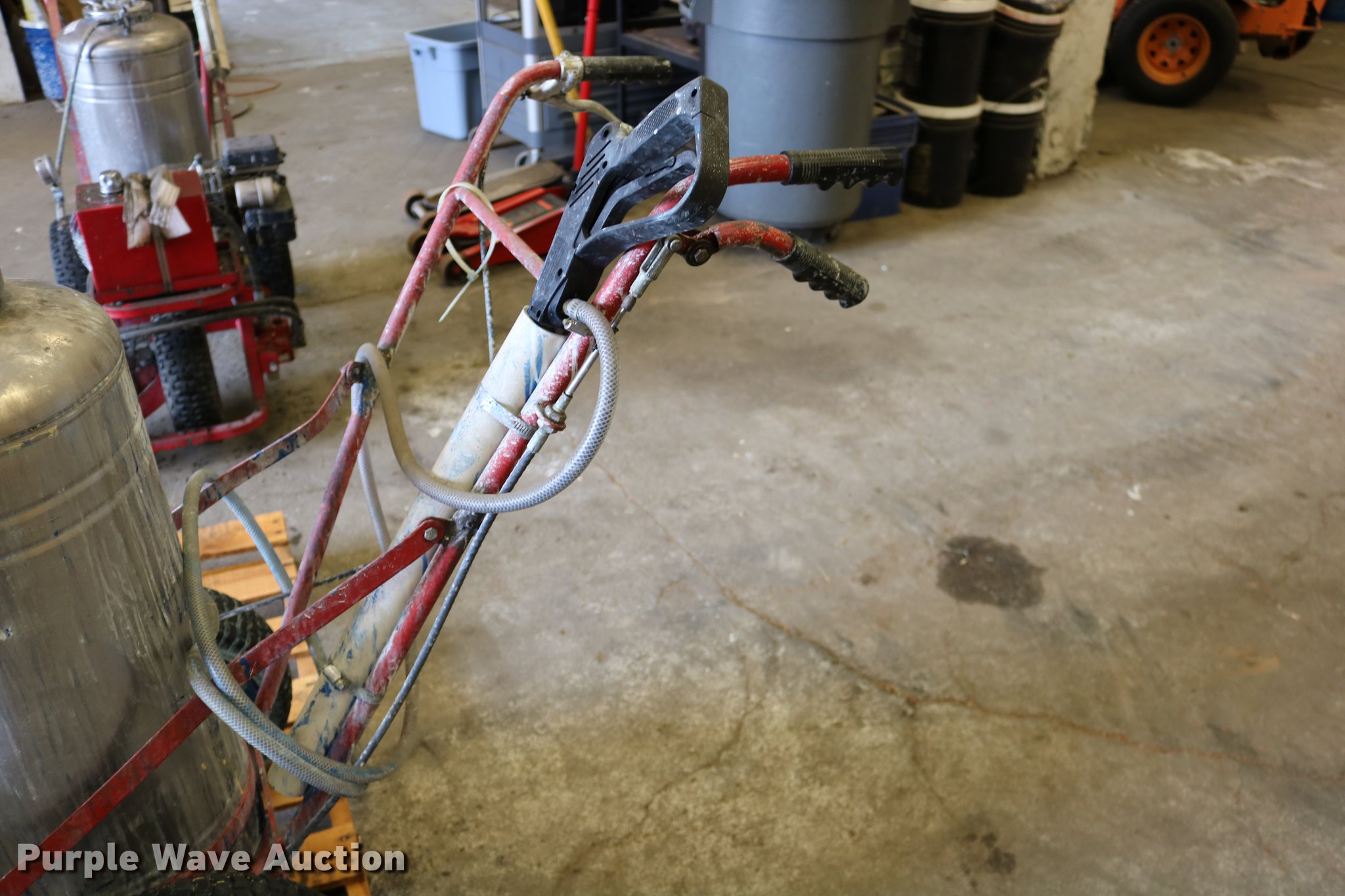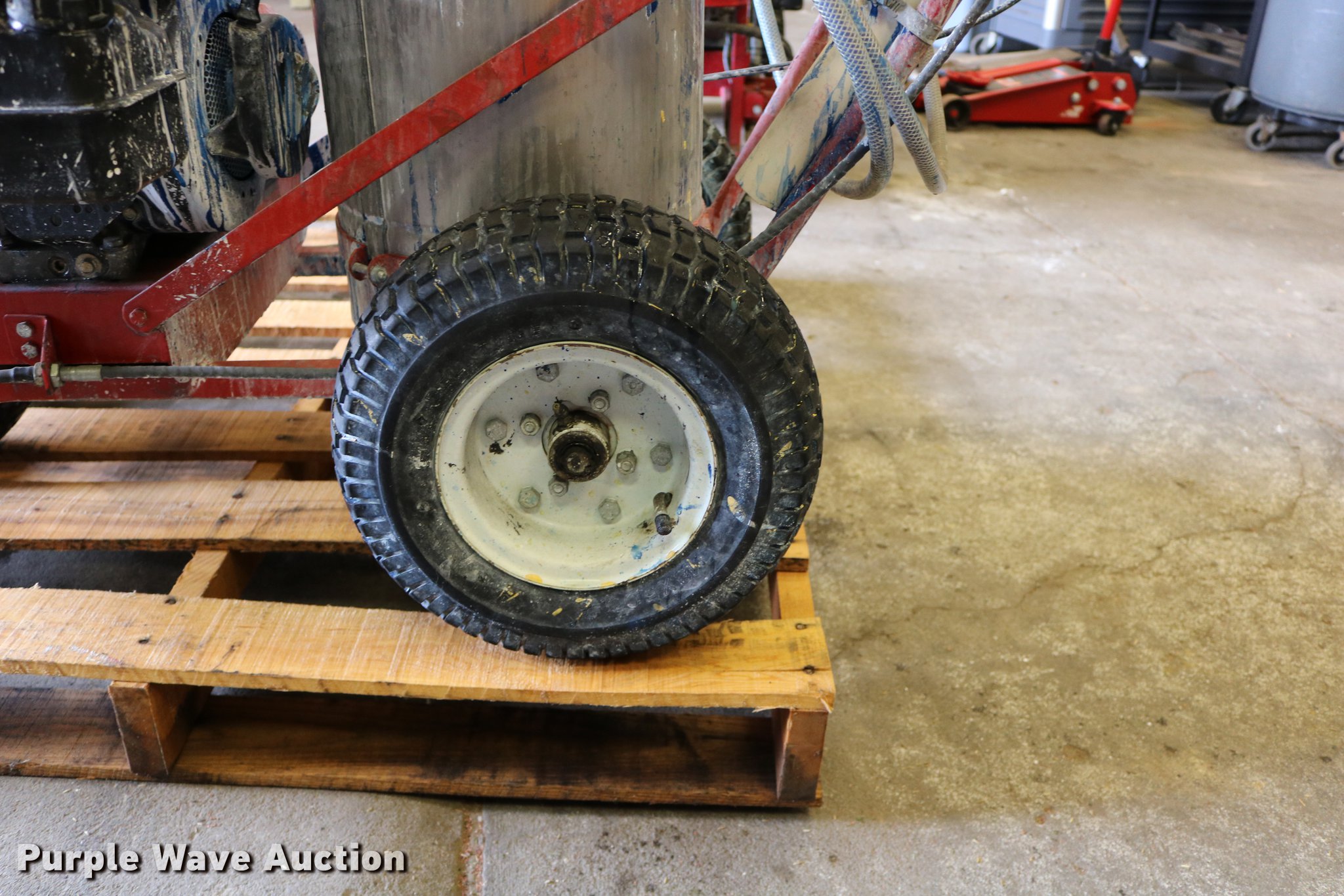 (2) Pioneer Brite Striper field stripers. Hydrostatic front wheel drive, One hand wand, One side extension, (3) 13x5.00-6 tires, One non-operational unit, parts only, One unknown operating condition. USD 453. 714 Lawrence Ave. Leavenworth, KS 66048