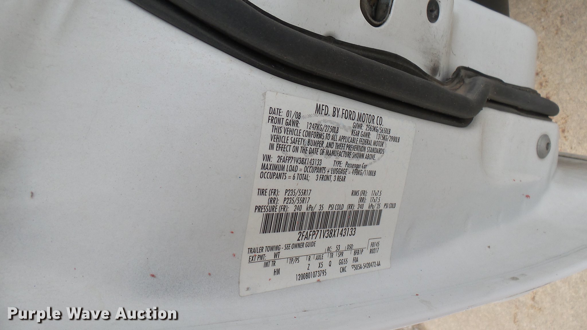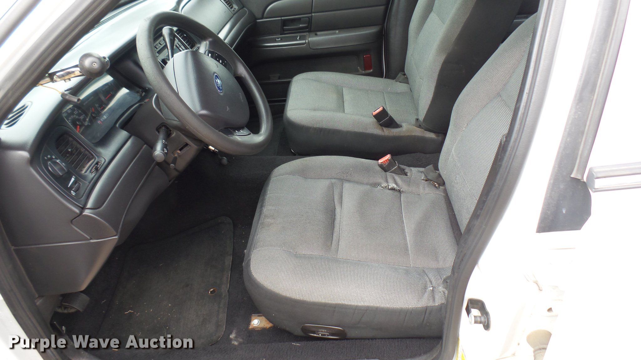 Purple Wave is selling a used Passenger Vehicle in Kansas. This item is a 2008 Ford Crown Victoria Police Interceptor with the following: 121,996 miles on odometer, 4.6L V8 SOHC 16V FFV gas engine, Automatic transmission, AC and heat, Tilt, Cruise, AM/FM/CD, Power windows, locks, and mirrors, Cloth interior, Rhino push bar, P235/55R17 tires, Port holes, Cracked windshield
