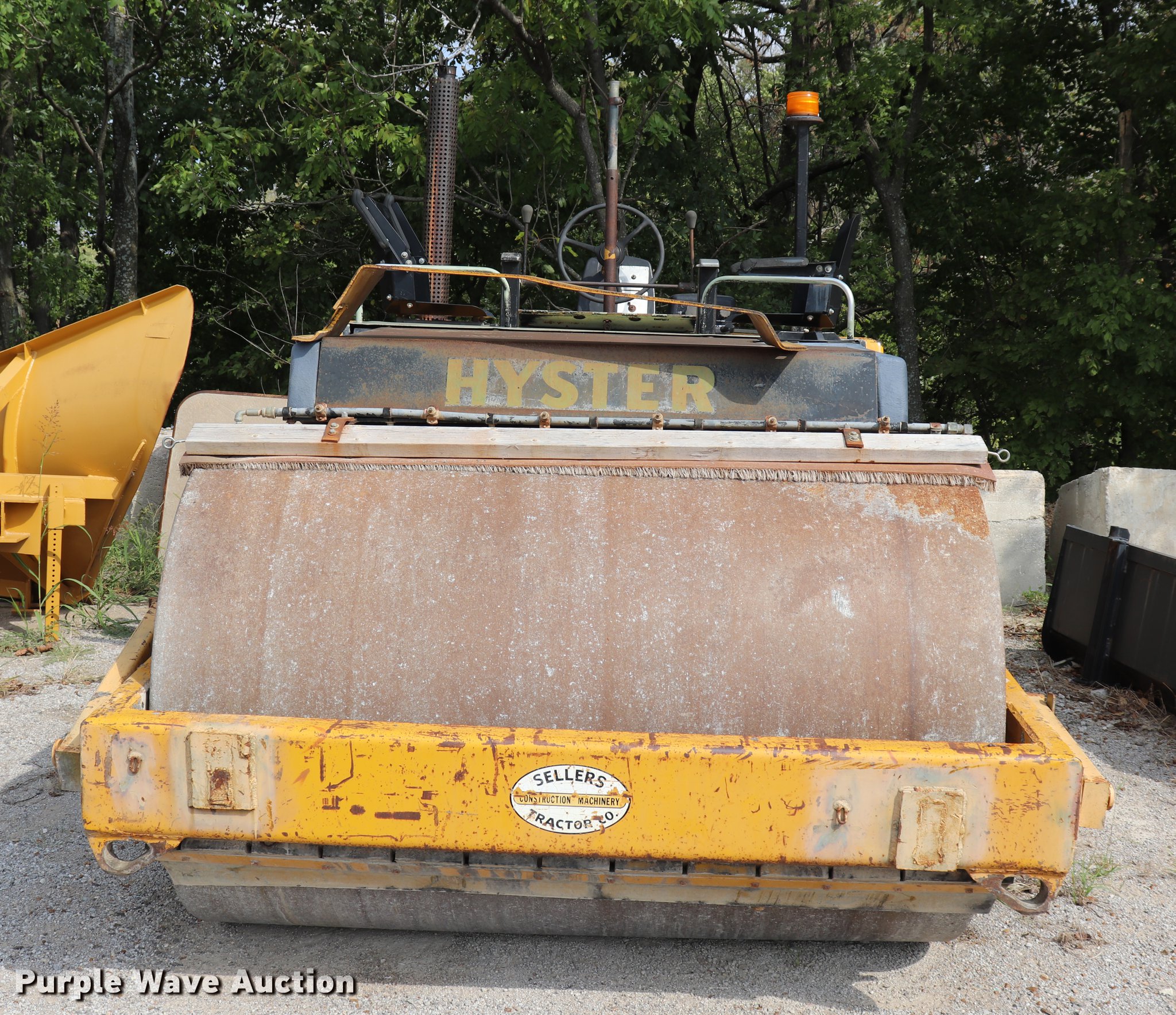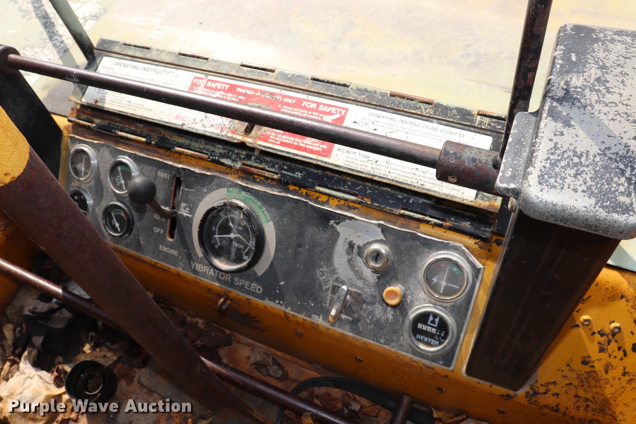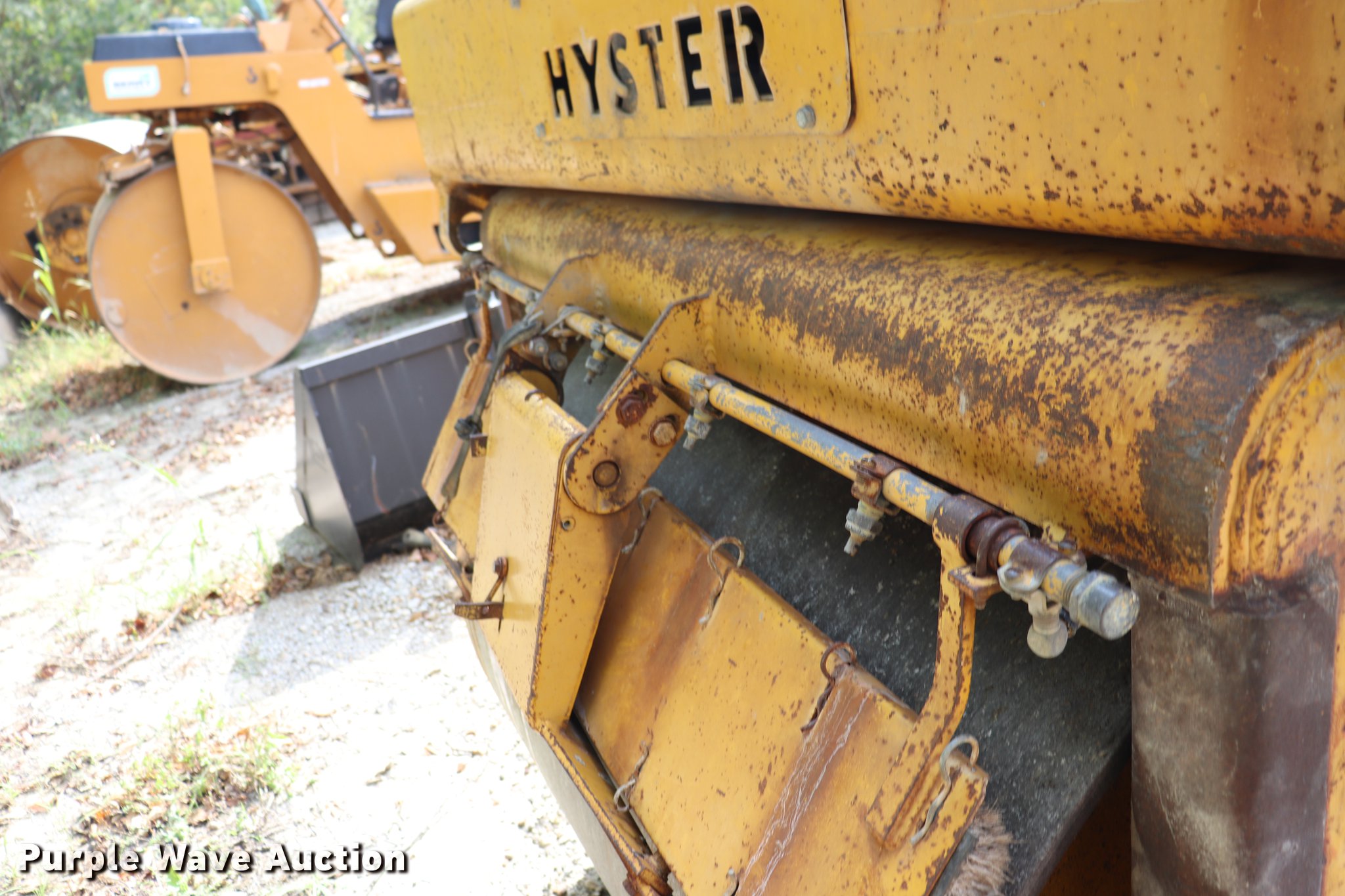 Purple Wave is selling a used Double Drum Roller Compactor in Kansas. This item is a Hyster double drum roller with the following: 2,309 hours on meter, Detroit Diesel four cylinder diesel engine, Hydrostatic transmission, Suspension seat, Vandal cover, Dual operators stations, Single vibratory system, 72"W x 48" diameter smooth front drum, 50"W x 40" diameter smooth rear drum, Front and rear drum scrapers, Front and rear water spray applicator, Drive motor inoperable, Serial B1660-1529-Y