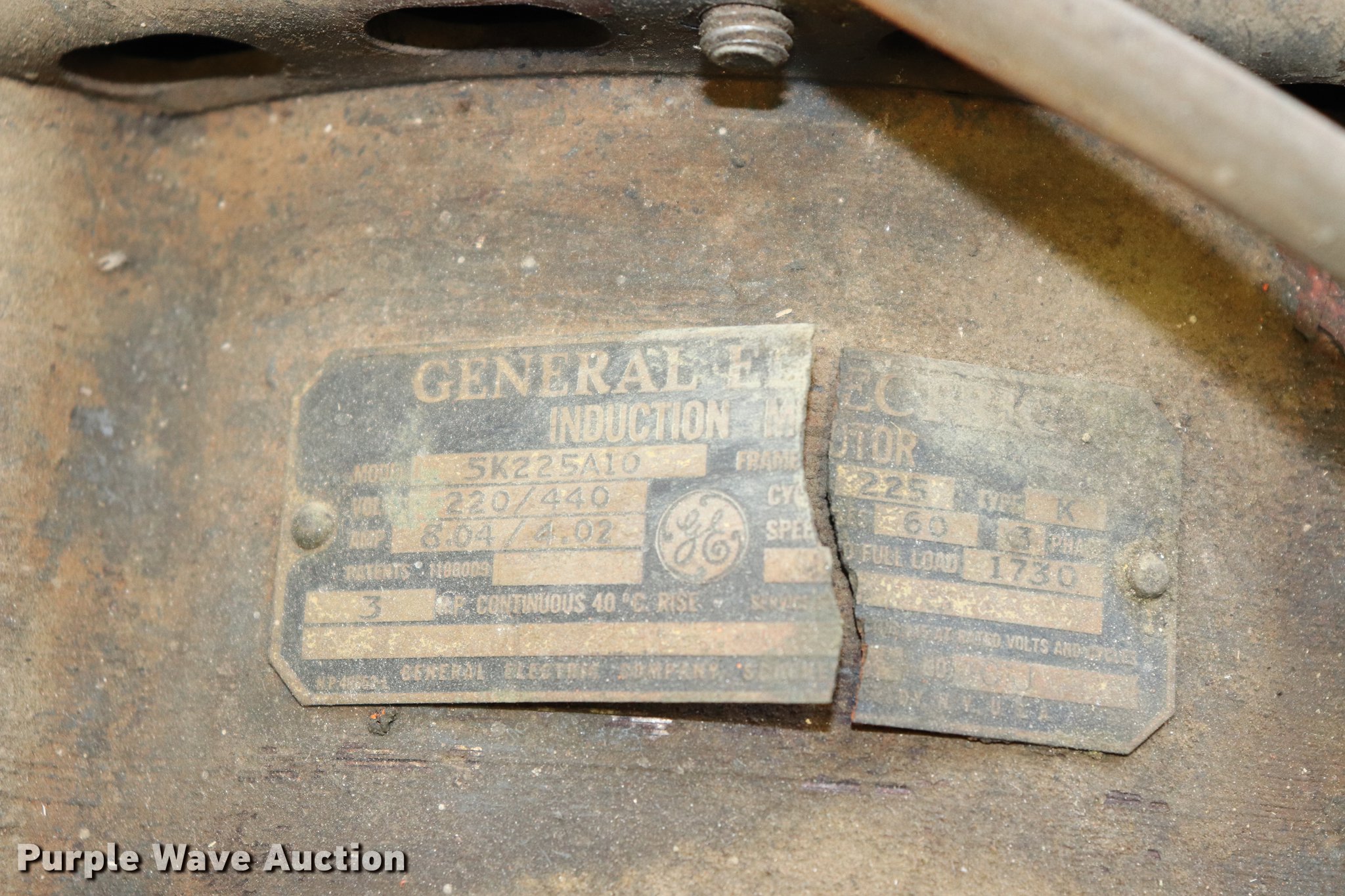 Purple Wave is selling a used Air Compressor in Kansas. This item is a (3) air compressors with the following: Ajax electric motor, 5 HP, 230V, Single phase, Serial 66-05694-814, Model 5000, General Electric motor, 5 HP, 230/460V, Three phase, Non-operational unit, Serial 4005X4221, General Electric motor, 220/440V, Three phase, Unknown operating condition