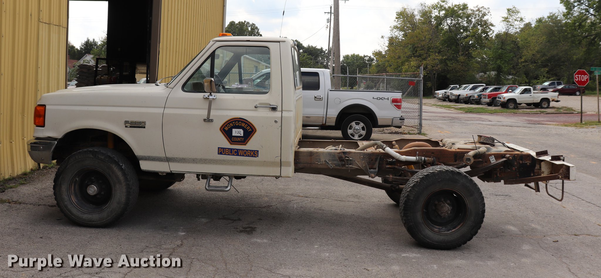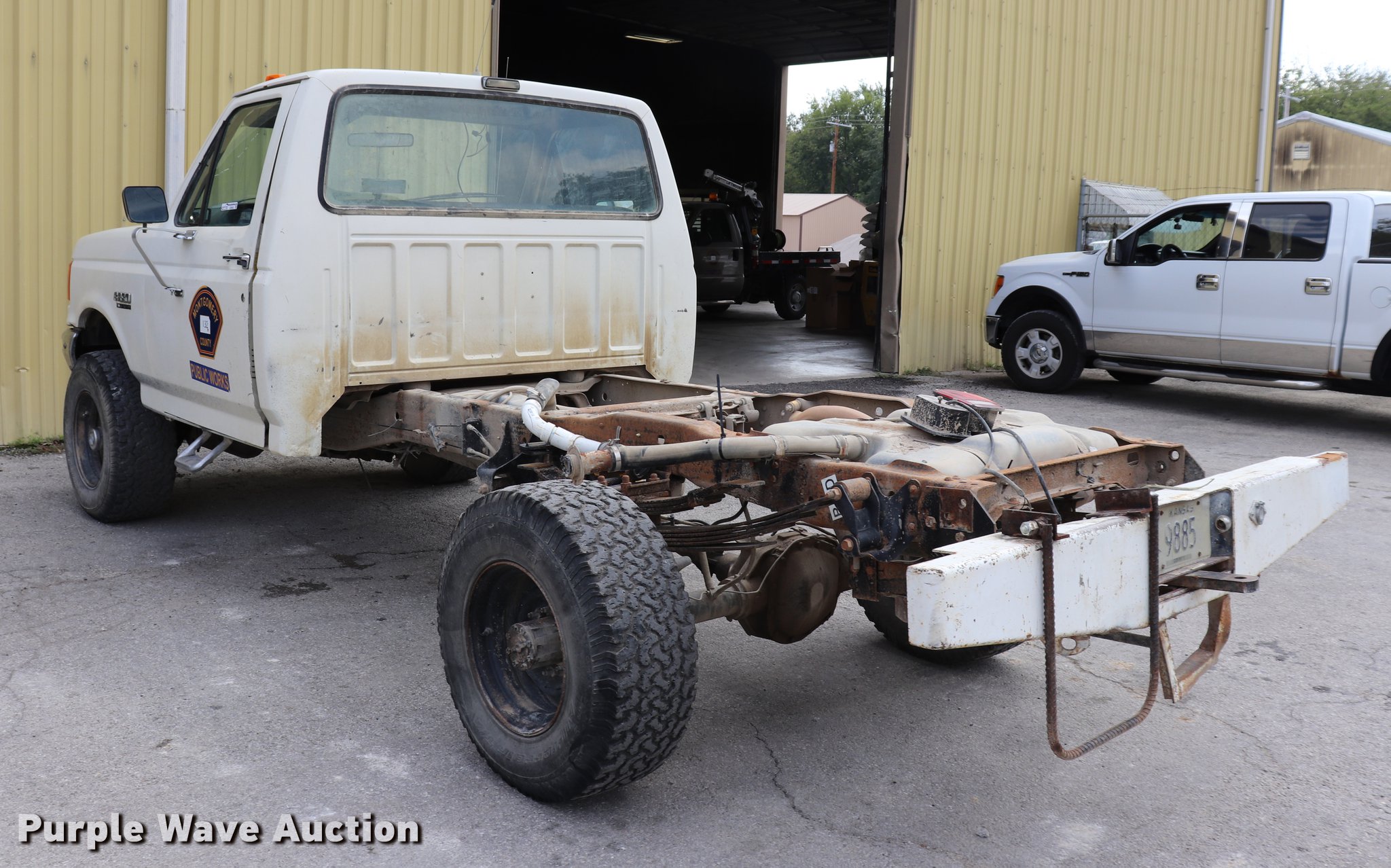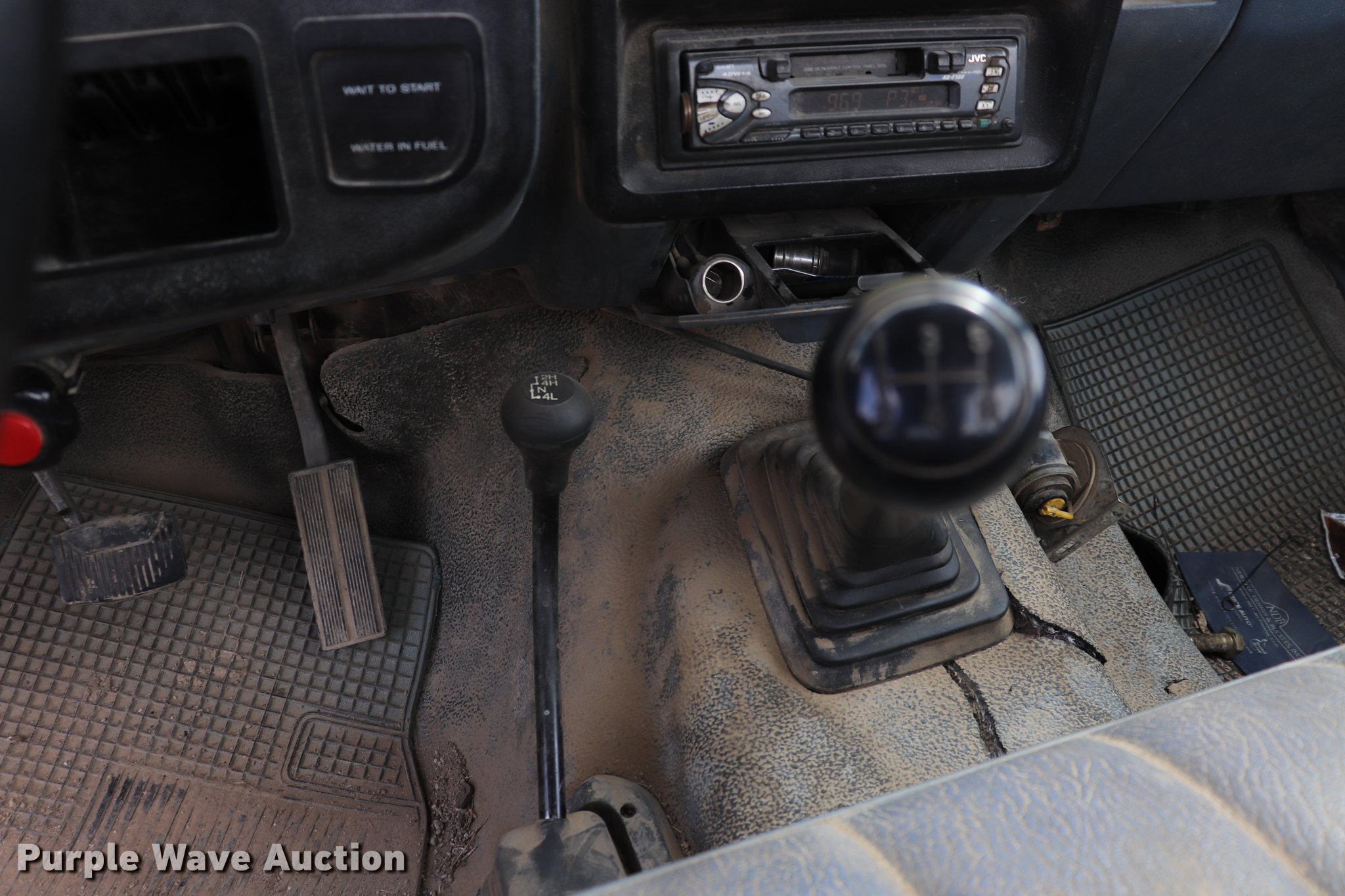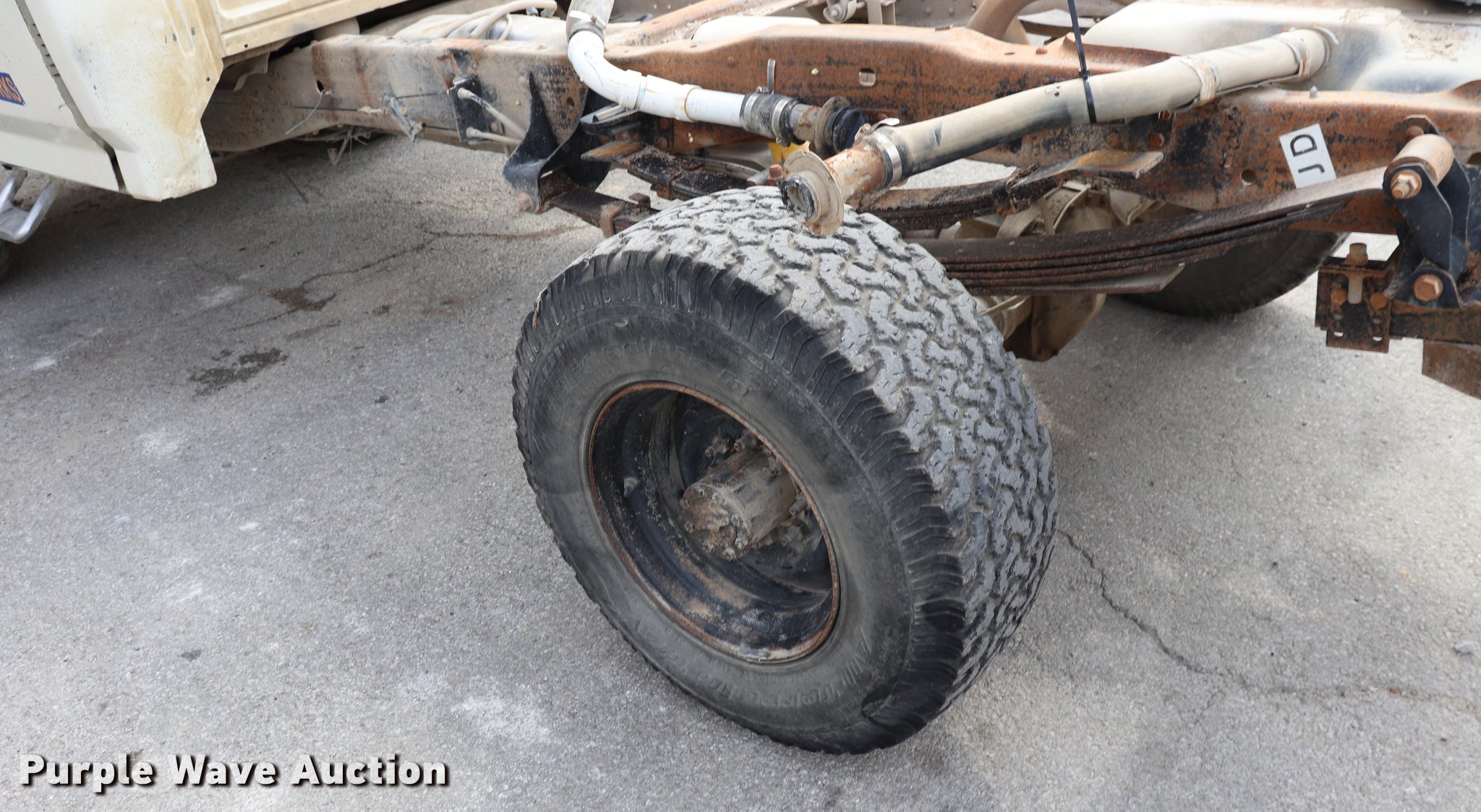 1990 Ford F350 pickup truck. 25,336 miles on odometer, 3,827 hours on meter, 7.3L V8 OHV 16V diesel engine, Five speed manual transmission, Four wheel drive, AC and heat, AM/FM/cassette, Manual windows and locks, Vinyl interior, Block heater, Dual fuel tanks, Pin hitch, 33x12.50R16.5 tires, Cracked windshield. Kansas title. 1FDHF38M6LKA41800. Montgomery County. 800 E Myrtle St. Independence, KS 67301
