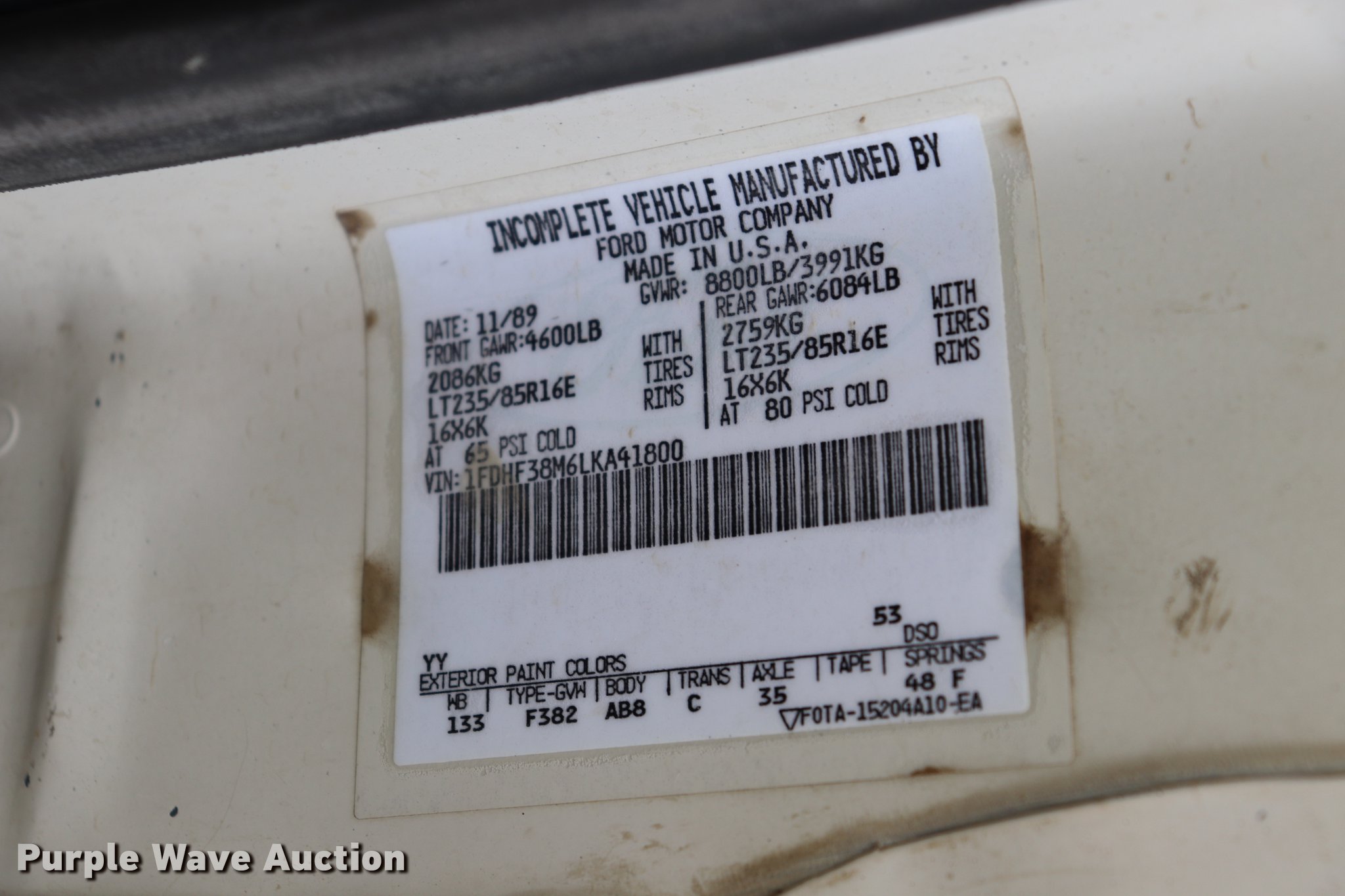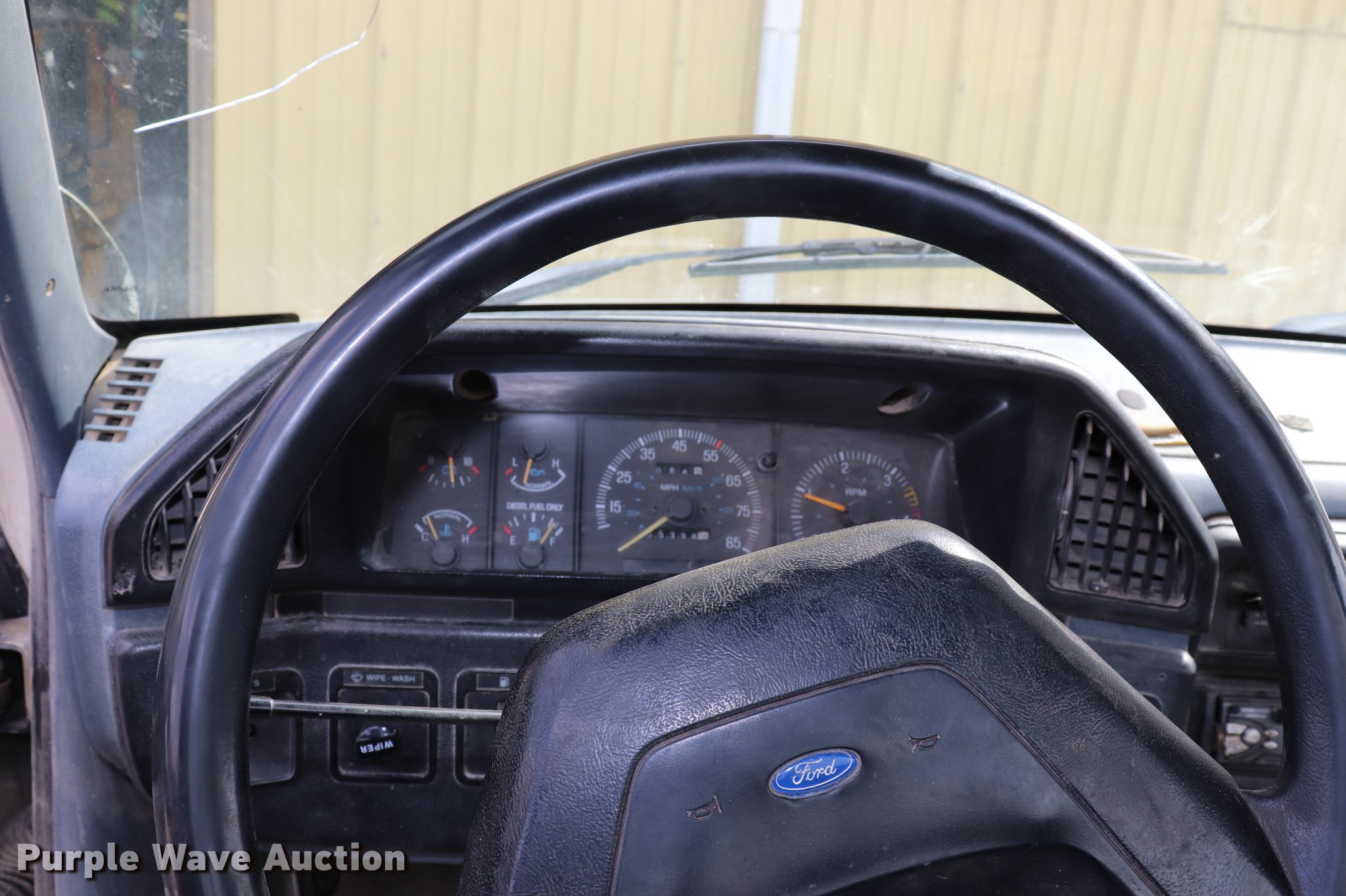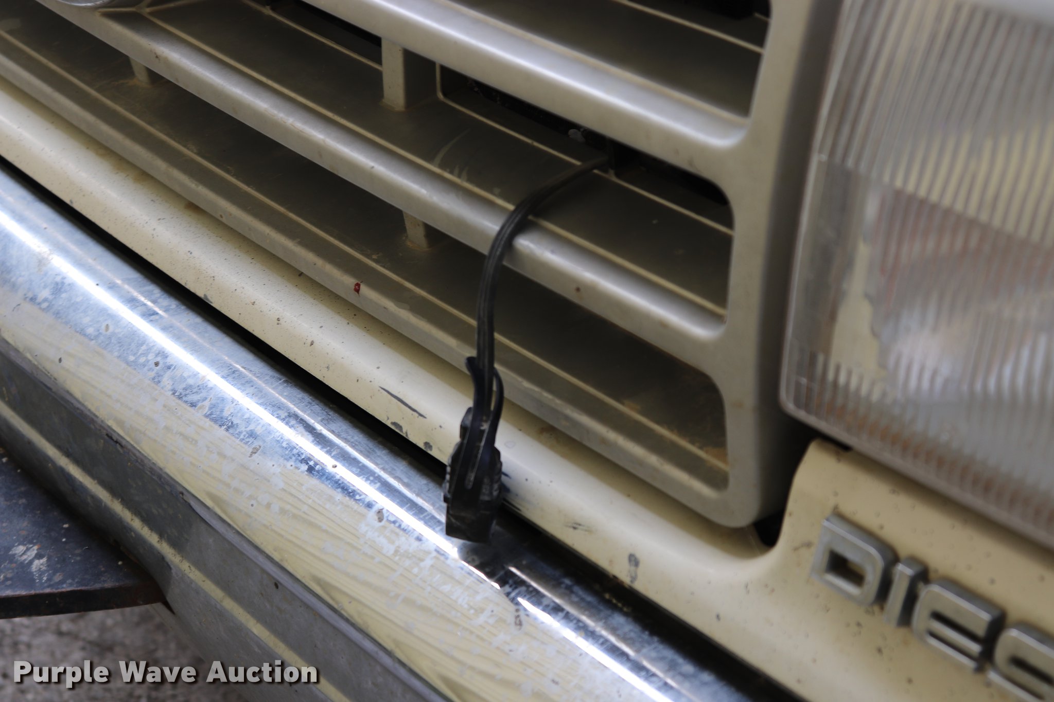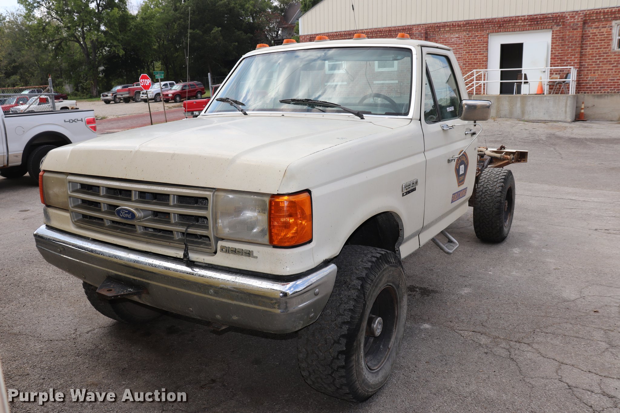 Purple Wave is selling a used 3/4 or 1 Ton Pickup or Van in Kansas. This item is a 1990 Ford F350 pickup truck with the following: 25,336 miles on odometer, 3,827 hours on meter, 7.3L V8 OHV 16V diesel engine, Five speed manual transmission, Four wheel drive, AC and heat, AM/FM/cassette, Manual windows and locks, Vinyl interior, Block heater, Dual fuel tanks, Pin hitch, 33x12.50R16.5 tires, Cracked windshield